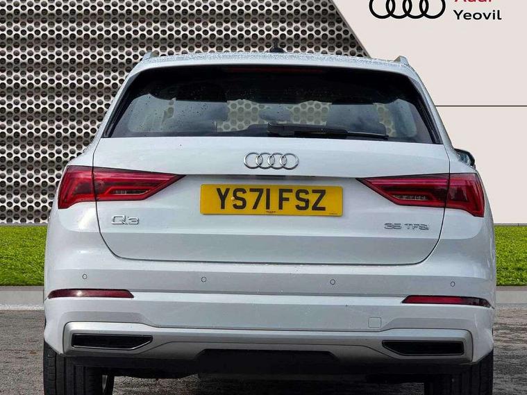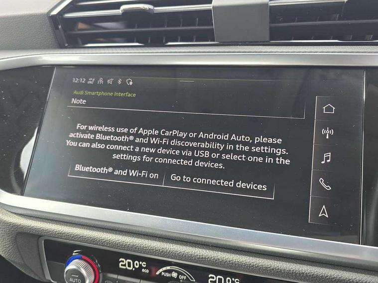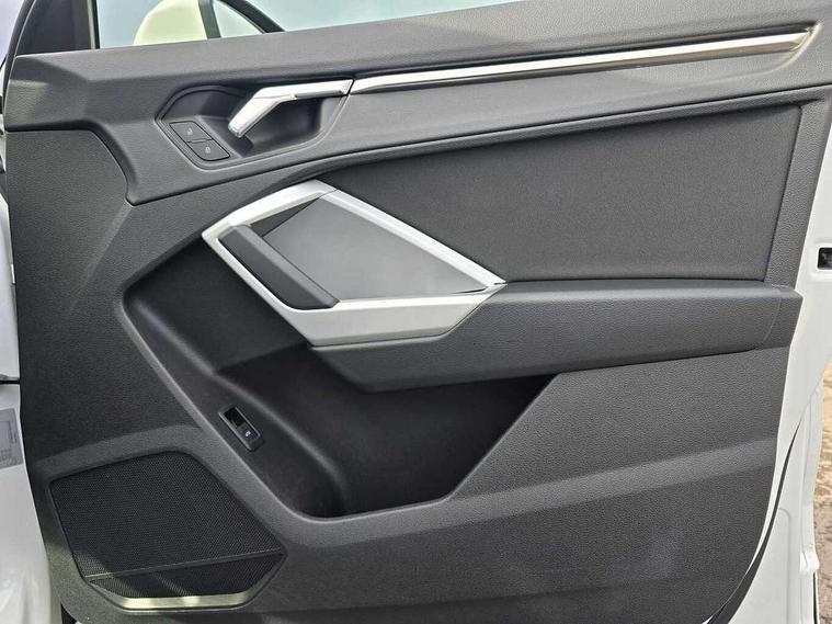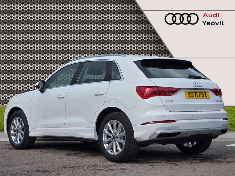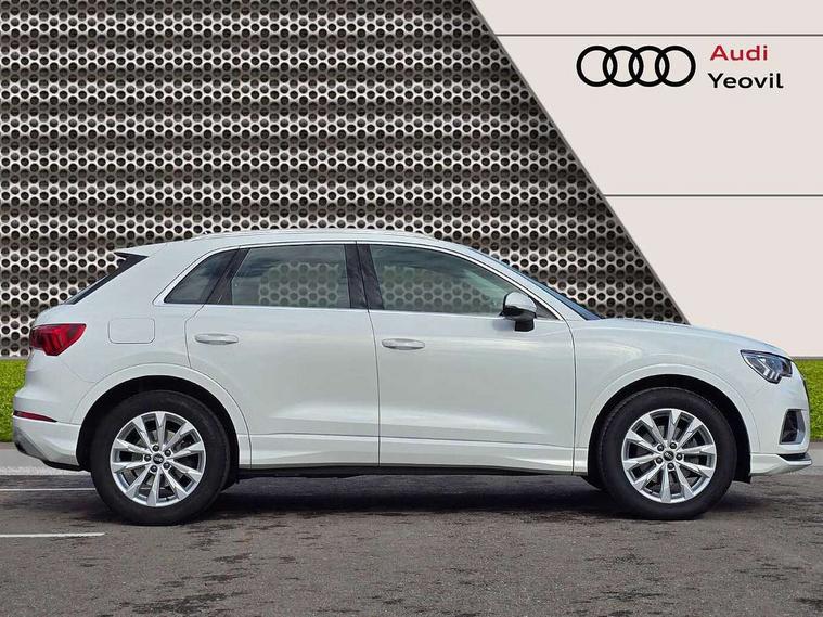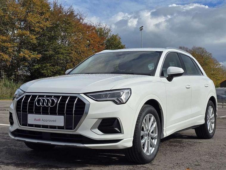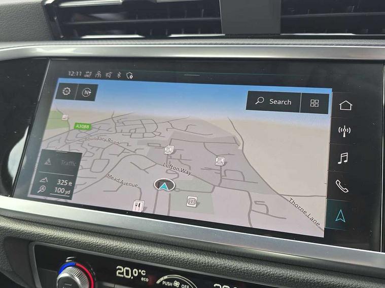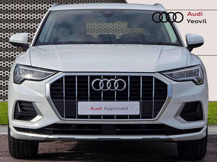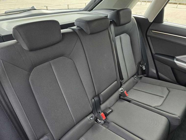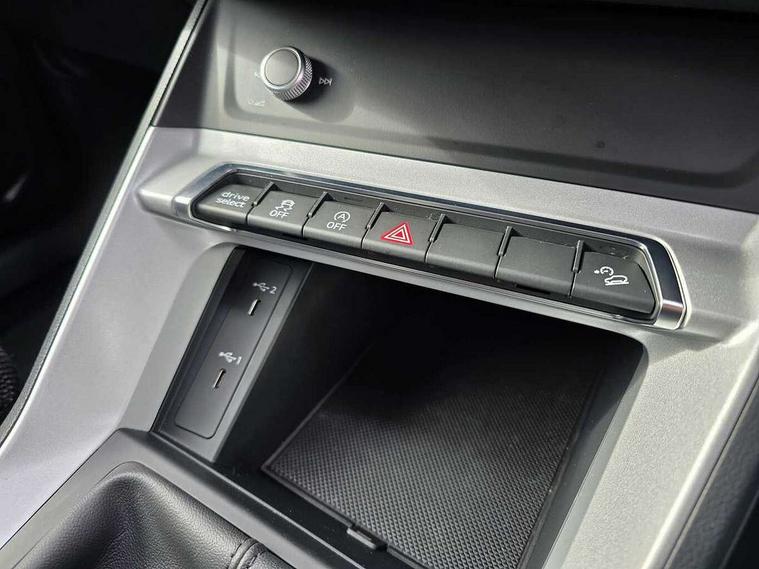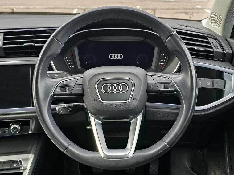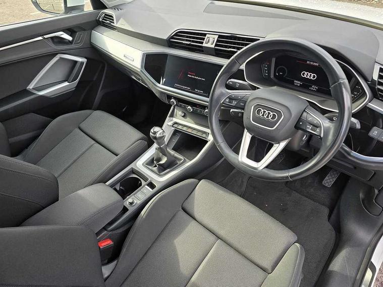 Amazon alexa Integration, Audi connect safety and service (e-call), Audi drive select, Audi lane departure warning, Audi smartphone interface includes wireless Apple carplay/Android Auto, Audi Virtual Cockpit - 10.25" display, Bluetooth interface, Camera based traffic sign recognition, Cruise control + speed limiter, MMI Navigation Plus with high resolution 10.1 inch touchscreen colour display, Power operated tailgate, Progressive steering, Rear parking sensors, Service interval indicator, Start stop system with recuperation, Voice control system with natural language interaction, Standard suspension, 2 USB-C ports with charge and data functions, 6 passive loudspeakers, DAB digital radio module, Acoustic windscreen, Aluminium roof rails, Aluminium window trim, Auto dimming frameless rear view mirror, Body coloured bumpers, Electrically folding, adjustable and heated door mirrors with integrated LED side indicators and kerb view function for passenger side, Front and rear electric windows, Front fog lights, Front side air inlets in matt selenite silver, Front spoiler in matt selenite silver, Grille vertical bars in aluminium silver/Matt, High gloss black finish B and C pillars, LED headlights with LED daytime running lights and dynamic rear indicator, LED rear lights, Rain and light sensors, Rear diffuser strip in matt selenite silver, Silver chrome grille surround, Titanium black radiator grille, 12V socket in rear centre console, 3 spoke multi-function leather steering wheel, 40:20:40 folding with manual adjustment for 60:40 forwards/backwards position and backrest angle, Aluminium door sill trims, Dual zone electronic climate control, Front and rear floor mats, Front and rear headrests, Front and rear roof module including reading lights, Front centre armrest, Glove compartment lighting, Height and reach adjustable steering wheel, ISOFIX child seat mounting for front passenger with airbag deactivation and outer rear seat including top tether attachment point for outer rear seats, Luggage compartment light, Lunar silver cloth headlining, Manual front seats with height adjustment, Stainless steel luggage compartment sill finisher, Non smoking pack - Q3, 3x3 point rear seatbelts, 6 airbags - Driver, front passenger, curtain and side windows, Audi pre-sense front with pedestrain and cyclist recognition, Electrically operated child locks on rear doors, Electromechanical parking brake, Electronic stabilisation control including ABS, ASR and EDL, Hill descent control, Hill hold assist, Pre sense basic, Seatbelt monitoring, Tyre pressure warning, Warning triangle and first aid kit, Anti theft alarm, Anti theft wheel bolts, Remote central locking, Detail dashboard around MMI touch colour display in glass look, black with surround in aluminium look, Micrometallic silver inlay,