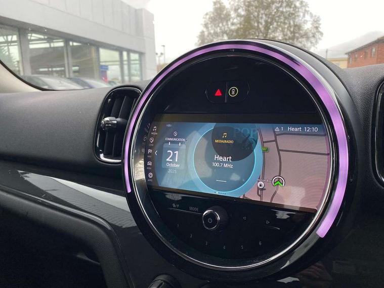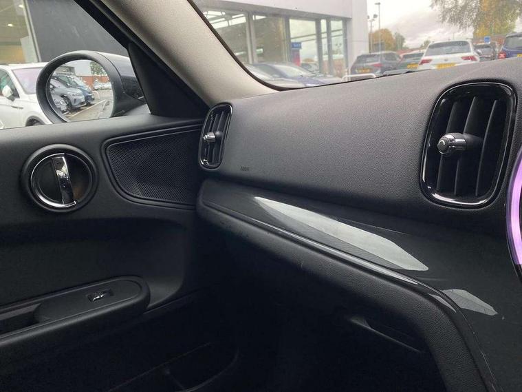 Active Guard incl speed limiting and lane departure functions with auto steering, and front collision warning with brake intervention, Automatic start/stop function with brake energy recuperation, Compatible mobile phone bluetooth with audio streaming, Cruise control with brake assist, Electro-mechanical speed dependant steering assistance, Instrument cluster, Mini E-call, On board computer, Rear parking distance control, 51 Litre fuel tank, Double Vanos system, Fully variable valve control, High precision injection, Performance Control, Steptronic transmission with double clutch, FM tuner and DAB digital radio, 3rd brake light, Body colour fuel filler cap, Day time driving lights, Door sill strips, Dynamic brake lights, Electric windows, Heated rear window, Heated windscreen washer jets, LED fog lights, LED Headlights, Left exhaust tailpipe with chrome finisher, Model logo, Model logo on Tailgate, Radiator grille, Rain sensor with auto headlights, Rear fog lights, Rear side wing doors, Rear window wiper, Side scuttle panel with integrated indicator, Split rear doors, Sun/heat protection glass, White indicator lenses, 12V socket in centre console, 3 seat bench in 2nd row, 3 spoke sport leather steering wheel + limiter function and audio controls, 360L luggage compartment capacity, 4 lashing eyes in luggage compartment, 40:20:40 split folding rear seats, Chrome interior highlights, Colour line - Carbon black, Cupholders, English handbook, Floor mats, Front headrests, Glove compartment, Headliner with grab handles and clothes hooks, Height and length steering column adjustment, Interior lighting with 12 basic colours selectable via toggle switch in roof, Isofix rear child seat preparation, Leather gearshift lever and handbrake gaiters, LED reading lights, vanity mirror lights, front foot well light and spotlight on front seats, Manual air conditioning, Mechanical seat adjustment, driver seat height adjust, forward/back and front seats backrest, Multifunction steering wheel, Passenger seat height adjuster, Rear headrests, Single front passenger seat, Storage compartments in doors, Sunvisors with vanity mirrors, Excitement pack - Countryman, Navigation pack - Countryman, 2 tone horn, 3 point seatbelts on all seats, 6 Airbags - front, side, head and seat belt tensioners, Anti-lock braking system (ABS), DSC - Dynamic Stability Control, Electronic handbrake, Front and rear disc brakes, Hill start assist, Manual rear child locks, Tyre pressure monitoring system, Alarm system with tilt sensor, monitoring doors, bonnet interior and tailgate, Auto drive away locking, Deadlocking function, Electronic vehicle immobiliser, Locking wheel bolts, Start/stop toggle with keyless go, Tool kit,