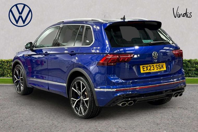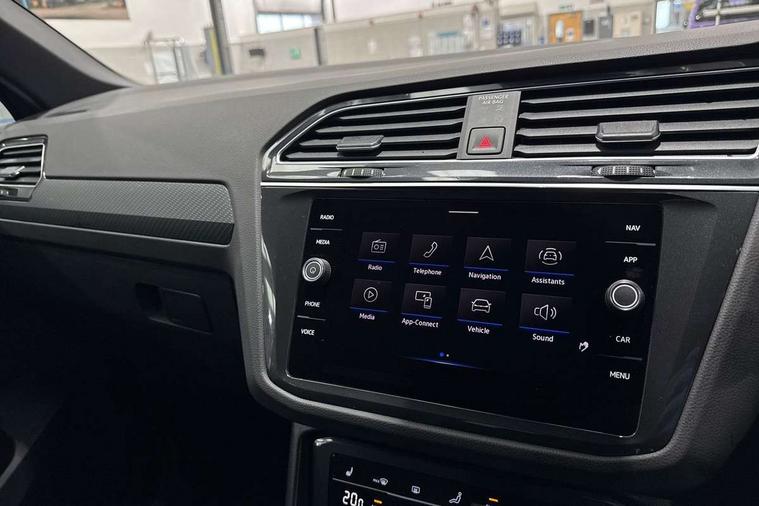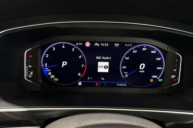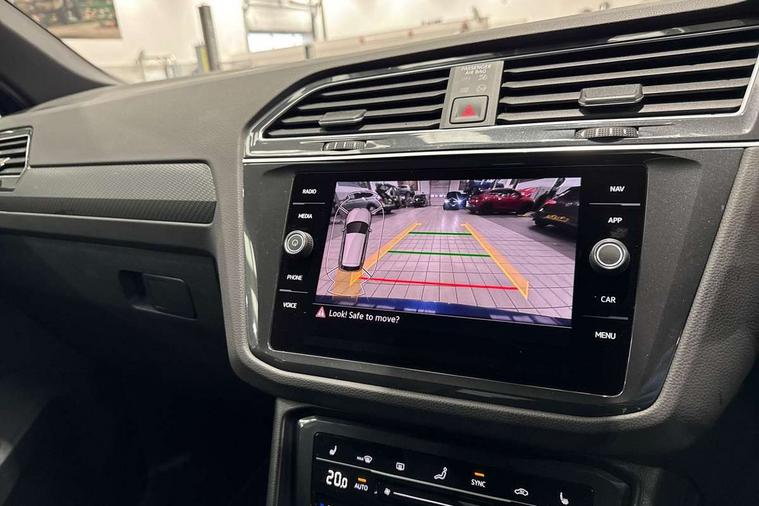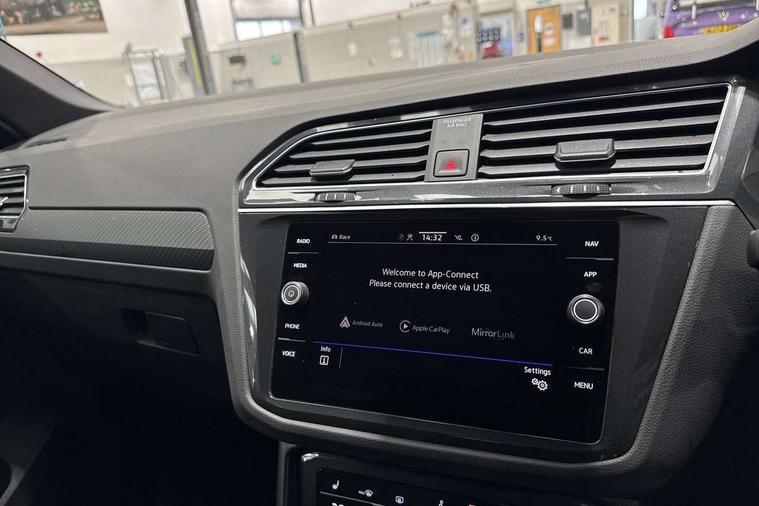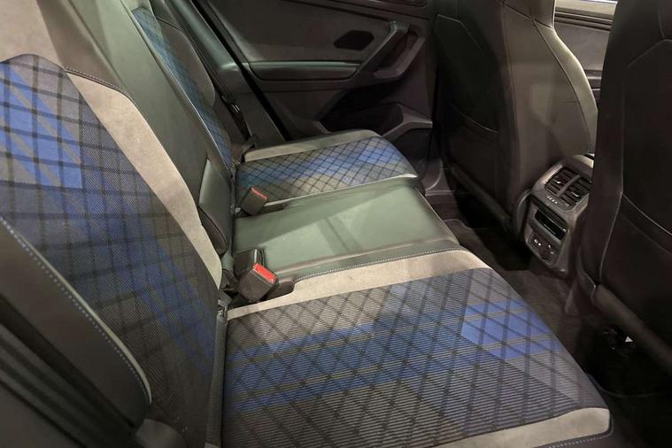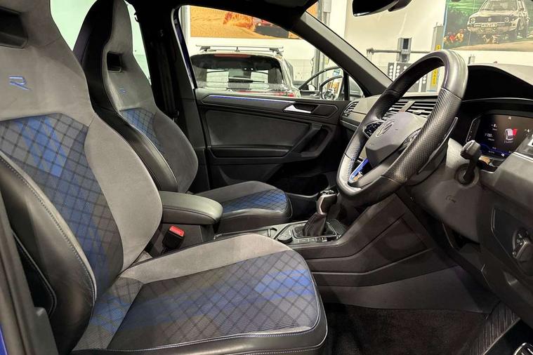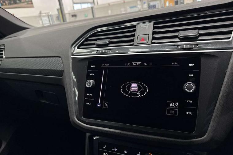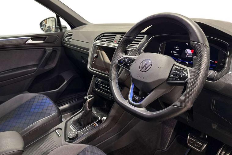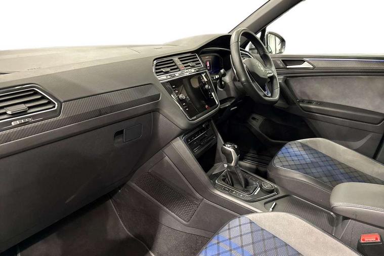 Adaptive cruise control ACC stop and go including speed limiter, App-Connect incl. App-Connect Wireless for Apple CarPlay and Android Auto, Bluetooth phone integration system, Distance control assist, Driver alert system, Driver profile selection, Dynamic road sign display, eCall emergency call system, Electromechanical speed sensitive power steering, Engine start/stop button, Instrument cluster mph speedometer Great Britain, Lane keeping system Lane Assist, Lights on warning, Motorised electric tailgate operated via key fob, drivers door and foot movement under tailgate, Multifunction front facing camera, Outside temperature display, Premium multifunction display with multi colour display, Remote control boot opening, Rev counter, Revision / skills operating concept travel assistant, Service interval indicator, Speed limit display, Start/stop system with regenerative braking, Tailgate/trunk lid unlocking from outside, Trip computer, Warning sound and light for doors and tailgate open, ACC - Adaptive chassis contol with adaptive dampers, All wheel drive - 4Motion, Battery regeneration during braking, XDS electronic differential lock for improved traction and handling, 4 X 20 watt output, 8 speakers, Diversity antenna for FM reception, SD card slot, Simultaneous pairing of 2 compatible mobile devices, SMS functionality - read, compose and send SMS messages using touch-screen display, Title and cover art display, USB C ports, Auto dimming interior rear view mirror, Automatic headlight control system, Body colour door handles, Body coloured door mirrors with integrated indicators, Chrome matt mirror covers, Chrome moldings on the side windows, Coming/leaving home lighting function, Dynamic headlight range control, Front and rear electric windows, Front illuminated door sills with R logo, Heated rear window, High level 3rd brake light, IQ light-Adv high beam, Dynamic light assist for LED matrix headlamp+LED separate DRL+DCL, dark red rear LED tech, Poor weather light+ cornering light, Laminated safety glass windshield, heat and sound insulating, LED rear number plate lights, License plate carrier in front and rear, Poor weather light and cornering light, Privacy glass for rear side windows and rear window, R-Logo light projection, R-Logo on radiator grille with side panels and rear, R-specific diffuser, painted black with cut out for trailer hitch, R-Specific front and rear bumpers, Rain sensor windscreen wipers, Rear fog lamp, Rear side wing doors, Rear spoiler in R style, Rear windscreen washer and wiper with interval delay, Side and rear windows in heat insulating glass, Silver anodised roof rails, Trailer Stability Programme, Windscreen wipers/ intermittent wipe + 4 position delay, 12V outlet in center console rear and in luggage compartment, 12V outlet in front and tray, 2 cup holders in front, 2 LED front reading lights, 2 LED rear reading lights, 3 bench rear seats in 2nd row, 3 rear headrests, 4 load lashing points, 40:20:40 split folding rear seats, Air Care Climatronic 3 zone automatic climate control with enhanced air filter and controls in the rear, Backrest release for left front seat, Black headlining, Climate control unit rear with touch function, Door and side trim panel in foam film, insert in leatherette, Floor mats with R-Logo and stitching, Front centre armrest, Front footwell illumination, Front seats head restraints (x-adjustment), Height adjustable front seats, Height/reach adjust steering wheel, Instrument lighting white adjustable panel illumination, Interior light with delay, Isofix Preparation 2 Rear child seats, Leather gear knob, Lighting door sill trim at front with R Logo, Lockable cooled glovebox, Luggage compartment lighting, Luggage net, Pedals and footrest in stainless steel, R Performance steering wheel with R button, larger paddle shifters, blue stiching and blue steering wheel clip, R Specific key caps, R-specific sport skin with R Logo in active Info dsiplay, R-taster (direct selection of race mode/ flap control), Rear bench seat asymetrically split folding, longitudinally movable and folding with load-through hatch and center armrest, Remote unlocking for rear seat backrest, Removable luggage cover, Removable rear headrests, Safety optimised front head restraints, Single front passenger seat, Sliding/reclining rear seats, Standard rear seat release, Storage compartment in driver's door, Storage compartment in passenger's door, Storage compartment in rear doors, Storage compartments in luggage area left and right, Storage tray on dashboard, Sun visors with illuminated vanity mirrors, Tool kit, Top sports seats integrated headrest, blue R-Logo in front seats, seat centre panels and outer rear seats in fabric inner side bolster art Velors, Variable boot floor, height adjustable and removable, Easy open and close pack with safelock - Tiguan, 3 point seat belt for centre rear seats, 3 point seat belts with seat belt pretensioners for the outer rear seats, Active bonnet, Curtain airbags for front and rear passengers, Driver/Front Passenger airbags, Drivers knee airbag, Electronic parking brake with auto hold, Electronic Stability Control with driver steering recommendation, ABS, ASR, EDL, EDTC and trailer stabilization, Front assist with autonomous emergency braking (for Adaptive Cruise Control ACC up to 130 mph), Front disc brakes, Front passenger airbag deactivation, Front side airbags, Height adjustable front 3 point seatbelts + pretensioners, Hill hold control, Manual child proof rear door locks, Pedestrian monitoring system, Power assisted brakes, Proactive passenger protection system in combination with front assist, Rear disc brakes, Rigid safety cell with front and rear crumple zones, Two tone horn, Tyre pressure monitoring system, Warning sound and light for front seat belts if unfastened, Anti theft alarm system with interior monitoring, backup horn and towing protection, Anti theft wheel bolts, Central locking system with safelock radio remote con
