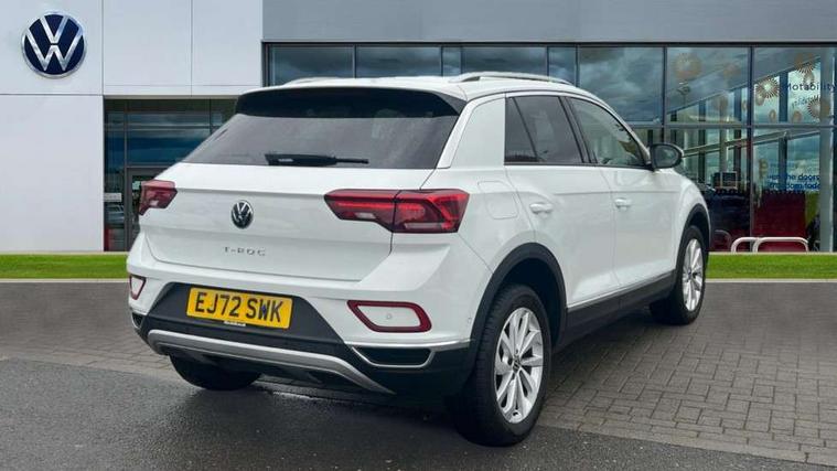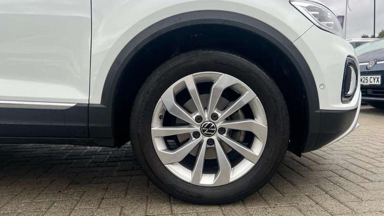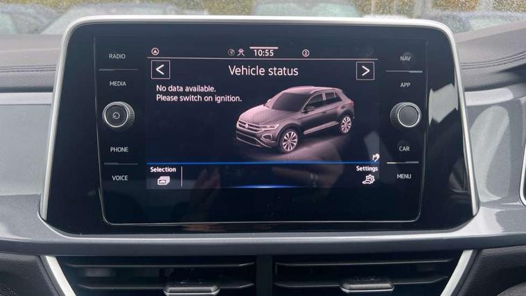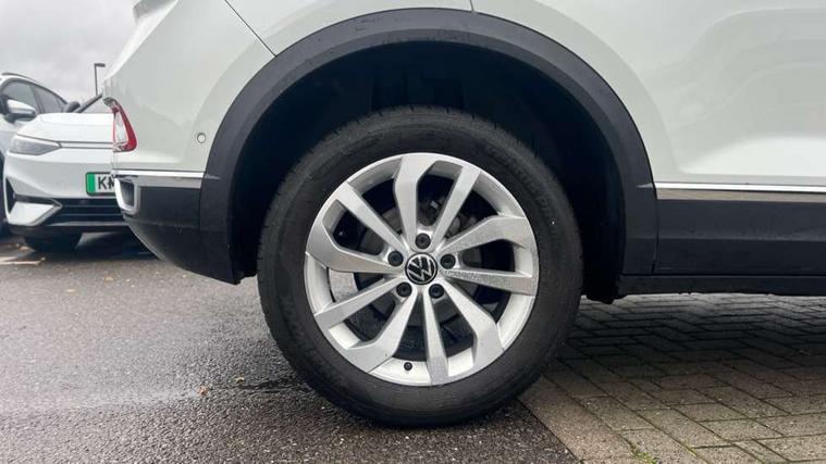 10.25" Digital cockpit pro, Bluetooth mobile phone interface, Driver alert system with fatigue detection, Driver tips and journey analysis, Dynamic road sign display, Emergency call service, Lane keeping system Lane Assist, Modified key software - reduce switch off time for key status change to Long no motion, Online services, Park assist including front and rear parking sensors, Power assisted speed sensitive steering, Service interval indicator, Tailgate/trunk lid release from outside, Think blue trainer driver tips and journey analysis, Warning sound and light for front seatbelts unfastened, Wireless app connect, Battery regeneration during braking, Front shock absorption, Rear shock absorption chassis with increased ride height, Start/stop function with battery regeneration, Diversity antenna for FM reception, Front and rear 6 speakers, Music playback - MP3, WMA and AAC files, Premium USB cable in choice of either Apple or Android smartphone compatibility, SD card slot, Simultaneous pairing of 2 compatible mobile devices, Title and cover art display, We Connect and We Connect Plus functionality, 3rd brake light, Auto dimming interior rear view mirror, Automatic hazard lights activation under emergency braking, Automatic headlight control with LED separate daytime running lights with coming/leaving home function, Body colour sports bumpers with silver metallic underbody fascia, Dynamic headlight range control with self adjusting whilst driving, Extended roof spoiler, Exterior mirrors aspherical on driver side, convex on front passenger side, External USB type C socket and charging sockets, Front windscreen wiper with intermittent wipe and 4 position delay, Heated rear window, LED Plus headlamps, LED rear combination lamps, LED rear number plate lights, LED tail lamp rear comination lamps, Light mode for poor weather, rain, fog or snow, Power windows with comfort operation and circuit breaker, Rain sensor, Rear exhaust tailpipe, Rear fog light on one side and reversing lights on both sides, Rear side wing doors, Rear wash/wipe with intermittent wipe setting, Remote electrically foldable door mirrors, puddle lights and reverse activated passenger's door mirror, 12V power socket in centre console, 3 rear head restraints, 3 seat bench in 2nd row, 4 load lashing points in luggage compartment, Air care climatronic air conditoning system with active combination filter and 2-zone temperature control, Chrome plated radiator grille inserts, air vent surrounds and light switch surrounds, Door and side trim panel with leatherette insert, Drawer under drivers seat, Front + rear carpet mats, Front centre armrest, Front comfort sports seats, Front cupholders x 2, Front footwell illumination, Instrument lighting, white adjustable panel illumination, Interior ambient lighting and surround lighting, Interior light delay, Isofix child seat preparation, Leather gearshift handle, LED interior light with switch off delay/dimmer and 2 front/rear LED reading lights, Load-through provision with cup holder when folded down ('Unsplit rear seat bench, split folding backrest, with centre armrest), Luggage compartment lighting, Non-folding front passenger seat backrest, Single front passenger seat, Storage compartment in left and right luggage area, Storage compartment in rear doors, Storage compartments in driver and front passenger doors, Sunvisors with illuminated vanity mirrors, Variable boot floor, height adjustable and removable, Driver assistance pack without proactive passenger protection - T-Roc, 3 point height adj front seatbelts + pretensioners, 3 point seatbelts in outer rear with ECE label, ABS, Child locks on rear doors, Driver and front passenger airbag with front passenger airbag deactivation, Driver and front passenger safety-optimised head restraints, Drivers seatbelt reminder, Electronic parking brake, Electronic Stability Control (ESC) inc EDL (Electronic Differential Lock) and ASR (Traction Control), Front and rear passengers curtain airbag system including front side airbags, Front assist with city emergency braking and pedestrian monitoring, Front disc brakes, Front seat side impact airbags, Predictive pedestrian protection, Rear disc brakes, Single tone horn, Tyre pressure loss indicator, Volkswagen roadside assistance, Alarm with interior protection, Anti-theft alarm system with interior monitoring, backup horn, and towing protection, Remote central locking with SAFELOCK, radio remote control with 2 remote control folding keys, Trims for alloy wheels,