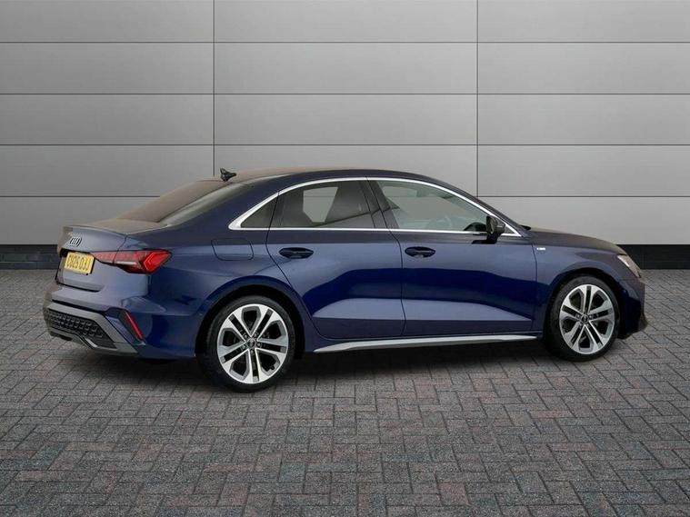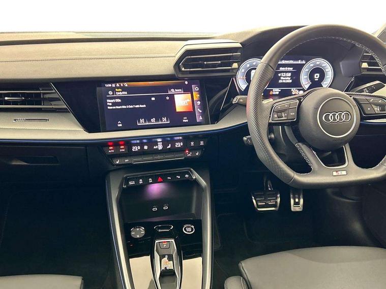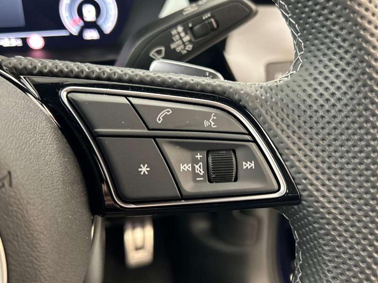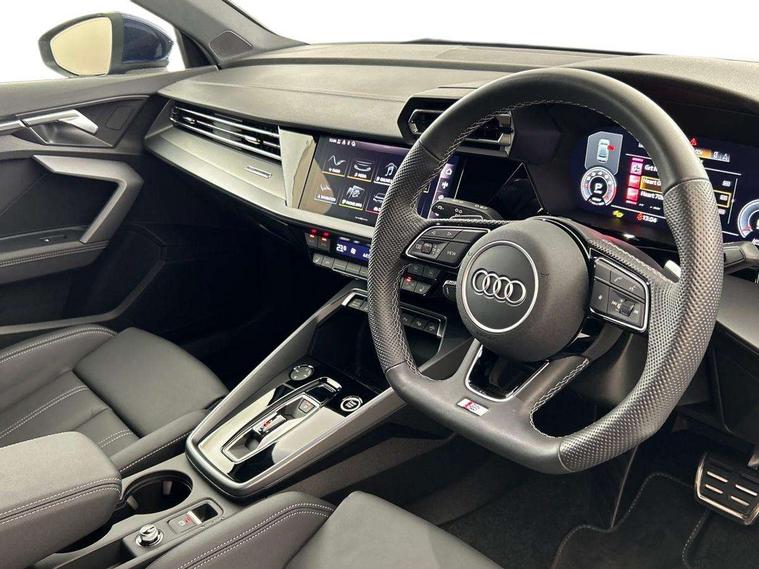 Adjustable speed limiter, Audi drive select, Audi smartphone interface with app store includes wireless Apple carplay, Android auto and Amazon alexa integration, Audi virtual cockpit plus - 12.3" full HD resolution dynamic digital instrument cluster, Automatic start/stop system with recuperation, Bluetooth interface, Camera based traffic sign recognition, Collision avoidance assistant, Cruise control, Distraction and Fatigue warning, e-Call (emergency call), Electromechanical power speed sensitive steering, Lane departure warning system, MMI Navigation Plus with high resolution 10.1" colour touch screen display, Park Assist with parking system Plus, Service indicator, Trip computer, Voice control system with natural language interaction, Sports suspension, Audi Phonebox light with wireless charging, Audi sound system - 10 loudspeakers including centre loudspeaker and subwoofer, DAB Digital radio, USB ports with charging function in the rear, Acoustic glass windscreen, Aluminium window trim, Auto dimming frameless rear view mirror, Body colour exterior mirrors, Chrome exhaust tailpipes, Electrically adjustable/heated/folding/auto dimming door mirrors with integrated LED indications + kerb view function for passenger side, Exterior model badging, Front and rear side air inlets in grained matt black with dark liquid chrome frame, Front electric windows, Front radiator grill in high gloss dark chrome, Heat insulating glass windscreen, Illuminated door sills with aluminium inserts at the front with S logo, LED 3rd brake light, LED daytime running lights, LED headlights with LED rear lights and dynamic rear indicators, Light and rain sensors, Privacy glass - dark tinted rear window, rear door and side windows, Rear boot, Rear diffuser and grill in grained matt black with inlay in dark liquid chrome, Rear electric windows, Rear side wing doors, S line bumpers, Side S line emblems on front wings, Side sill trim in dark liquid chrome, 12V socket and storage compartment in front centre console, 3 seat bench in 2nd row, 3 spoke flat bottomed leather multifunction sport steering wheel with gear shift paddles, 3-zone deluxe automatic air conditioning, 4 way electrically adjustable lumbar support for driver and front passenger, 40/20/40 split folding rear seat bench, Black cloth headlining, Front and rear centre armrest in artificial leather, Front and rear centre armrest in artificial leather with contrasting stitching on armrests and instrument panel, Front and rear headrests, Front/rear floor mats, Heated front seats, Height and reach adjustable steering wheel, Manual boot compartment lid, Manually adjustable front seats, Rear cup holders, S badging on the steering wheel, Seat side bolsters, Single front passenger seat, Stainless steel pedals and front footrest in black, Twin leather upholstery with front sports seats S embossed logo, Aluminium interior elements pack - A3, Multi-coloured LED interior lighting package - A3, 3x3 point rear seat belts, Driver and front passenger airbag with passenger airbag deactivation, Electronic Stabilisation Control (ESC) including ABS, ASR and EDL, First aid kit with warning triangle and 2 safety vests, Front side airbags with head airbags and interaction airbag, Hill hold assist, Pre-sense front with pedestrian and cyclist detection, Seatbelt monitoring, Tyre pressure loss indicator, Anti theft alarm, Anti-theft wheel bolts, Electronically operated child locks, Immobiliser, Remote central locking with safelock, Dash & door Inlay in dark aluminium Spectrum,