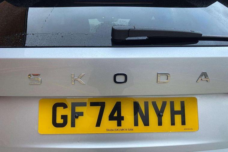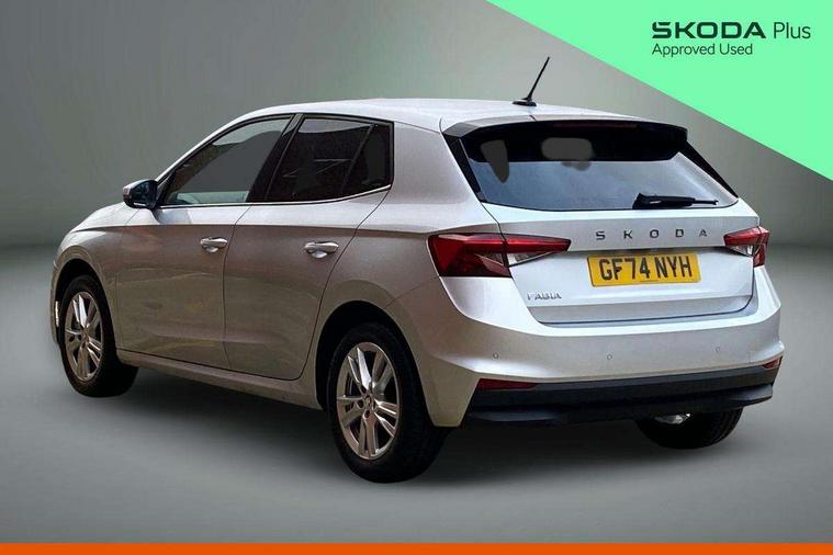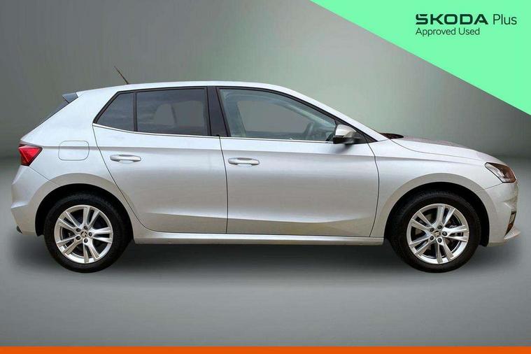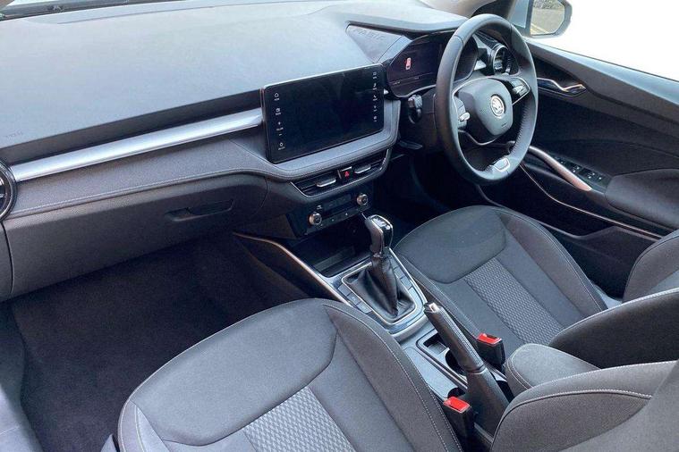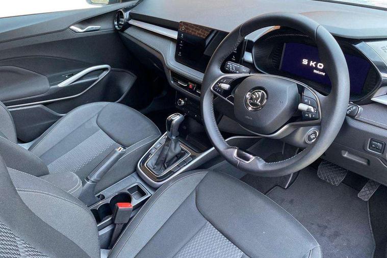 Advanced driver attention and drowsiness monitor, Bluetooth connection, Electromechanical power steering, Exterior temperature gauge, Service interval indicator, Traffic sign recognition, Virtual cockpit with 10.25" colour display, Wireless SmartLink for Apple CarPlay and Android Auto, 6 Speakers (4 in front and 2 in rear), 9.2" colour display skoda navigation system with voice control and web radio, Auxiliary socket for external MP3 player, DAB digital radio reception, Auto dimming rear view mirror, Body colour door mirrors, Body coloured bumpers, Chrome window surround, Door mirror integrated indicators, Front and rear electric windows, Front window wiper intermittent control, Headlight range control - Automatic, Ice scraper in fuel cap, LED daytime running lights with coming and leaving home feature, LED rear lights, Privacy glass, Rear LED fog light, Rear side wing doors, Rear window wiper with washing nozzles, Roof mounted spoiler, SKODA tailgate lettering in chrome, Third brake light, 2 reading lights in front and 2 reading lights in rear, 3 rear headrests, Backrest split and folding, Central console with removable cup holder and storage box, Chrome handbrake release button, Comfort seats, Door sills with fabia badging, Dual zone air conditioning with climatronic electronic control, Fabric upholstery, Front centre armrest, Gearshift knob/handle in leather, Hand brake lever handle in leather, Height adjustable front headrests, Height adjustable front seats, Height adjustable steering wheel, ISOFIX and TopTether anchorage points to the outer rear seats, ISOFIX and TopTether on the front passenger seat, Luggage compartment lighting, Manually adjustable lumbar support in front seats, Metallic grey interior door handles, Pollen filter, Rear seat bench unsplit, Single front passenger seat, Storm grey headlining, Sun visors with mirror and airbag label on passenger side, Textile floor mats, Ticket holder, Umbrella in drivers door, 3-point height adjustable front seats belts with pretensioner and force limiter, Automatic warning lights in case of crash, Driver and passengers airbag with switch off function, e-Call+, ESC including ABS, MSR, ASR, EDS, HBA and XDS, Front and rear seat belt warning, FRONT ASSIST (AEB City and AEB Inter Urban), Front side airbags, Head airbags, Hill hold control, One tone horn, Pedestrian protection, Three rear 3-points safety seat belts with pretensioner and force limiter including stop function for outer rear seat belts, Tyre pressure monitoring system, Anti-theft alarm system including immobiliser, interior monitoring, backup horn, and towing protection, Central locking with radio remote control, interior controls, SAFE function and 2 foldable keys, Chrome edged air vents, Metallic grey central console cover, Metallic grey upper decorative trim, Satin black door and side trim panel in front, Textile microsuede grey lower decorative trim with art grey stitching, Anti-theft wheel bolts protection, Super-low rolling resistance tyres,