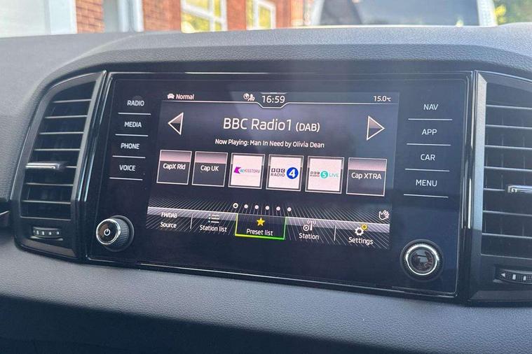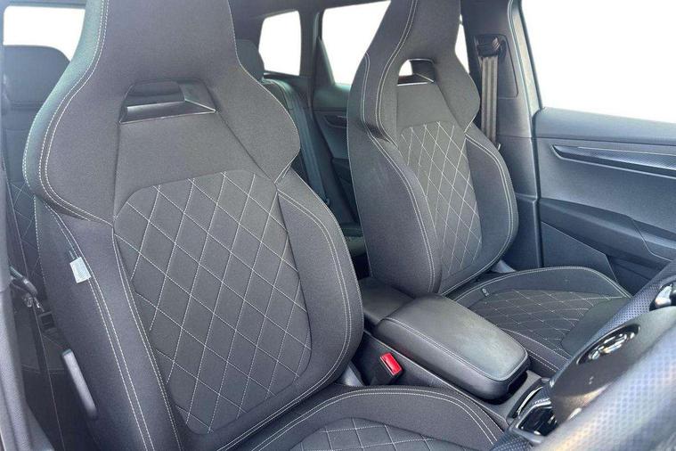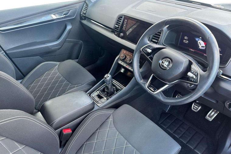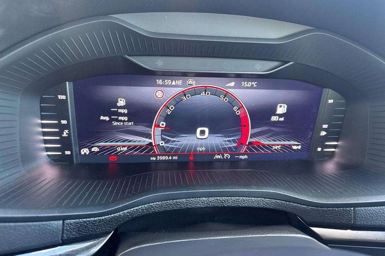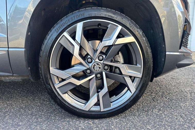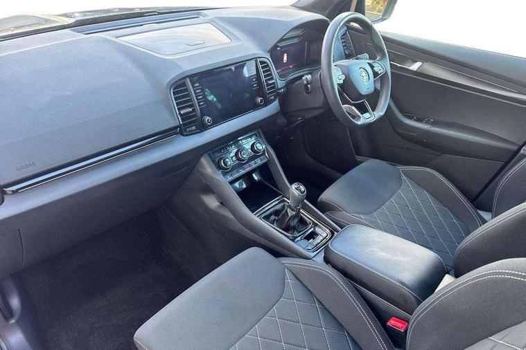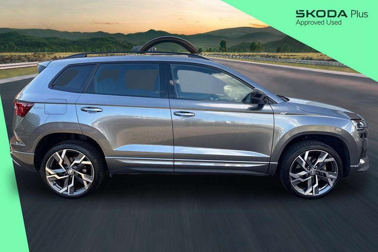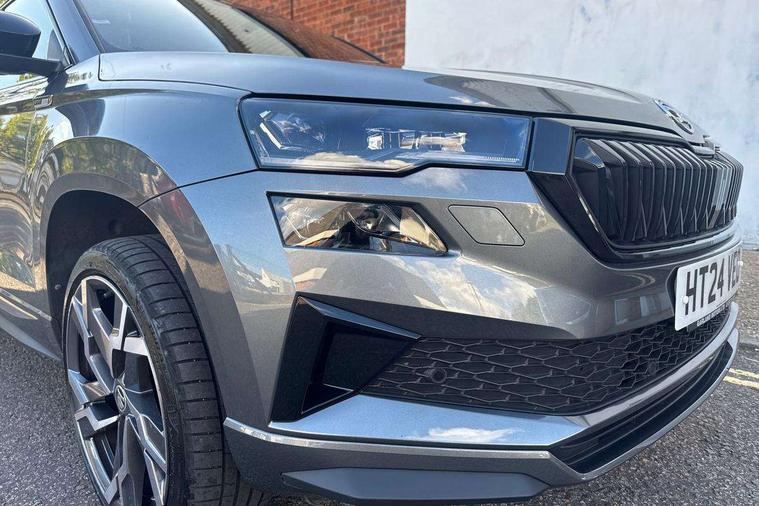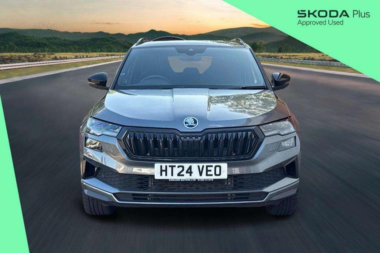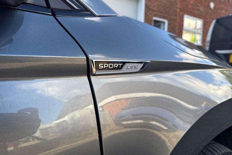 8" Digital display, Advanced driver attention and drowsiness monitor, Emergency services call system, Outside temperature gauge, Sensor for driver assistance systems, Service interval indicator, SmartLink wireless for Apple and wired for Android, Start/stop system with regenerative braking, USB C Port x 2 in front centre console, Virtual Cockpit - 10.25" digital display, Virtual pedal with electrically operated boot door, Wireless smartphone charging, DAB radio with Bluetooth, USB connection, Acoustic glass, Aero front windscreen wipers with intermittent function, Auto dimming rear view mirror with light and rain sensors, Black door mirrors, Black electric window control buttons, Black radiator grille, Black roof rails, Body colour door handles, Electric front and rear windows with child proof lock, Front door steps with SportLine logo, Heated rear windscreen, LED daytime running lights, LED rear lights with high functionality welcome effect and dynamic indicators, Light assistant (coming/leaving home/tunnel light), Panoramic sliding sunroof, Plastic scuff plates in door apertures, Privacy glass, Protective door side sills in body colour, Rear diffuser, Rear side wing doors, Rear spoiler, Rear window wiper with washer system and intermittent control, Safety reflectors on front doors, Skoda lettering on tailgate in black, Sportline badge on front fender, Sportline decorative inserts with badging, Sports front and rear bumpers, Third brake light, 1.5 litre bottle holders in driver and front passenger door panels, 12V socket in boot, 12v socket in front centre armrest with storage compartment and rear air vents, 2 x Tablet holder, 3 rear height adjustable headrests, 3 seat bench in 2nd row, 3 spoke sports leather heated multifunction steering wheel, 4 foldable roof handles with rear coat hooks, Black floor carpet, Black roof headlining, Chrome inner door handles, Foldable hooks in the boot, Front head restraints, Height adjustable front three point seats belts with tensioners, Height/reach adjust steering wheel, Ice scraper, Illuminated glovebox, Illuminated luggage compartment, Isofix child seat preparation for front passenger seat, Isofix child seat preparation outer rear, Manual lumbar support for front seats, Pen holder, Pollen filter, Rear boot cover, Rear reading lights, Rear seats fixed folding and divided 60:40, Rubbish bin door, Safety vest holder, Single front passenger seat, Storage box in upper central dashboard closed, Sunvisors with illuminated vanity mirrors, Textile floor mats, Ticket holder, Titan black interior ceiling, Umbrella under passenger seat, Under passenger seat storage compartment, LED Interior lighting pack with Skoda welcome logo - Karoq, Light Pack - Karoq, Non Smokers pack, Automatic door unlocking in case of crash, Automatic fuel cut off in case of crash, Driver airbag, Electronic parking brake with auto hold function, Emergency rear braking signal, ESC (incl. ABS+MSR+ASR+EDS+HBA+DSR+RBS+MKB), Front side airbags, Head airbags, Hill hold control, Knee airbags, Passenger airbag with switch-off function, Pedestrian monitor, Seatbelt reminder signalisation and pretensioner for all seats, Three point seatbelts rear, Two tone horn, Tyre pressure monitor, Alarm with interior monitoring, back up horn and tilt sensor with safe function, Electronic engine immobiliser, Keyless entry and start/stop, Remote central locking with 2 remote folding keys, Black air vent surround, Black centre console, carbon door decor, Satin black dashboard, Satin black door trim, 19" Sagittarius anthracite alloy wheels, Anti-theft wheel bolts protection, Breakdown and tool kit,
