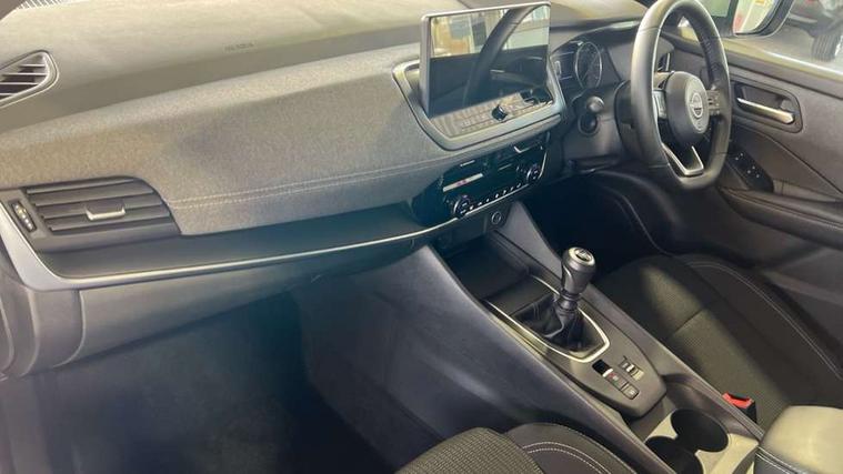 2 front USB-C ports, 7" High definition full colour TFT screen combimeter, Blind spot intervention, Blind spot warning, Drive assist custom mode, Drive modes (sport, normal, eco), Driver drowsiness and attention warning, Electric speed sensitive power steering, Emergency and breakdown call, Emergency lane keep assist, Emergency Stop Signal (ESS), Engine start/stop button, Event data recorder, Idle stop/start system, Intelligent Cruise control (ICC), Intelligent forward collision warning, Intelligent speed assist, Lane departure warning system, Nissan connect 12.3 inch touchscreen infotainment system, Outside temperature sensor, Rear cross traffic alert, Rear parking sensors, Rear view camera, Reversing detection, Wireless Apple CarPlay and wired Android Auto, Limited slip differential, 6 speakers, AM/FM audio system with DAB, Bluetooth audio streaming, Auto rear wiper when reversing, Body colour mirror caps, Body coloured door handles, Bodyside mouldings, Chrome side window finisher, Electric auto folding door mirrors, Electrically adjustable and heated door mirrors with LED turn indicator, Follow me home headlights, High beam assist, Intelligent auto headlights, LED 3rd brake light, LED daytime running lights, LED Headlights, LED rear lights, One touch front and rear electric windows with remote opening and closing, One touch passenger window, Partially body coloured bumpers, Rear roof spoiler, Rear side wing doors, Shark fin antenna, Splash free rain sensing wipers, Three blink turn signal, 3 bench rear seats in 2nd row, 3 rear headrests, 60/40 split folding rear seat bench, Chrome interior door handles, Cloth upholstery, Dark headlining, Dual zone automatic climate control with pollen filter, Front door with bottle holders, Height adjustable front headrests, Leather shift knob, Luggage space lighting, Multifunction steering wheel, Passenger seat back pocket, Rear door bottle holders, Single front passenger seat, TEP steering wheel, Tilt/telescopic adjustable steering wheel, Two rear isofix child seat anchorage points with top tether, White ambient light (Partial area coverage), 3x3 point rear seatbelt pretensioners + load limiters, Autonomous emergency braking, Child locks on rear doors, Curtain and front side, far side airbags, Driver and passenger airbags, Driver, passenger and 2nd row rear seat belt reminder, Electric handbrake with auto hold function, Front seatbelt pretensioners + load limiters, Height adjustable front seatbelts, Hill start assist, intelligent front emergency braking, Rear automatic braking, Tyre pressure monitoring system, Vehicle dynamic control, Engine immobiliser, Intelligent key with walk away lock and approach unlock functions, Remote central door locking with deadlocking, Thatcham alarm, 17" Alloy wheels, Tyre puncture repair kit,