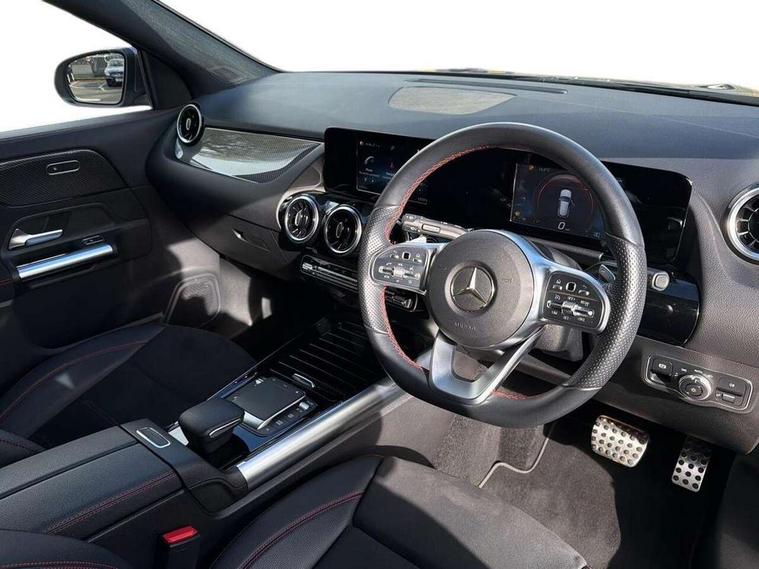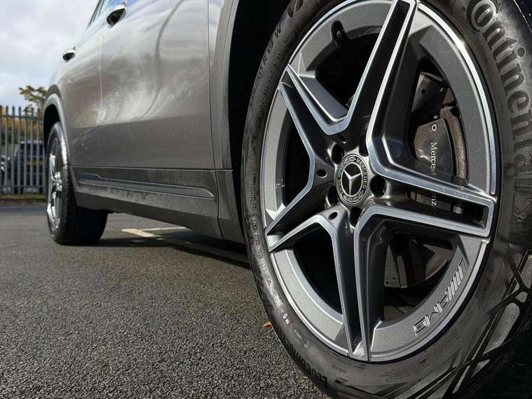 180 degree reversing camera with parking guidelines, 7 inch digital instrument cluster display, 7" touchscreen media display, Active lane keeping assist, Attention assist, Cruise control + speed limiter, Direct steering, DYNAMIC SELECT with a choice of driving modes (ECO, Comfort, Sport and Individual), ECO start/stop function, Fluid level warning indicator for fuel, oil, coolant and washer fluid, Hard-disk navigation, Hey Mercedes Voice activation, Lamp failure indicator, Mercedes me connect including emergency call system, accident recovery, breakdown and maintenance management, Mercedes me remote services, Multi function trip computer, Outside temperature gauge, Owners manual and service booklet in English, Pre-installation of private car share, Radio aerial integrated into front and rear windshields, Service indicator (ASSYST), Speed limit assist, Status display for rear seat belts in instrument cluster, Lowered comfort suspension, Rear axle multi-link, 2 USB ports (type C) in rear stowage compartment and one in front of center console, Bluetooth connectivity including audio streaming, DAB Digital radio, MBUX multimedia system, Media interface, Mercedes-Benz sound system - 100W, Adaptive brake lights, Aerial for GPS, Aluminium roof rails, AMG front and rear apron, AMG specific/dual flow exhaust pipes in chrome (non-functional), Automatic headlamp activation, Beltline strips and weather strip in chrome, Black grained claddings with chrome parts, Body colour bumpers, Body colour door handles, Body colour door mirrors, Car wash function, Dark privacy glass from B-pillar backwards, Electric front windows, Electric rear windows, Electrically adjustable and heated door mirrors with integrated LED indicators, Front door sills with Mercedes-Benz lettering, Heated glass rear windscreen + timer control, Heated windscreen wash system, Interior mirror with black reading lamps and frameless, LED high performance headlamps with integrated LED daytime running lights, LED tail lights in two piece design, LED third brake light, Matt titanium grey front and rear apron trim, Rain sensor windscreen wipers, Rear fog lights, Roof spoiler, Single lamella raditor grille with chrome dotted diamond grille and inlay, 12V power socket in centre console, 3 spoke multifunction sports steering wheel in nappa leather with flattened bottom and perforated grip area, 40:20:40 split folding rear seat backrests, Adjustable head restraints, Air conditioning - Two zone thermotronic luxury automatic climate control with display, Ambient lighting in front headrests, AMG floor mats with AMG lettering and stiched edging, Artico man-made leather/Microfibre Dinamica upholstery with red contrast stitching, Auto Mercedes-Benz child seat recognition sensor, Black roof lining, Brushed door pulls in silver chrome, Courtesy light in boot, Front centre armrest with stowage, Galvanished gear shift paddles on steering wheel, Heated front seats, Illuminated glovebox, Leather trimmed gearknob, Luggage net on driver/front passenger seat backrest, Manually height and reach adjustable steering column, Multi-gesture touchpad control on center console, Sports pedals in brushed stainless steel with black rubber studs, Sports seats, Stowage compartment in centre console, Stowage compartment with retractable cover, Sunvisors with illuminated vanity mirrors, Twin front cup holders, Two outer rear seat isofix and top tether child seat fixing points, AMG body styling pack - GLA, Comfort seat pack - GLA Class, Interior lighting with light and sight pack - GLA, Load compartment pack - GLA, 3 rear 3 point seatbelts, ABS with Brake Assist, Active bonnet pedestrain safety measure which detects an impact and raises bonnet by 65mm, Active brake assist includes forward collision warning system with autonomous braking, Adaptive brake assist with hold function and hill start assist, Bonnet with power domes, Brake pad wear warning indicator, Childproof locks manually operated for rear doors and electrically operated for rear power windows, Crash responsive emergency lighting, Driver and passenger head and side airbags, Drivers knee airbag, Dual stage driver/passenger airbags, Electronic parking brake, ESP curve dynamic assist, ESP with ASR, Front and rear seatbelt reminder, Front brake callipers with Mercedes Benz logo lettering on front, Front brake discs internally ventilated and perforated, Front passenger seat occupancy sensor, Tyre pressure monitoring system, Warning triangle and first aid kit, Window airbags, Alarm system with immobiliser and interior protection -Thatcham category 1, Keyless Go starting function, Remote central locking and crash sensor with emergency opening function, Urban guard vehicle protection, Vehicle key with decorative surround in chrome, Carbon structure trim, Chrome air vent surrounds, 19" AMG 5 twin spoke light alloy wheels aerodynamically optimised painted in tantalite grey with a high sheen finish, Summer tyres, Tirefit tyre sealant kit,