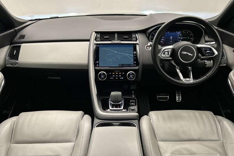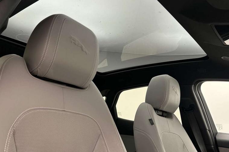 11.4" touchscreen with central ICP, 12.3" full digital instrument panel, Adaptive cruise control, Android Auto, Apple car play, Blind spot assist, Driver condition monitor, Eco driving style assistant, Electric power assisted steering, Emergency services call system, Front and rear parking aid, InControl remote, Jaguar drive control with adaptive surface response, Jaguar Toggle sport shift selector, Lane keep assist, Outside temperature gauge, Pivi pro connected infotainment system with smart settings and navigation pro, Push button start, Rear collision monitor, Rear traffic monitor, Speed proportional steering, Traffic sign recognition with adaptive speed limiter, Trip computer, Voice control system, 7 kW onboard charger, Configurable dynamics, Electric rear axle drive, Home charging cable Mode 2, Large fuel tank, Passive suspension, Public charging cable Mode 3, AM/FM DVD MP3 radio, Bluetooth connectivity including audio streaming, DAB digital audio broadcast, Dynamic volume control, 3 flash lane change indicators, Approach Illumination, Auto high beam assist, Automatic headlights, Body colour door handles, Body colour door mirrors, Body colour front and rear lower bumper main moulding and lower side cladding, Body colour upper spoiler, Body coloured side sills, Centre high-mounted stop light, Dark satin grille tips, Electric front/rear windows with one touch/auto up/down, Electric heated/power fold memory door mirrors with approach lights and auto dimming driver side, Embossed leaper for grained and windsor leather, Heated washer jets, Heated windscreen, Jaguar script and leaper, LED tail lights, LED third brake light, Narvik black antenna pod and side pillar finisher, R Dynamic badge, R Dynamic body colour bumpers, Rain sensor windscreen wipers, Rear fog lights, Rear side wing doors, Rear wash wiper, Satin black grained front outer grille, low grill mesh and low bumper valence, side fender vent mesh and finisher, rear tow eye cover and grille mesh, Twin exhaust tailpipe, Variable front intermittent wipers, 3 rear head restraints, 3 seat bench in 2nd row, 40:20:40 rear seat fold, Bright metal pedals, Carpet mats, Centre console with armrest, Enhanced ambient lighting, Hooks loadspace, ISOFIX on outer rear seats, Loadspace cover, Loadspace light, Loadspace storage net, Luggage tie-downs in loadspace, Manual height/reach adjust steering wheel, Multifunction steering wheel, Overhead lighting console, Passive front head restraints, Power sockets, R-Dynamic branded leather steering wheel, Rear air vents, Rear bench seats, Satin chrome gearshift paddles, Single front passenger seat, Sunvisors with illuminated vanity mirrors, Twin front cupholders, Two zone climate control, Windsor leather upholstery + sport seats, 3x3 point rear seatbelts, ABS, All surface progress control (ASPC), Child locks on rear doors, Customer configurable autolock, DSC - Dynamic Stability Control, Electronic brake force distribution, Electronic parking brake, Emergency brake assist, Emergency braking, Front airbags with passenger seat occupant detector, Front and rear curtain airbags, Front and rear seatbelt reminder, Front passenger airbag deactivation, Front seatbelt pretensioners, Front side airbags, Height adjustable front seatbelts, Hill start assist, Low friction launch, Power child locks, Torque vectoring brake, Tyre pressure monitoring system, Intrusion sensor and alarm, Keyless entry, Locking wheel nuts, Remote central locking,