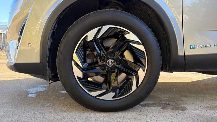 2 front USB-C ports, 2 rear USB-C ports, 360 degree Intelligent around view monitor with moving object detection, Blind spot intervention, Blind spot warning, Drive assist custom mode, Drive modes (sport, normal, eco), Driver drowsiness and attention warning, e-Pedal step, Electric speed sensitive power steering, Emergency and breakdown call, Emergency lane keep assist, Emergency Stop Signal (ESS), Engine start/stop button, EV mode switch, Event data recorder, Front and rear parking sensors, Full Digital 12.3" TFT Digital Combimeter, Google virtual personal assistance, Idle stop/start system, In-car WIFI hotspot, Intelligent Cruise control (ICC), Intelligent forward collision warning, Intelligent speed assist, Lane departure warning system, Nissan connect 12.3 inch touchscreen infotainment system, Nissan connect navigation with google maps, Nissan connect services 2.0 (Google Automotive System), Outside temperature sensor, Rear cross traffic alert, Reversing detection, Traffic jam pilot, Wireless Apple CarPlay/Android Auto, Wireless charging pad, Limited slip differential, 6 speakers, AM/FM audio system with DAB, Bluetooth audio streaming, Auto dimming frameless rear view mirror, Auto rear wiper when reversing, Body colour mirror caps, Body coloured door handles, Bodyside mouldings, Chrome side window finisher, e-POWER badging, Electric auto folding door mirrors, Electrically adjustable and heated door mirrors with LED turn indicator, Follow me home headlights, High beam assist, Intelligent auto headlights, LED 3rd brake light, LED daytime running lights, LED Headlights, LED rear lights, One touch front and rear electric windows with remote opening and closing, One touch passenger window, Partially body coloured bumpers, Rear privacy glass, Rear roof spoiler, Rear side wing doors, Rear styling plate, Shark fin antenna, Splash free rain sensing wipers, Super UV and infrared cut glass, Three blink turn signal, 3 bench rear seats in 2nd row, 3 rear headrests, 60/40 split folding rear seat bench, Chrome interior door handles, Cloth upholstery, Dark headlining, Driver seat back pocket, Dual zone automatic climate control with pollen filter, e-POWER shifter, Front door with bottle holders, Height adjustable front headrests, Luggage board system, Luggage space lighting, Multifunction steering wheel, Passenger seat back pocket, Rear door bottle holders, RGB ambient light (Full area coverage), Single front passenger seat, Smooth leather steering wheel, Tilt/telescopic adjustable steering wheel, Two rear isofix child seat anchorage points with top tether, 3x3 point rear seatbelt pretensioners + load limiters, Autonomous emergency braking, Child locks on rear doors, Curtain and front side, far side airbags, Driver and passenger airbags, Driver, passenger and 2nd row rear seat belt reminder, Electric handbrake with auto hold function, Front seatbelt pretensioners + load limiters, Height adjustable front seatbelts, Hill start assist, intelligent front emergency braking, Rear automatic braking, Tyre pressure monitoring system, Vehicle dynamic control, Engine immobiliser, Intelligent key with walk away lock and approach unlock functions, Remote central door locking with deadlocking, Thatcham alarm, 18" Diamond cut alloy wheels, Tyre puncture repair kit,