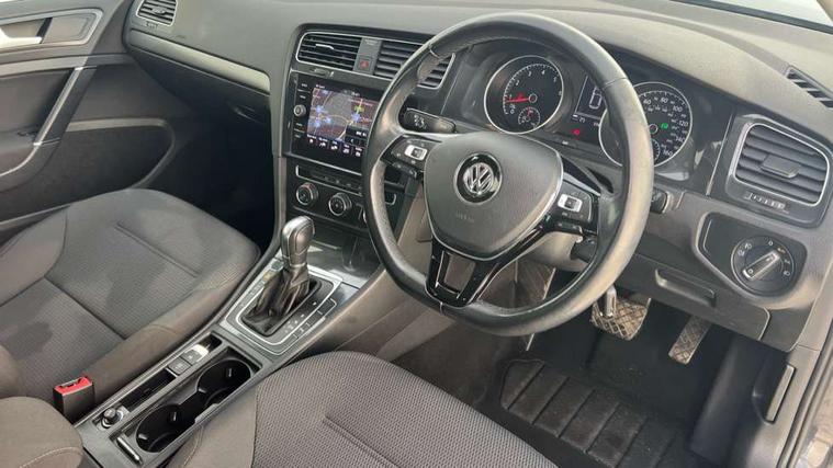 'Lights On' Reminder warning buzzer, ACC - Adaptive cruise control with front assist, forward collision warning, distance monitoring, city emergency brake and speed limiter, Bluetooth telephone and audio connection for compatible devices, Brake pad wear indicator warning light, Driver alert system, Driver profile selection, Driving Mode Selection with four preset modes - Eco, normal, sport or individual modes, Instrument cluster in white, Multifunction computer with visual gear change recommendation for fuel consumption, Power assisted speed sensitive electro-mechanical steering, Push tank flap, Speed limit display, Speedo, rev counter, electronic odometer, trip, service interval display, exterior temperature and fuel gauge, Stop/start system, Warning buzzer and light for front seatbelts unfastened, Battery regeneration during braking, XDS electronic differential lock, Composition media system, DAB Digital radio receiver, Driver Personalisation profile selection, MP3/WMA compatability, Multi device interface (MDI) with USB connection, Personalisation 1.1 profile for media, Premium USB cable in choice of either Apple or Android smartphone compatibility, SD card slot, SMS Functionality, USB and SD card connectivity, Black front air intake and radiator grille with chrome insert, Black rear diffuser, Body colour bumpers, Body colour door handles, Body colour door mirrors with integrated indicators, Dusk sensor + automatic driving lights, Electric front windows, Electric rear windows, Electrically adjustable and heated door mirrors, Fully galvanised body, Heated rear windscreen, Hidden exhaust pipe, High level 3rd brake light incorporating LED Technology, LED daytime running lights, LED front fog lights with static cornering light function, Rear fog lamp, Rear tinted glass 65% light absorbing from B pillar backwards, Rear window aerial, Rear window wash/wipe with intermittent wipe, Reflectors in all doors, Tailgate with integrated rear roof spoiler, Windscreen wipers/ intermittent wipe + 4 position delay, 12V socket in luggage compartment, 3 rear headrests, 4 load lashing points in luggage compartment, 60/40 split folding rear seat backrest, Auto fold down lever in rear seat backrest, Bag hook in luggage compartment x 2, Cooled glovebox, Cupholder cover, Dust/pollen filter, Front and rear reading lights incorporating LED technology, Front centre armrest with storage compartment and two rear air vents, Front seat back storage pockets, Grab handles front x 2, rear x 2 with integrated coat hooks, Height and reach adjustable steering wheel, Illuminated vanity mirrors, Instrument lighting white adjustable panel illumination, Interior light delay, Isofix preparation for 2 rear child seats, Load through provision with rear centre armrest and cupholders x2, Luggage compartment lighting, Overhead storage box, Passenger underseat drawer, Pearl grey headlining, Storage box in luggage compartment, Storage compartment in roof console with cover, Storage compartments in centre console, Storage compartments in front doors, Storage compartments in rear doors, Stowable luggage compartment cover, Sun visors, Variable boot floor, height adjustable and removable, Convenience Pack - Golf, Light and Sight pack - Golf, Mirror pack - Golf, 3 rear three point seatbelts, Airbags - Driver's and front passenger's, curtain airbag, Driver's knee, front side impact and passenger's airbag deactivation switch, Anti-lock Braking System (ABS) with Hydraulic Brake Assist (HBA), Automatic post collision braking system, Child locks on rear doors, Driver/Passenger optimised head restraints, Electronic parking brake with auto hold, Electronic stability control (ESC) including Electronic differential lock (EDL) and ASR (Traction control) with deactivation via infotainment system, Front ventilated disc brakes and rear disc brakes, Pre crash preventive occupant protection, Three point height adjustable front seatbelts with tensioners, Tyre pressure loss indicator, Alarm with interior protection and deactivation via infotainment system, Electronic engine immobiliser, Remote central locking with 2 remote folding keys, Brushed dark silver decorative inserts in dash and door panels, Chrome plated air vent surround, Chrome plated electric mirror adjustment light switch surround, Polar night black centre console, Steel space saver spare wheel,