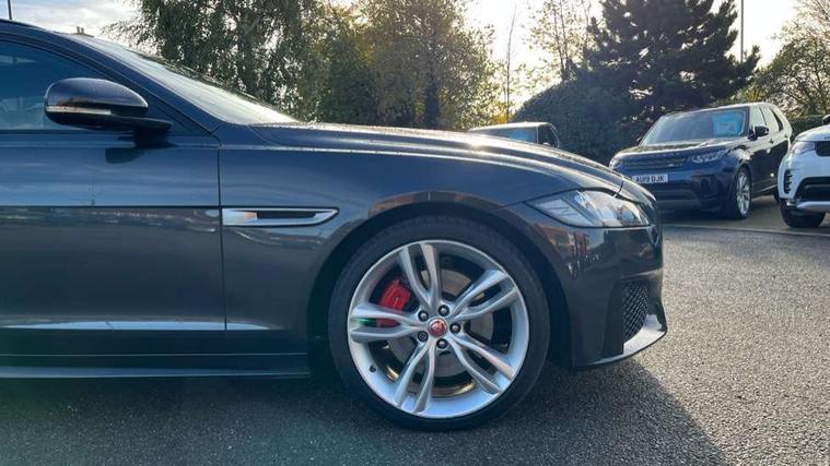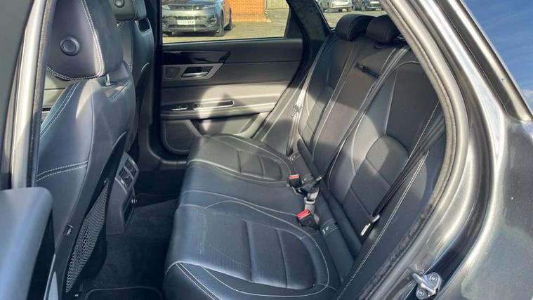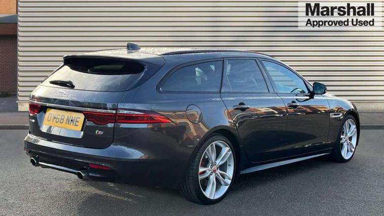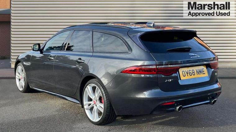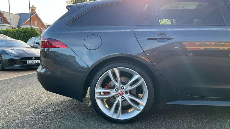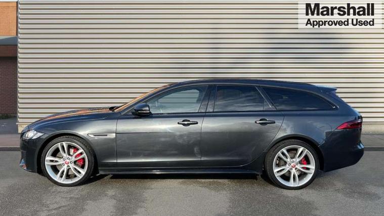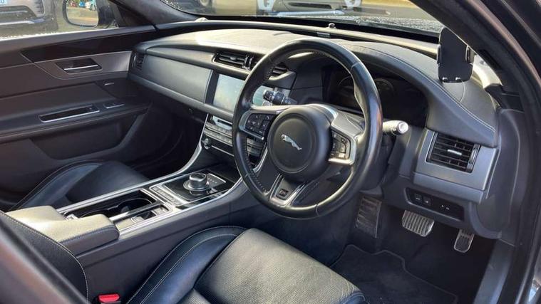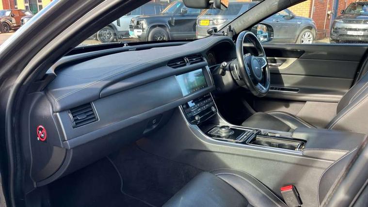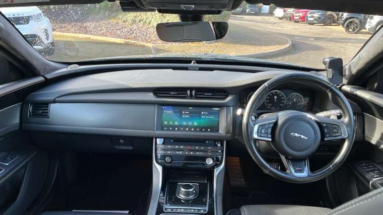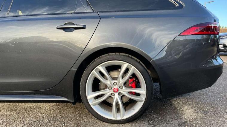 Analogue dials with 7" central TFT display, Bluetooth telephone connectivity, Electric power steering, Forward facing stereoscopic camera, Front parking aid, InControl remote premium, Instrument cluster with 5 TFT display, Jaguar Voice front, Lane departure warning system, Outside temperature gauge, Pro services and wifi hotspot, Rear parking aid, Service interval indicator, Traffic sign recognition with adaptive speed limiter, Trip computer, 8 speed automatic transmission, Adaptive dynamics, Configurable dynamics, Self levelling rear air suspension, Bluetooth audio streaming, DAB Radio (Digital Audio Broadcasting), InControl app, InControl protect, InControl Wi-fi, USB and auxiliary socket, 'S' Body kit, Acoustic windscreen, Approach lamps, Auto dimming rear view mirror, Automatic headlights, Blue tinted glass, Body colour door mirrors, Boot mounted spoiler, Electric front/rear windows with one touch/auto up/down, Frameless auto dimming interior rear view mirror, Gloss Black Extended Side Sills, Gloss black side sills, Headlight power wash, Heat insulated glass, Heated front windscreen, Heated rear window, LED tail lights, Metal load space scuff plates, Rain sensor windscreen wipers, Rear wash/wipe, Roof spoiler, S badge front and rear, S front bumper, S rear bumper with gloss black valance, Satin Chrome side vents, Tailgate/boot lid spoiler, Trailer stability assist, 2nd row air vents, 3 rear seat head restraints, 4 way electric lumbar support for driver and front passenger, 40:20:40 split folding rear seats, Auxilliary 12V power socket, Bright metal foot pedals, Chrome seat switches, Front armrest, Front centre console storage box, Isofix child seat preparation, Jaguar sense, JaguarDrive selector, Loadspace cover, Loadspace rails, Overhead console with sunglasses holder, Premium carpet mats, Rear armrest with twin cupholders, Rear storage compartment, S branded multi function steering wheel, S branded soft grain leather steering wheel, Satin chrome trunk finish, Sports seats, Sunvisors with illuminated vanity mirrors, Tie down hooks in luggage area, Twin front cupholders, 350mm front brakes, ABS+EBA, Anti-whiplash front headrests, Autonomous emergency braking, Brake pad warning light, Driver/Front Passenger airbags, DSC - Dynamic Stability Control, Electronic parking brake, Emergency brake assist, Front and rear curtain airbags, Front/rear seatbelt pre-tensioners, Hill start assist, Pedestrian contact sensing, Power child locks, Red coloured brake calipers, Seatbelt warning, Side airbags, Three 3 point rear seatbelts, Torque vectoring brake, Traction control, Tyre pressure monitoring system, Deadlocks, Drive away door locking, Immobiliser, Keyless entry system, Keyless Start, Locking wheel nuts, Perimeter alarm, Remote central locking, Dark hex aluminium instrument panel finisher, Dark satin grey side cheeks, Luxtec wrapped instrument panel,