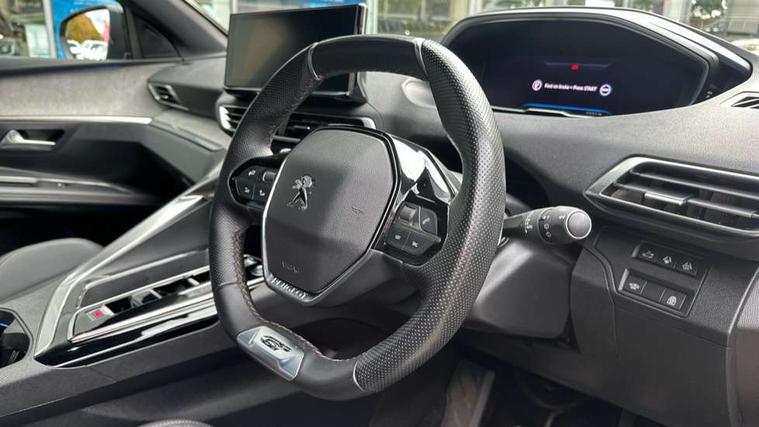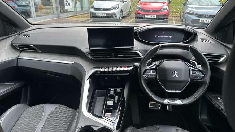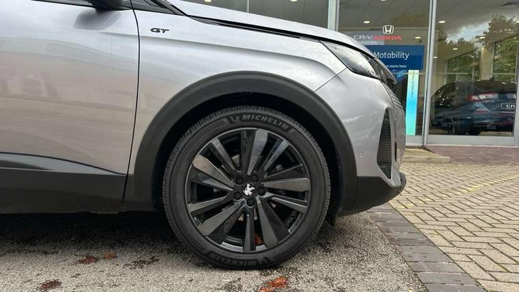 3D connected navigation with 10" HD touchscreen + voice recognition system, Blind spot detection system, Bluetooth telephone facility, Drive modes select (Eco, normal and sport), Driver Attention Alert level 3, Driving Time Warning (DAA1), Emergency services call system, Extended traffic sign recognition, Exterior temperature indicator with ice warning, Lane departure warning system, Lane Keeping Assistance (LKA) with road edge detection, Mirror screen with Apple CarPlay and Android auto, Multi function trip computer, PEUGEOT i-Cockpit with compact sports steering wheel, PEUGEOT i-Cockpit with configurable 12.3" Head-up digital instrument panel, PEUGEOT SOS and assistance, Rear parking sensor, Rear passenger USB charging sockets (x2) (type A), Speed limit recognition and recommendation, Dynamic stability control and electronic anti-skid system, DAB Digital radio, USB socket in front centre console, 2 X Rear number plate lights, Auto self levelling headlights, Automatic hazard light activation upon heavy brake application, Automatic triggered rear windscreen wiper in reverse gear, Black with chrome detailed front wing trim, Body colour door handles, Body colour rear roof spoiler with stainless steel edging trim, Body protectors (wheel arches + protection at bottom of doors) in black, Dark tinted rear side windows + tailgate window, Diamond Black door mirror shells, Electric heated folding door mirrors, Front windscreen wiper with magic wash cleaning system, Full LED headlights with fog mode, Gloss black B and C pillar and aerodynamic deflector trim, Gloss black front bumper air scoops, Gloss black rear cluster connecting strip, Gloss black windscreen trim, GT emblems on tailgate, Headlights left on audible warning, Heated rear windscreen with integrated antenna, High beam assist, LED daytime running lights in fang style, LED front indicator, LED side indicator lights integrated into door mirrors, LED third brake light, One touch electric front/rear windows with pinch protection, Rear LED Peugeot signature 'Claw Effect' lights with clear lens and scrolling LED direction indicators, Rear side wing doors, Twin exhaust effect trim, 1/3 to 2/3 split folding rear seats, 12V Sockets in dashboard, rear cabin and load area, 2 cupholders in front centre console, 2 x Rear reading spotlights, 2x Rear coat hooks, 3x Isofix child seat fittings in the front passenger and outer rear seats, 4 Grab handles retractable and damped, Aikinite stitching in armrest, gear lever and dashboard facia, Aluminium pedals, Blue ambient lighting for connecting zone, Blue ambient lighting to front door panels, central cup holders, Blue ambient lighting to headup instrument panel, Centre front armrest with butterfly wing opening and illuminated storage compartment, Driver seat manual adjustment (longitudinal and back rest angle), Dual zone automatic climate control, e-Toggle compact gear selector, Electric power steering with reach and rake adjustable steering column, Flocked front door pocket interior with blue ambient lighting, Flocked glovebox interior, Foldable front passenger seat with picnic table, Footwell illumination, Front interior light with 2 reading spotlights and rear interior light with timer, Front seat back map pockets, Gear shift indicator, Illuminated glove box, central storage area and load area, Illuminated vanity mirrors, Individual left and right controls in boot for seat folding, LED interior lighting in storage spaces and load area, LED roof interior lighting, Mistral floor mats with Aikinite contrast stitching, Mistral full grain perforated leather steering wheel with aikinite stitch detail and satin chrome 'GT' emblem, Rear armrest with ski flap and two cup holders, Rear bench seat with central armrest and ski hatch, Rear centre console ventilation system, Roof lining - Mistral black, Satin chrome dashboard trim, Satin chrome digital instrument panel, Satin chrome front door panel recess trim, Satin chrome interior door handles, Satin chrome scorpion's tail and toggle switch trim, Seatbelt not fastened audible and visual alert for front seats, Seatbelt unfastened on the move audible and visual alert for front and rear seats, Two position boot floor, Drive assist plus pack with front parking sensors - 3008, Visibility pack - 3008 GT, 3x Rear three-point retractable seatbelts with force limiters in the outer rear seats, ABS (Anti-lock Braking System) with EBD (Electronic Brakeforce Distribution) and EBA (Emergency Braking Assistance), Adaptive driver and front passenger airbags with passenger airbag deactivation function, Driver and front passenger side airbags, Electric child locking functionality on rear windows and doors, Electric parking brake, Front and rear curtain airbags, Front optimised safety headrests and 3 x rear retractable headrests with height adjustable, Front three point retractable seatbelts height adjustable with pre tensioners and force limiters, Front ventilated disc brakes and rear disc brakes, Hill start assist, Two tone horn, Automatic door locking when moving off, Electronic immobiliser, key operated exterior door lock from the left hand door, Perimetric and volumetric alarm with lift and tilt sensor, Peugeot Open and Go System, Remote control central locking with two plip keys, Michelin e-primacy 225/55 R18 102V class A+ tyres, Tyre repair and inflation kit,