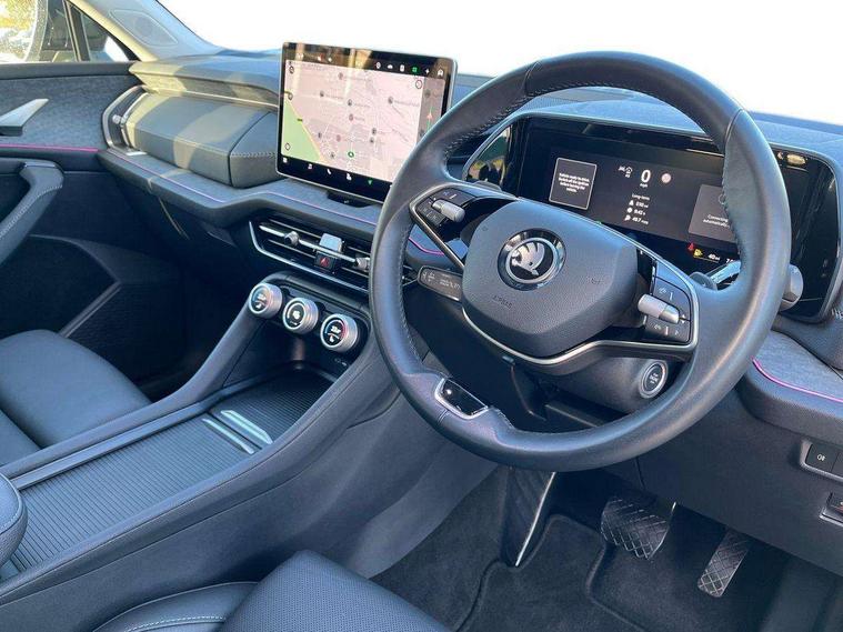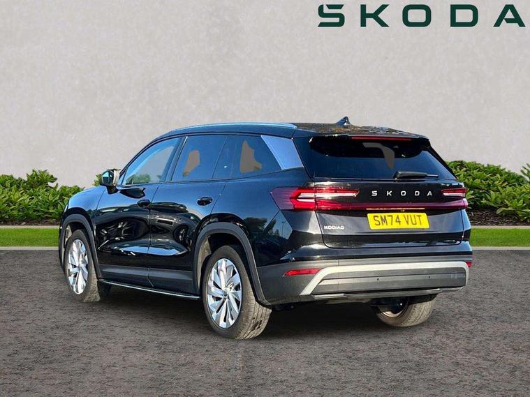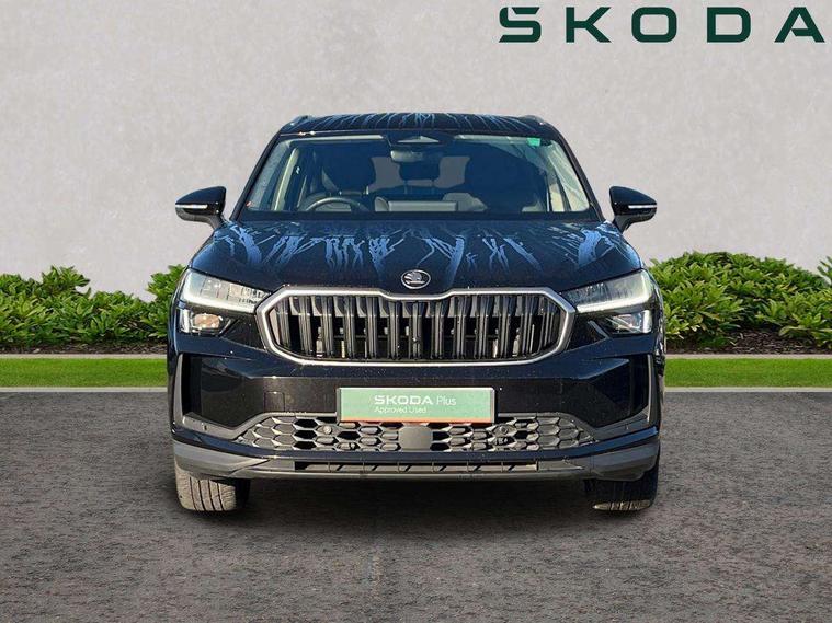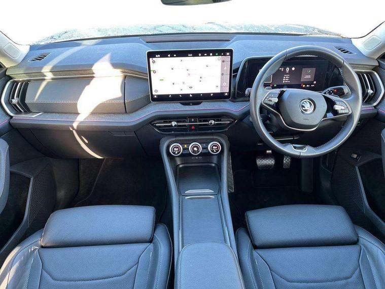13" satellite navigation touchscreen display, Blind spot detection with door exit warning, Bluetooth system, ChatGPT functionality, Driver alert - Fatigue and drowsiness monitor, Dry display cleaner, Emergency call, Front and rear parking sensors, Front cross traffic assist, Lane assist, PAS, Rear traffic assist, Tailgate unlocking from outside, Traffic sign recognition, USB C Port x 2 in front centre console, Virtual Cockpit - 10.25" digital display, Voice control system, Wireless charging for two smartphones (15W) with cooling function, Wireless SmartLink for Apple CarPlay and Android Auto, Stop/start function, 2x USB-C in the rear, DAB Digital radio, Aero front windscreen wipers with intermittent function, Auto dimming rear view mirror, AWL (all weather lighting) and all weather light with cornering function, Black wheel arch surrounds, Body colour bumpers, Body colour door mirrors and handles, Cornering light and poor weather light, Electric folding /adjustable/separted heated/folding door mirrors, auto dimming with boarding sports and memory function, Electric front and rear windows, Exterior black decorative trims, Heat insulating glass in windshield, Heated rear window, Ice scraper in fuel tank cap, Invisible tailpipe, LED daytime running lights, LED third brake light in rear spoiler, Light assistant with automatic headlight control and coming home feature, Logo projection in door mirrors, Privacy glass, Rear roof spoiler, Rear side wing doors, Rear window wiper, Red decorative strip between rear LED lights, Safety reflectors on front and rear doors, Unique dark chrome design logo on alloy wheels, Window control switches with black trim, Windscreen wipers with rain sensor, Without engine designation, 1.5l bottle holder points in all door, 1x centre rear reading light, 2 seat bench in 3rd row, 3 configurable smart dials with 32mm coloured display, 3 seat bench in 2nd row, 4 foldable roof handles with rear coat hooks, Ambient interior lighting - Dashboard, front-door stowage compartments, front and rear door panels and footwell lighting, Automatic gear selector on steering column, Chrome interior door handles, Driver/front passenger reading lights, Fabric headlining, Fixed bench 40:60:40 split folding backrests, Front and rear floor mats, Front centre armrest with jumbo box storage compartment, cup holder and 12V socket, Height adjustable front headrests, Isofix child seat fittings in outer middle row rear seats and front passenger with top tether, Manually adjustable steering column, Pollen filter, Rear centre armrest with cupholders, Rear seat boot backrest release, Single front passenger seat, Skoda lettering on steering wheel, Storage pocket including mobile phone pockets on the backs of the front seats, Sunvisors with illuminated vanity mirrors, Three rear height adjustable headrests, Ticket holder on A Pillar, Tri zone climate control, Umbrella in door panel x1 made from sustainable materials, Upper and lower glovebox with card holder and coin compartment, USB C port by rear view mirror for charging only (15W), Exterior styling pack - Kodiaq, Auto door release and activation of warning lights in the event of an accident, Driver and front passenger airbag with knee airbag and front passenger airbag deactivation, Electric child locks, Electronic parking brake, ESC (incl. ABS+EMD+MSR+ASR+EDL+HBA+DSR+RBS+ESBS+MCB+TSA+XDS), Front assist with braking reaction to vehicles, pedestrians and cyclists, Front disc brakes, Fuel cut off safety device, Height adjustable front 3 point seatbelts + pretensioners, Hill hold assist, Junction assist with automatic emergency braking, Rear disc brakes, Safety vest holder in door, Seat belt reminder for all seats, Three point rear seat belts, Two tone horn, Tyre pressure monitor, Anti-theft wheel bolts, Immobiliser, Remote central locking with 2 keys,