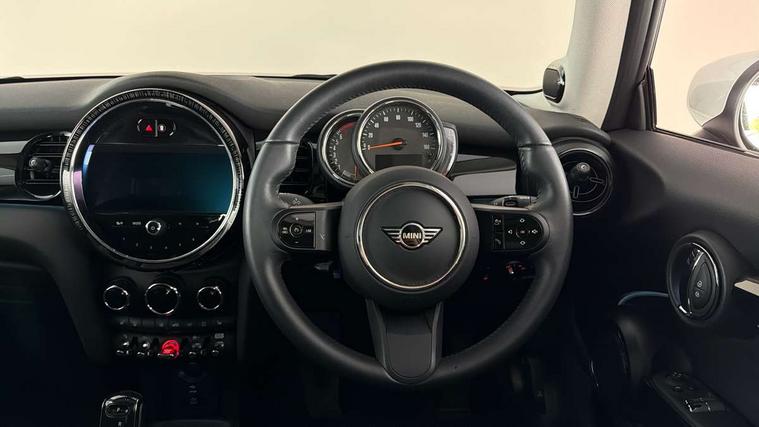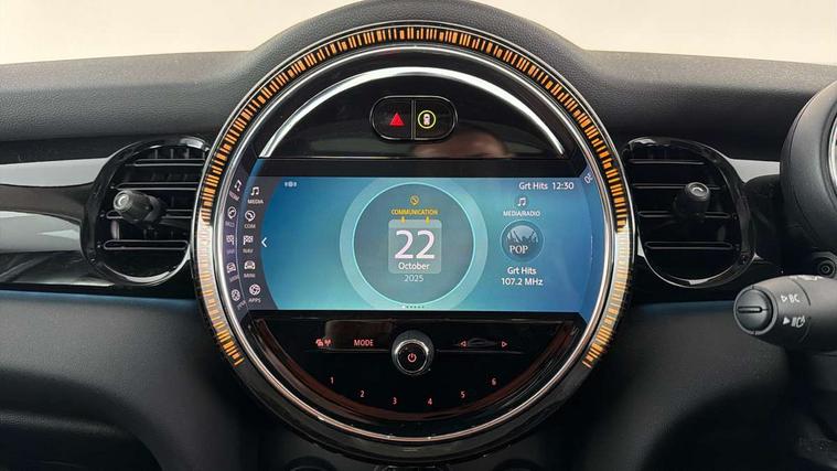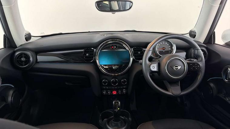 Apple CarPlay, Automatic start/stop function with brake energy recuperation, Compatible mobile phone bluetooth with audio streaming, Cruise control with brake assist, Electro-mechanical speed dependant steering assistance, Flexible car sharing preparation, Instrument cluster, Mini E-call, MINI TeleServices, On board computer, Service interval indicator, Double Vanos system, Fully variable valve control, High precision injection, Performance Control, Steptronic transmission with double clutch, 8.8" touchscreen with LED ring, FM tuner and DAB digital radio, 3rd brake light, Automatic headlight activation switch, Body colour fuel filler cap, Chrome border high gloss black slats radiator grille, Dynamic brake lights, Electric front windows, Exhaust tailpipe on left with chrome finisher, Heated rear window, Heated windscreen washer jets, LED headlight with closed ring and daytime driving lights, Metal door sill strips with MINI imprint, Model logo Cooper on right of tailgate, Rain sensor window wipers, Rear fog lights, Rear LED lights with union jack design, Rear window wiper, Side scuttle panel with integrated indicator, Sun/heat protection glass, White indicator lenses, 12V Accessory socket in centre console, 2 seat bench in 2nd row, 4 lashing eyes in luggage compartment, 60/40 split folding rear seat, Ambient lighting, Carbon black colour line - Knee roll and door armrest, Chrome interior highlights, Cupholders, Front and rear head restraints, Front and rear isofix with front passenger airbag deactivation, Front floor mats in velour, Glove compartment, Height and length steering column adjustment, Interior lighting with 12 different colours across the dashboard, underneath door bezel with illuminated laser-engraved design on central display, Leatherette gearshift lever and handbrake gaiters, LED reading lights, vanity mirror lights, front foot well light and spotlight on front seats, Manual air conditioning, Mechanical seat adjustment - forward/back & backrest for front seats and driver seat height adjust, Multifunction steering wheel, Passenger seat height adjuster, Satellite grey headlining including grab handles and clothes hooks, Single front passenger seat, Sport leather steering wheel with speed limiter and audio/communication controls, Storage compartments in doors, Sunvisors with vanity mirrors, 3 point seatbelts on all four seats, 6 Airbags - front, side, head and seat belt tensioners, Anti-lock braking system (ABS), DSC - Dynamic Stability Control, Front and rear disc brakes, Single tone fanfare horn, Tyre pressure monitoring system, Alarm system with tilt sensor, monitoring doors, bonnet interior and tailgate, Electronic vehicle immobiliser, Start/stop toggle with keyless go, Piano black interior trim, Tool kit, Tyre repair kit,