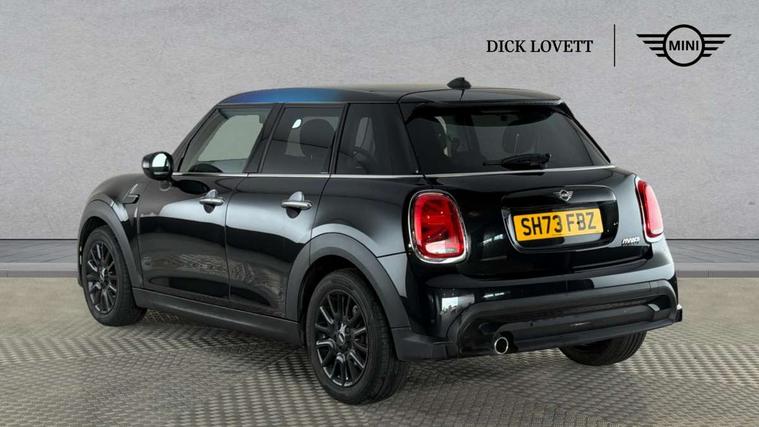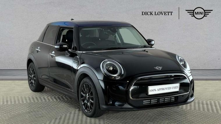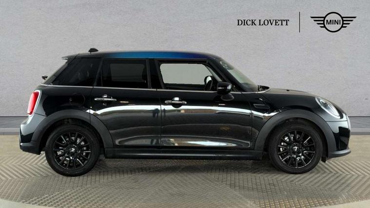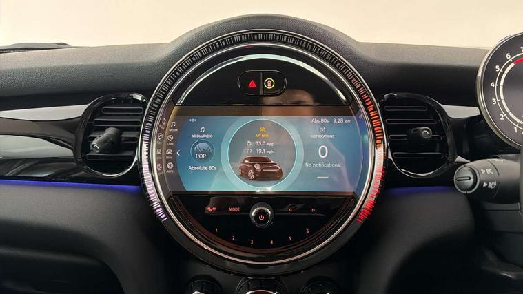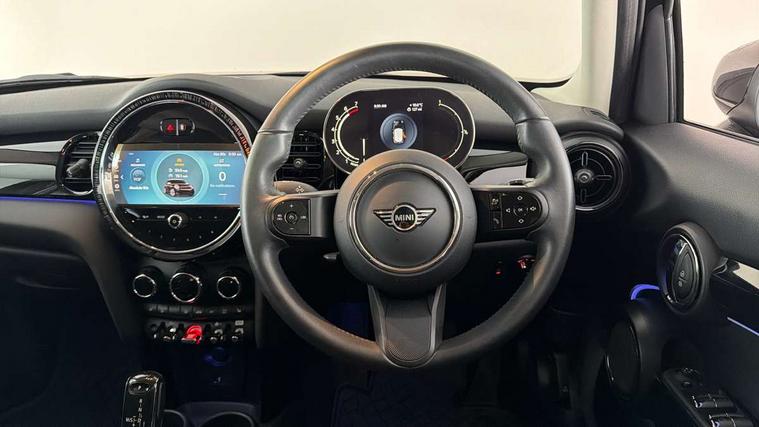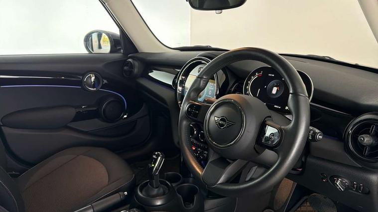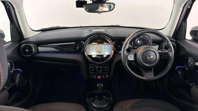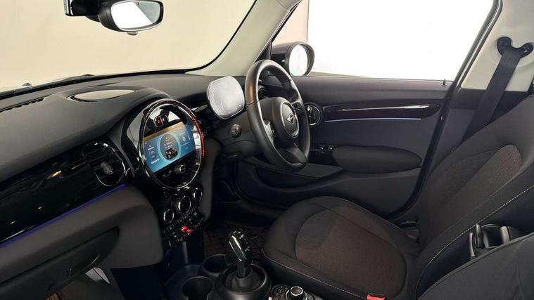 Apple CarPlay, Automatic start/stop function with brake energy recuperation, Compatible mobile phone bluetooth with audio streaming, Electro-mechanical speed dependant steering assistance, Flexible car sharing preparation, Mini E-call, MINI TeleServices, On board computer, Service interval indicator, Double Vanos system, Fully variable valve control, Gear change indicator display, High precision injection, Performance Control, Steptronic transmission with double clutch, 8.8" touchscreen with LED ring, FM tuner and DAB digital radio, 3rd brake light, Automatic headlight activation switch, Body colour fuel filler cap, Chrome border high gloss black slats radiator grille, Dynamic brake lights, Electric front+rear windows, Exhaust tailpipe on left with chrome finisher, Heated rear window, Heated windscreen washer jets, Metal door sill strips with MINI imprint, Model logo Cooper on right of tailgate, Rain sensor window wipers, Rear fog lights, Rear LED lights with union jack design, Rear side wing doors, Rear window wiper, Side scuttle panel with integrated indicator, Sun/heat protection glass, White indicator lenses, 12V Accessory socket in centre console, 3 seat bench in 2nd row, 4 lashing eyes in luggage compartment, 60/40 split folding rear seat, Ambient lighting, Carbon black colour line - Knee roll and door armrest, Chrome interior highlights, Cupholders, Front and rear head restraints, Front and rear isofix with front passenger airbag deactivation, Front and rear velour floor mats, Glove compartment, Height and length steering column adjustment, Interior lighting with 12 different colours across the dashboard, underneath door bezel with illuminated laser-engraved design on central display, Leatherette gearshift lever and handbrake gaiters, LED reading lights, vanity mirror lights, front foot well light and spotlight on front seats, Mechanical seat adjustment - forward/back & backrest for front seats and driver seat height adjust, Multifunction steering wheel, Satellite grey headlining including grab handles and clothes hooks, Single front passenger seat, Sport leather steering wheel with speed limiter and audio/communication controls, Storage compartments in doors, Sunvisors with vanity mirrors, 3 point seatbelts on all five seats, 6 Airbags - front, side, head and seat belt tensioners, Anti-lock braking system (ABS), Child locks on rear doors, DSC - Dynamic Stability Control, Front and rear disc brakes, Hill start assist, Single tone fanfare horn, Tyre pressure monitoring system, Alarm system with tilt sensor, monitoring doors, bonnet interior and tailgate, Electronic vehicle immobiliser, Start/stop toggle with keyless go, Piano black interior trim, Tool kit, Tyre repair kit,