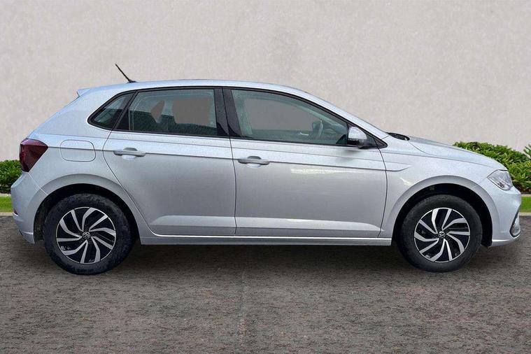 Adaptive cruise control with follow-to-stop and speed limiter, Advanced driver attention and drowsiness monitor, Bluetooth mobile phone interface, Dynamic road sign display, Emergency call service, Power assisted speed sensitive steering, Preparation for navigation system with media and internet package, Preparation for We connect and We connect plus, Speedo and rev counter, electronic odometer, trip, service interval display and exterior temperature gauge, Standard rear axle, Travel Assist - Lane keeping system and traffic jam assist, Travel assist including emergency assist, Trip computer, Warning signal and warning light for front and rear seatbelts not fastened, Washer fluid level indicator, Wireless app connect, Front wheel drive, Rear shock absorpion, Start-stop system with battery regeneration (recuperation - energy recovery during braking), DAB Digital radio, Diversity antenna for FM reception, Automatic dimming interior rear view mirror, Automatic headlight control with LED separate daytime running lights with coming/leaving home function, Body colour bumpers with chrome inserts, Body colour door handles, Body colour door mirrors, Electric front windows, Engine badge deletion, Headlight range adjustment, Heat insulating and laminated safety glass windshield, Heat insulating darkened glass in side and rear windows, Heat insulating glass windscreen, LED Headlights, LED rear combination lamps, Power folding adjustable/heated exterior mirrors and front passenger exterior mirror lowering function, Rain sensor, Rear electric windows, Rear fog light, Rear side wing doors, Rear windscreen washer and wiper with interval delay, Third brake light, 12V power socket in centre console, 2 front and 2 rear reading lights with switch off delay and dimmer, 2 USB-C ports in the front, 2 USB-C charging sockets on the center console in the rear, 3 rear head restraints, 60/40 split folding rear seat and rear seat bench not split, Ceramique roof lining, Chrome plated radiator grille inserts, air vent surrounds and light switch surrounds, Door and side trim panel, Driver and front passenger seat height adjustment, Driver/passenger sunvisors with illuminated vanity mirrors, Front centre armrest, Front seat backrest storage pockets, Front standard seats, Handbrake lever handle in leather, Hartley/Thomas cloth upholstery, Headliner in recycled material, Isofix child seat preparation easy-fit (for two outer rear seats, and front passenger seat) compatible with I-size, Leather trimmed gear knob, Luggage compartment cover, Luggage compartment lighting, Removable luggage compartment floor, Single front passenger seat, Standard climatic zones, Standard pedal cluster, Three spoke leather wrapped multifunction steering wheel with shifting paddles, Light and vision pack - Polo, 3 point height adj front seatbelts + pretensioners, 3x3 point rear seatbelts, ABS, Driver and front passenger airbag with front passenger airbag deactivation, Drivers and front passengers safety optimised head restraints, ESC (Electronic stability control) + EDL (Electronic Differntial lock) and ASR (Traction control), Extended and predictive pedestrian/ cyclist protection, Front assist with autonomous emergency braking (for Adaptive Cruise Control ACC up to 130 mph), Front curtain and side airbags with center airbag, Front disc brakes, Hill hold control, Manual child lock in rear doors, Rear drum brakes, Single tone horn, Tyre pressure loss indicator, Alarm with interior protection, Anti-theft alarm system with interior monitoring, backup horn, and towing protection, Anti-theft wheel bolts, Electronic engine immobiliser, Lava stone black gloss/matt decorative inserts in dash and front door panels, Low rolling resistance tyres,