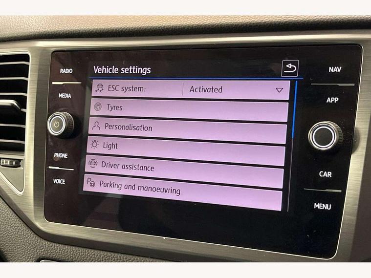 'Lights On' Reminder warning buzzer, ACC - Adaptive cruise control with front assist, forward collision warning, distance monitoring, city emergency brake and speed limiter, App-Connect, Bluetooth Telephone preparation, Brake pad wear indicator warning light, Driver alert system, Driver profile selection, Exterior temperature gauge, Front and rear parking sensors, PAS - speed related, Push tank flap, Rev counter, Speedometer, electronic odometer and fuel gauge, Stop/start system, Trip and service interval display, Warning buzzer and light for front seatbelts unfastened, White instrument cluster lighting, XDS electronic differential lock, CD/MP3/WMA, USB and SD card reader, aux-in, Composition media system, DAB Digital radio, Personalisation 1.1 profile for media, Auto dimming rear view mirror, Automatic coming/leaving home lighting function, Black front air intake and radiator grilles, Body colour bumpers, Body colour door handles, Body colour door mirrors with integral indicators, Electric front windows, Electric rear windows, Electrically adjustable and heated door mirrors, Fog light with turning light, Front fog lights with static cornering function, Galvanised body, Heat insulated tinted glass 65% light absorbing from B pillar back, Heated rear windscreen, LED 3rd brake lamp, LED daytime running lights, LED rear lights, Rain sensor, Range adjustable headlights, Rear diffuser, Rear roof spoiler, Rear window antenna, Rear windscreen washer and wiper with interval delay, Twin exhaust tailpipe, Windscreen wipers/ intermittent wipe + 4 position delay, 12V socket in luggage compartment, 2 front reading lights, 3 rear headrests, 3 spoke multi-function leather steering wheel and gearknob, 60/40 split folding rear seat, Auto fold down lever in rear seat backrest, Boot lashing points, Centre console storage box, Cooled glovebox, Courtesy light delay, Driver and front passenger under seat drawer, Driver/front passenger seat height adjustment, Dust/pollen filter, Front centre armrest with storage box and rear air vents, Front comfort seats, Front seat back storage pockets, Grab handles, Height/reach adjust steering wheel, Interior lighting with switch off delay and contact switches on all doors, Isofix preparation for 2 rear child seats, Luggage compartment cover, Luggage compartment lighting, Overhead storage box, Pearl grey headlining, Rear armrest with 2 cupholders and load through provision, Rear reading lights x 2, Storage box in luggage compartment, Storage boxes under front seats, Storage compartments in doors, Sunvisors with illuminated vanity mirrors, Variable boot floor, height adjustable and removable, White adjustable panel illumination, Mirror pack - Golf, 3 point height adj front seatbelts + pretensioners, 3 rear 3 point seatbelts, ABS, Automatic post collision braking, Child locks on rear doors, Door open warning reflectors, Driver/Front Passenger airbags, Driver/Passenger whiplash optimised head restraints, Drivers knee airbag, Electronic parking brake with auto hold, Electronic tyre pressure monitoring, ESP with EDL + ASR, Front and rear curtain airbags, Front passenger airbag deactivation, Front side airbags, Hydraulic Brake Assist (HBA), Pre crash system, Ventilated front disc brakes, Alarm with interior protection, Electronic engine immobiliser, Remote central locking with 2 remote folding keys, Brushed dark metal decorative inserts in dash and front door panels, Chrome-plated light switch surround, Decor strip on dashboard and door side trim, Polar night black centre console, Steel space saver spare wheel,