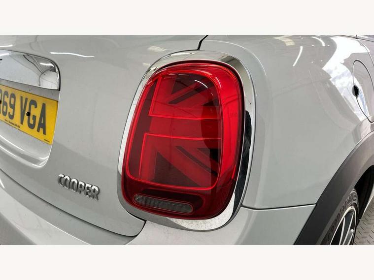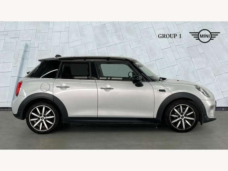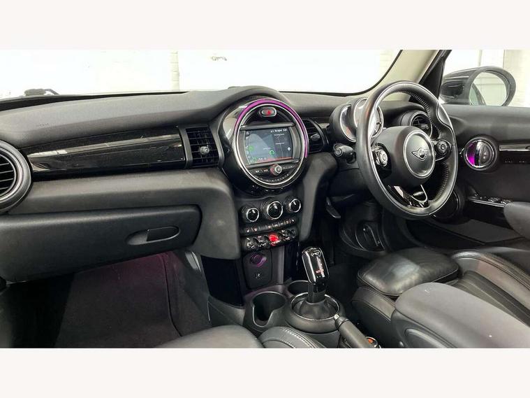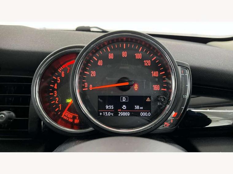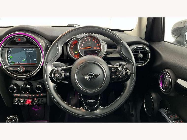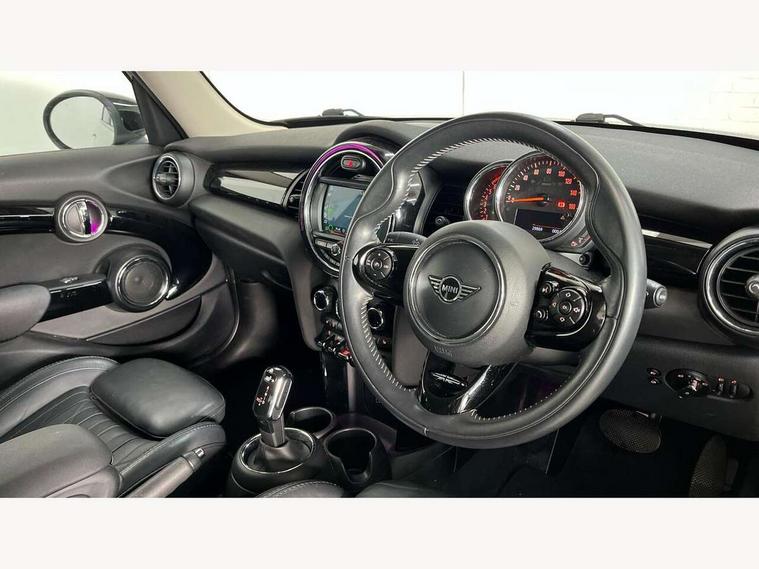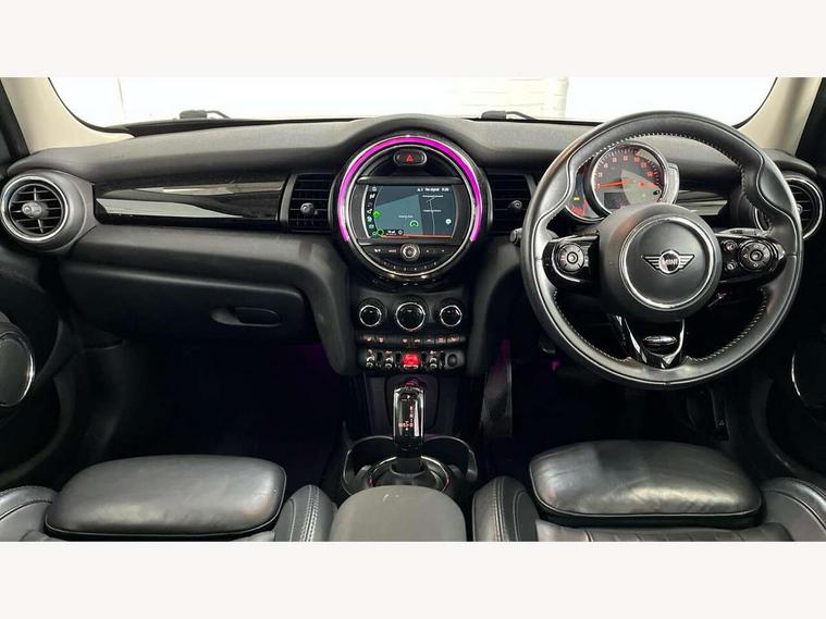 Automatic start/stop function with brake energy recuperation, Compatible mobile phone bluetooth with audio streaming, Electro-mechanical speed dependant steering assistance, Instrument cluster, Mini E-call, MINI TeleServices, On board computer, Service interval indicator, Double Vanos system, Fully variable valve control, High precision injection, Steptronic transmission with double clutch, 6.5" touchscreen with LED ring, FM tuner and DAB digital radio, Automatic headlight activation switch, Body colour fuel filler cap, Chrome border high gloss black slats radiator grille, Chrome line exterior, Dynamic brake lights, Electric front+rear windows, Heated rear window, Heated windscreen washer jets, LED headlight with closed ring and daytime driving lights, Left exhaust tailpipe with chrome finisher, Metal door sill strips with MINI imprint, Model logo Cooper on right of tailgate, Radiator grille bars, tailgate handle, lower front grille grating, rear central fog light in chrome, Rain sensor window wipers, Rear fog lights, Rear LED lights with union jack design, Rear window wiper, Side scuttle panel with integrated indicator, Sun/heat protection glass, White indicator lenses, 12V Accessory socket in centre console, 4 lashing eyes in luggage compartment, 60/40 split folding rear seat, Air vents, gear lever base, speakers in doors, door handles in chrome, Chrome interior highlights, Cupholders, Front and rear head restraints, Front and rear isofix with front passenger airbag deactivation, Glove compartment, Height and length steering column adjustment, Interior lighting with 12 basic colours selectable via toggle switch in roof, Leather gearshift lever and handbrake gaiters, LED reading lights, vanity mirror lights, front foot well light and spotlight on front seats, Manual air conditioning, Mechanical seat adjustment, driver seat height adjust, forward/back and front seats backrest, Mini logo projection on floor from drivers exterior mirror, MINI Yours leather steering wheel with silver contrasting stitching with MINI Yours badge, Multifunction steering wheel, Storage compartments in doors, Sunvisors with vanity mirrors, Tool kit, 3 point seatbelts on all five seats, 6 Airbags - front, side, head and seat belt tensioners, Anti-lock braking system (ABS), DSC - Dynamic Stability Control, Front and rear disc brakes, Hill start assist, Single tone fanfare horn, Tyre pressure monitoring system, Alarm system with tilt sensor, monitoring doors, bonnet interior and tailgate, Electronic vehicle immobiliser, Start/stop toggle with keyless go, Chrome line interior,