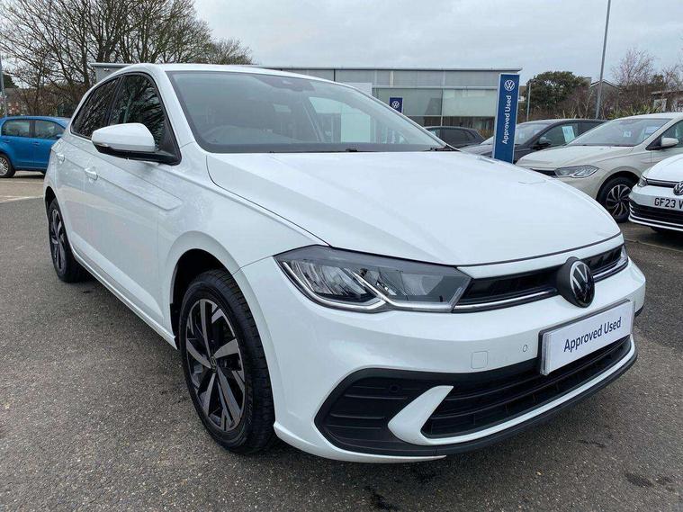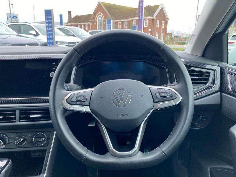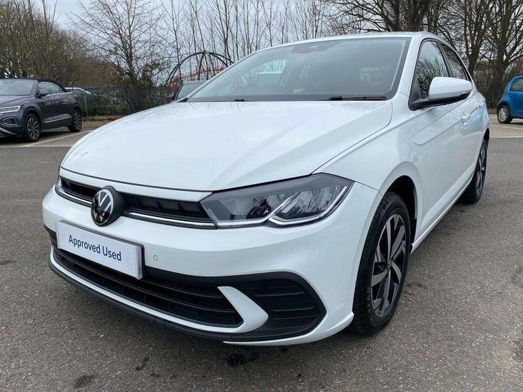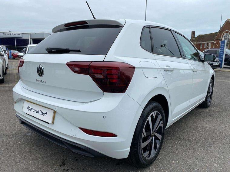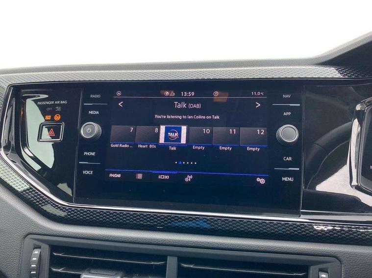 Advanced driver attention and drowsiness monitor, Bluetooth mobile phone interface, Dynamic road sign display, Emergency call service, Mobile phone preparation with inductive charging function, Multifunction front facing camera for distance control, Power assisted speed sensitive steering, Predictive adaptive cruise control without follow-to-stop and speed limiter, Preparation for navigation system with media and internet package, Preparation for We connect and We connect plus, Rear view camera, Speedo and rev counter, electronic odometer, trip, service interval display and exterior temperature gauge, Standard rear axle, Travel Assist - Lane keeping system and traffic jam assist, Travel assist including emergency assist, Trip computer, Warning signal and warning light for front and rear seatbelts not fastened, Washer fluid level indicator, Wireless app connect, Front wheel drive, Rear shock absorpion, Start-stop system with battery regeneration (recuperation - energy recovery during braking), DAB Digital radio, Diversity antenna for FM reception, Automatic dimming interior rear view mirror, Automatic headlight control with LED separate daytime running lights with coming/leaving home function, Body colour bumpers with chrome inserts, Body colour door handles, Body colour door mirrors, Electric front windows, Engine badge deletion, Headlight range adjustment, Heat insulating and laminated safety glass windshield, LED Headlights, LED rear combination lamps, Power folding adjustable/heated exterior mirrors and front passenger exterior mirror lowering function, Rain sensor, Rear electric windows, Rear fog light, Rear side wing doors, Rear tinted glass from B-pillar backwards approx 65% tinted, Rear windscreen washer and wiper with interval delay, Third brake light, 12V power socket in centre console, 2 front and 2 rear reading lights with switch off delay and dimmer, 2 USB-C ports in the front, 2 USB-C charging sockets on the center console in the rear, 3 rear head restraints, 60/40 split folding rear seat and rear seat bench not split, Ceramique roof lining, Chrome plated radiator grille inserts, air vent surrounds and light switch surrounds, Door and side trim panel, Driver and front passenger seat height adjustment, Driver/passenger sunvisors with illuminated vanity mirrors, Front centre armrest, Front seat backrest storage pockets, Front standard seats, Handbrake lever handle in leather, Hartley/Thomas cloth upholstery, Headliner in recycled material, Isofix child seat preparation easy-fit (for two outer rear seats, and front passenger seat) compatible with I-size, Leather trimmed gear knob, Luggage compartment cover, Luggage compartment lighting, Removable luggage compartment floor, Single front passenger seat, Standard climatic zones, Standard pedal cluster, Three spoke leather wrapped multifunction steering wheel with shifting paddles, Light and vision pack - Polo, 3 point height adj front seatbelts + pretensioners, 3 point seat belt for centre rear seat, 3 point seatbelts, outer rear with ECE lable, ABS, Driver and front passenger airbag with front passenger airbag deactivation, Drivers and front passengers safety optimised head restraints, ESC (Electronic stability control) + EDL (Electronic Differntial lock) and ASR (Traction control), Extended and predictive pedestrian/ cyclist protection, Front assist with autonomous emergency braking (for Adaptive Cruise Control ACC up to 130 mph), Front curtain and side airbags with center airbag, Front disc brakes, Hill hold control, Manual child lock in rear doors, Rear drum brakes, Single tone horn, Tyre pressure loss indicator, Alarm with interior protection, Anti-theft alarm system with interior monitoring, backup horn, and towing protection, Anti-theft wheel bolts, Electronic engine immobiliser, Lava stone black gloss/matt decorative inserts in dash and front door panels, 16" Torsby alloy wheels, Low rolling resistance tyres,