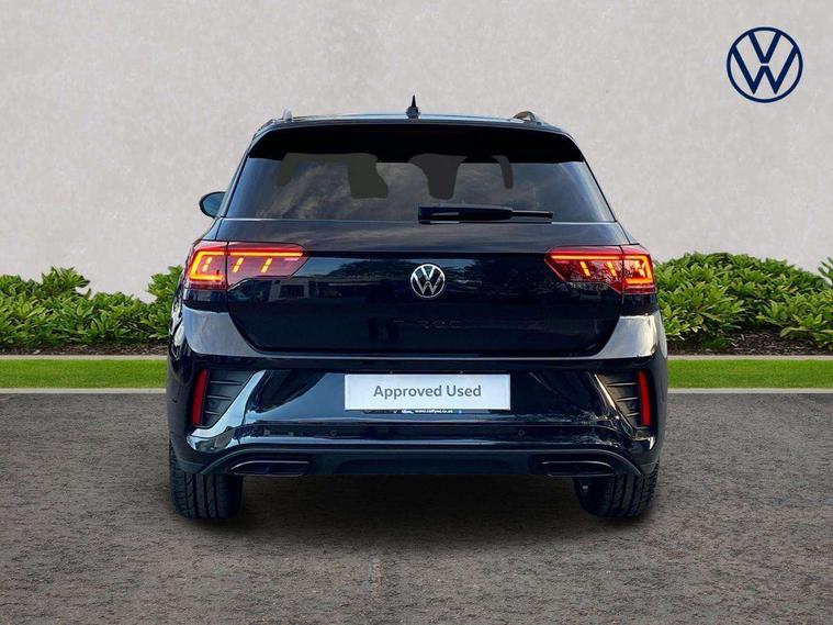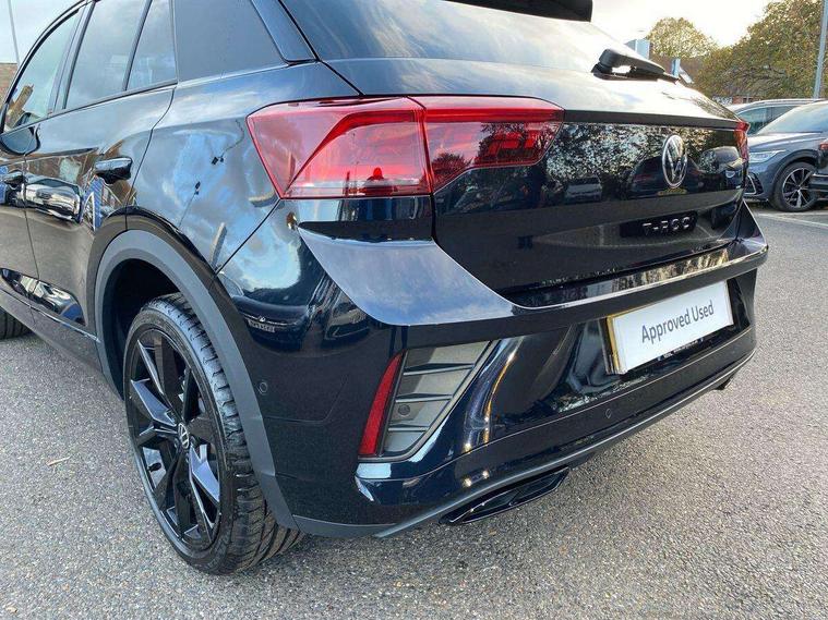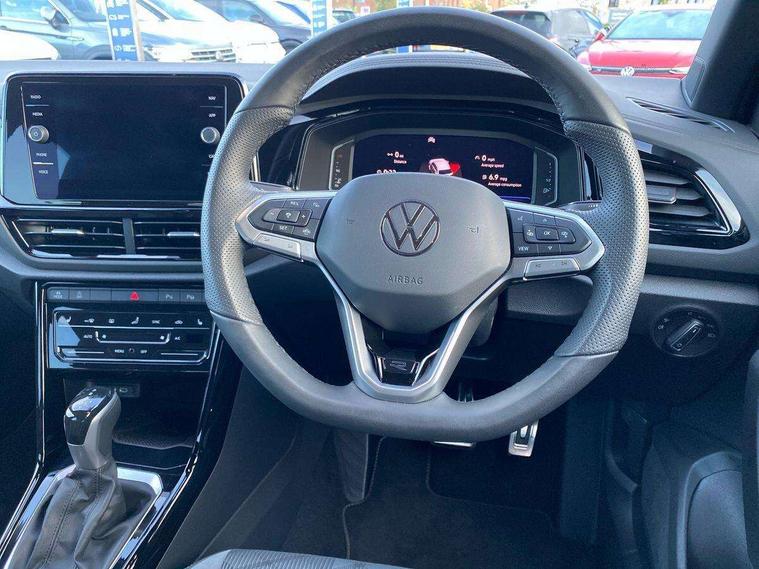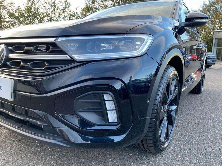 10.25" Digital cockpit pro, Advanced driver attention and drowsiness monitor, Emergency call service, Lane keeping system Lane Assist, Mobile phone interface, Modified key software - reduce switch off time for key status change to Long no motion, Online services, Park assist including front and rear parking sensors, Power assisted speed sensitive steering, Service interval indicator, Tailgate/trunk lid release from outside, Think blue trainer driver tips and journey analysis, Warning sound and light for front seatbelts unfastened, Wireless app connect, Battery regeneration during braking, Rear shock absorption chassis with increased ride height, Start/stop function with battery regeneration, DAB Digital radio, Diversity antenna for FM reception, Front and rear 6 speakers, Music playback - MP3, WMA and AAC files, Premium USB cable in choice of either Apple or Android smartphone compatibility, SD card slot, Simultaneous pairing of 2 compatible mobile devices, Title and cover art display, We Connect and We Connect Plus functionality, Auto dimming interior rear view mirror, Automatic hazard lights activation under emergency braking, Automatic headlight control with LED separate daytime running lights with coming/leaving home function, Dynamic cornering light, Electrically adjustable and heated door mirrors, Extended roof spoiler, Exterior mirrors aspherical on driver side, convex on front passenger side, External USB type C socket and charging sockets, Front windscreen wiper with intermittent wipe and 4 position delay, Heated rear window, Illuminated front grille, IQ LED matrix headlights, LED 3rd brake light, LED rear number plate lights, LED rear tail lights with dynamic turn signal, Light mode for poor weather, rain, fog or snow, Power windows with comfort operation and circuit breaker, R-Line design body coloured bumpers, Rain sensor, Rear exhaust tailpipe, Rear fog light on one side and reversing lights on both sides, Rear side wing doors, Rear wash/wipe with intermittent wipe setting, Remote electrically foldable door mirrors, puddle lights and reverse activated passenger's door mirror, 12V power socket in centre console, 3 rear head restraints, 3 seat bench in 2nd row, 4 load lashing points in luggage compartment, Air care climatronic air conditoning system with active combination filter and 2-zone temperature control, Artvelours cloth upholstery, Black roof lining, Chrome plated radiator grille inserts, air vent surrounds and light switch surrounds, Door and side trim panel with leatherette insert, Drawer under drivers seat, Driver seat height adjust, Driver's seat lumbar support, Front + rear carpet mats, Front centre armrest, Front comfort sports seats, Front cupholders x 2, Front footwell illumination, Front reading light, Front scuff plates with R Line logo, Front seat back storage pockets, Glove compartment door with light, Instrument lighting, white adjustable panel illumination, Interior ambient lighting and surround lighting, Interior light delay, Isofix child seat preparation, Leather gearshift handle, Leather wrapped multifunction steering wheel with paddle shift, Load-through provision with cup holder when folded down ('Unsplit rear seat bench, split folding backrest, with centre armrest), Luggage compartment lighting, Non-folding front passenger seat backrest, Passenger seat height adjuster, Passenger seat lumbar support, Single front passenger seat, Stainless steel pedals, Storage compartment in left and right luggage area, Storage compartment in rear doors, Storage compartments in driver and front passenger doors, Sunvisors with illuminated vanity mirrors, Variable boot floor, height adjustable and removable, Winter pack without heated windscreen washer jets - T-Roc, 3 point height adj front seatbelts + pretensioners, 3 point seatbelts in outer rear with ECE label, ABS, Child locks on rear doors, City emergency braking and pedestrian monitoring, Driver and front passenger airbag with front passenger airbag deactivation, Driver and front passenger safety-optimised head restraints, Drivers seatbelt reminder, Electronic parking brake, Electronic Stability Control (ESC) inc EDL (Electronic Differential Lock) and ASR (Traction Control), Front and rear passengers curtain airbag system including front side airbags, Front disc brakes, Hill start assist, Predictive pedestrian protection, Rear disc brakes, Two tone horn, Tyre pressure loss indicator, Volkswagen roadside assistance, Tool kit, Trims for alloy wheels, Tyre mobility kit including compressor and sealing foam,