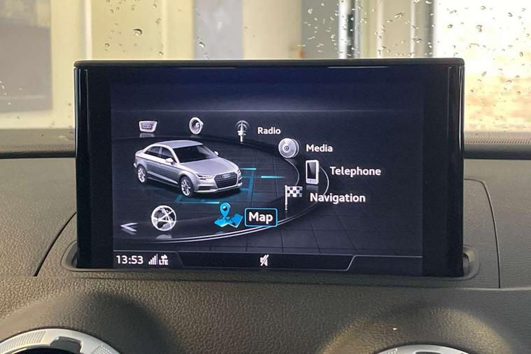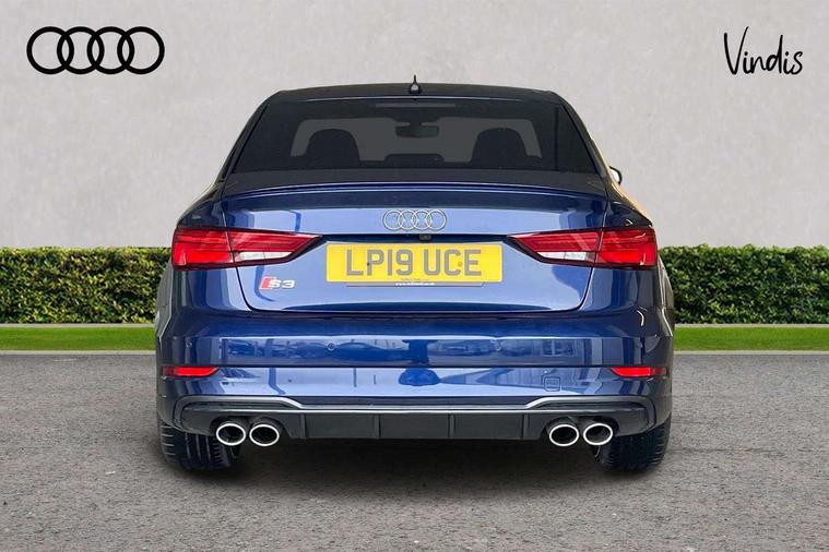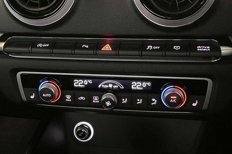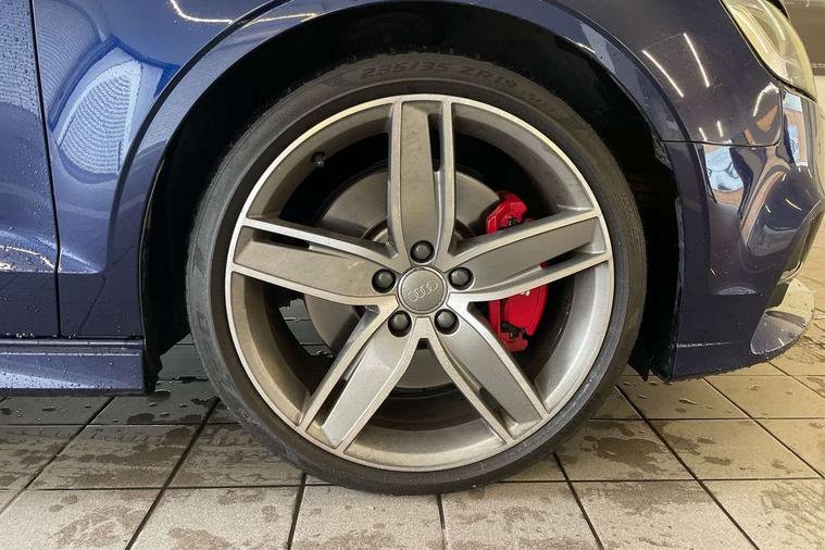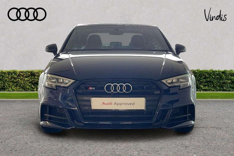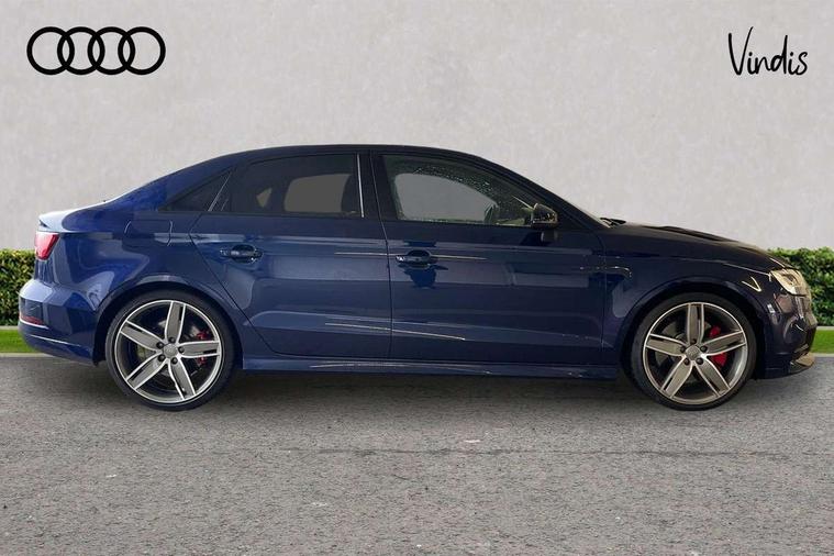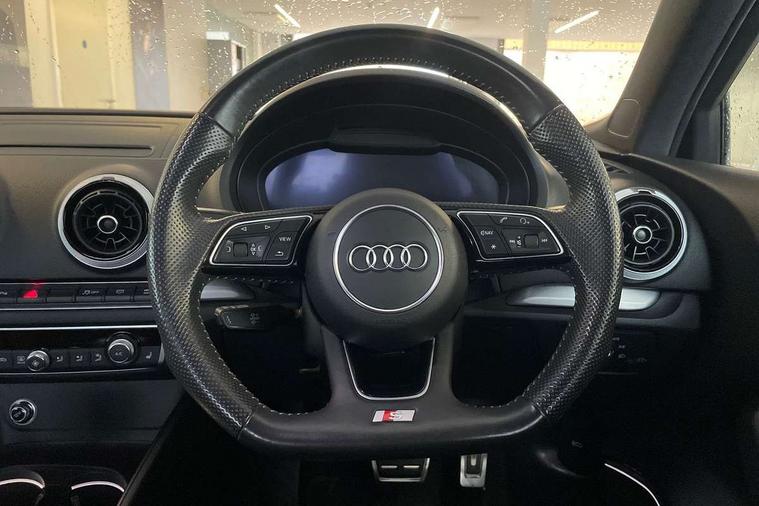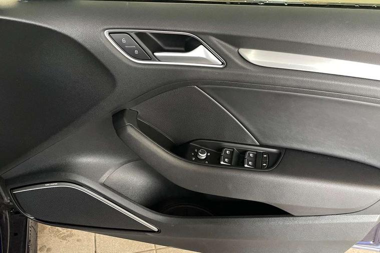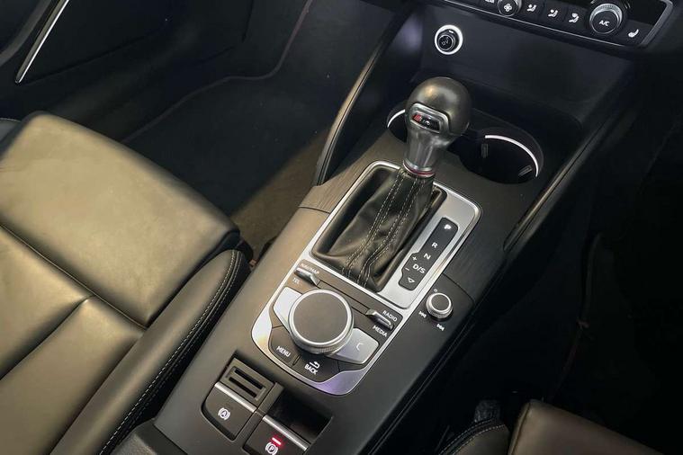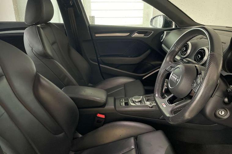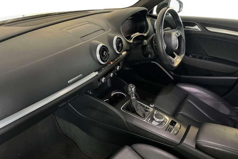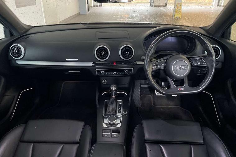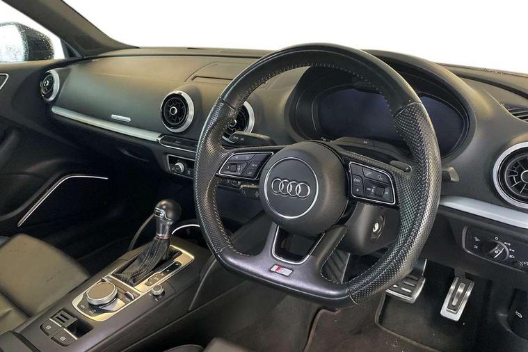 Audi connect, Audi smartphone interface, Automatic start/stop system, Bluetooth interface, Colour driver's information system display, Instrument dials with S3 logo, Progressive power assisted steering, SD card based MMI navigation, Service indicator, Voice control system, Audi magnetic ride, S sports suspension, 2 USB interfaces and Aux-In jack, Bang and Olufsen sound system, CD player, DAB Digital radio, MMI radio plus with 7" colour MMI screen and MMI controller, Two SDXC card slots, Auto dimming rear view mirror, Automatic lights and wipers, Black door mirrors, Black rear diffuser, Body colour roof spoiler, Dual branch oval twin exhaust tailpipes in chrome finish, Electrically adjustable and heated door mirrors with integrated LED side indicators, Front and rear electric windows, Headlight washers, Heated rear window, Heated windscreen washer jets, Model and engine designation badges at rear, Privacy glass, S3 Front bumper, 3 adjustable rear headrests, 3 spoke flat bottomed high multi-function leather sport steering wheel with gearshift paddles, 4 lashing points to secure luggage, 60/40 split folding rear seat, Adjustable front centre armrest, Cloth headlining, Driver/passenger sunvisors, Dual zone electronic climate control, Front and rear interior lights with delay, Front sport seats with S embossed logo, Front/rear floor mats, Heated front seats, Height/depth adjustable steering column, Illuminated door sill trims with S logo, Illuminated glovebox, Illuminated luggage compartment, ISOFIX child seat mounting and Top Tether with front passenger airbag deactivation, Manual height adjustable front seats, Stainless steel pedals, Storage compartments in doors side trims, centre console and under front drivers seat, Black styling pack - A3/S3, LED interior light pack - A3/RS3, Non smoking pack - A3, Storage and luggage pack - A3/RS3, 3 point seatbelts on all seats, ABS/EBD, Active front headrests, Airbags - front driver/passenger, front & rear side, curtain, drivers knee, ASR, EDL, Electromechanical parking brake, ESC - Electronic Stability Control + traction control, Hill hold assist, Predictive pedestrian protection, Seatbelt warning, Tyre pressure warning, Warning triangle and first aid kit, Anti theft alarm, Anti-theft wheel bolts, Immobiliser, Remote control central locking, Aluminium air vent surrounds, Aluminium trim elements, Matt brushed aluminium inlays, Tool kit, Tyre repair kit,