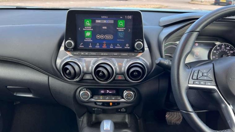 7" full colour TFT screen combimeter, Apple CarPlay and Google Android auto, Drive modes select (Eco, normal and sport), e-Pedal step, Emergency and breakdown call, EV mode selector, Front parking sensor, Intelligent lane intervention, Lane departure warning system, Nissan connect 8" touch screen entertainment system, Nissan connect nav with TomTom traffic, Nissan connect services and Wifi connection, Outside temperature sensor, Power Steering, Rear parking sensor, Traffic sign recognition, Trip computer, Voice recognition, Gasoline particulate filter, 6 speakers, Bluetooth system, USB, Aux-in and 12V socket, DAB Digital radio, Rear console USB port, Auto dimming interior rear view mirror, Auto headlights, Automatic hazard signal with emergency stop signal, Body colour bumpers, Body colour door handles, Electrically adjustable door mirrors with integrated indicators, Follow me home headlights, Front and rear electric window with one touch driver window, Heated and auto folding door mirrors, High beam assist, LED daytime running lights, LED headlamps, LED rear fog lamp, LED rear lamps, Rain sensor windscreen wipers, Rear privacy glass, Rear side wing doors, Rear wiper, Shark fin roof antenna in Pearl Black, Three blink turn signal, 3 height adjustable rear headrests, 3 seat bench in 2nd row, 60/40 split folding rear seat, Automatic climate control, Card holder on driver sunvisor, Cloth upholstery with black and metallic grey syntech leather inserts, Driver and passenger sliding and reclining seats, Driver side rear coat hanger, Driver/passenger sunvisors and vanity mirrors, Front and rear cabin lights, Front armrest, Front door pockets with bottle holders, Front head restraints, Front/rear passenger grab handles, Grey synthetic leather kneepad, Height adjustable driver's seat, Internal chrome door handles, Leather gearshift knob, Leather steering wheel, Luggage board, Luggage space lighting, Monoform sporty seats, Multifunction steering wheel, Rear door bottle holders, Single front passenger seat, Steering wheel mounted gearshift paddles, Telescopic steering wheel adjustment, Two cupholders in front centre console, Two rear isofix child seat anchorage points with top tether, Welcome light and console tray ambient lighting, ABS with EBD and brake assist, Active ride control, Active Trace Control, Driver and passenger airbags, Driver and passenger side airbags, Electric handbrake with auto hold function, Electronic Stability Programme (ESP), Front and rear curtain airbags, Height adjustable seatbelts, Hill start assist, Intelligent emergency braking with pedestrian and cyclist recognition, Rear door child safety locks, Seatbelt reminder for driver/front passenger and rear seats, Single tone horn, Three 3 point rear seatbelts, Traction control, Tyre pressure monitoring system, VDC Dynamic Vehicle Control, Ventilated rear brake discs, Alarm, Immobiliser, Intelligent key and start push button with walk away lock and approach unlock functions, Remote central locking,
