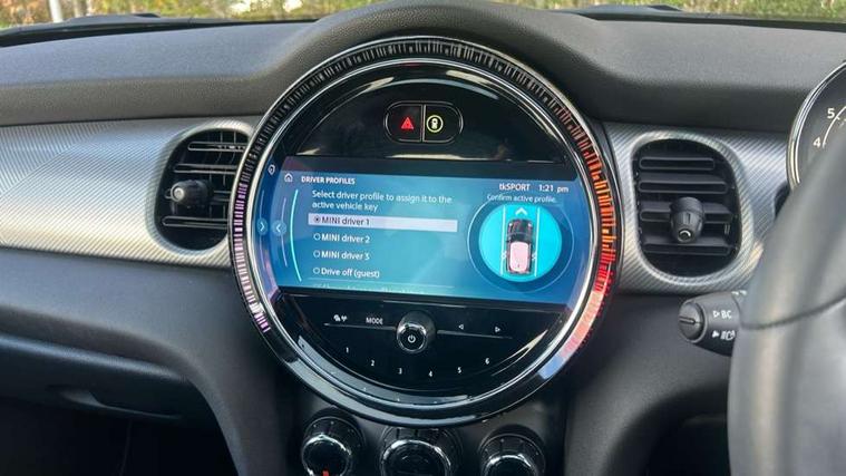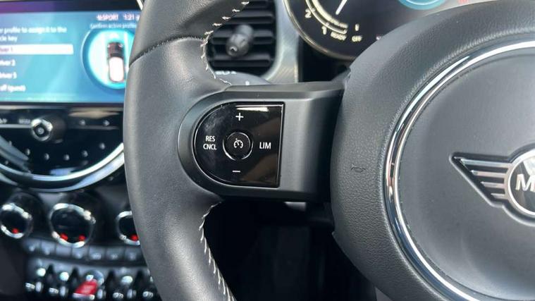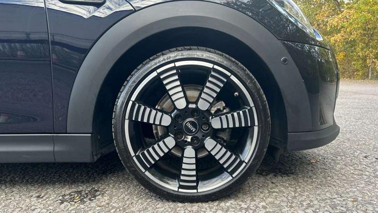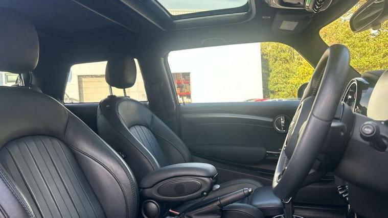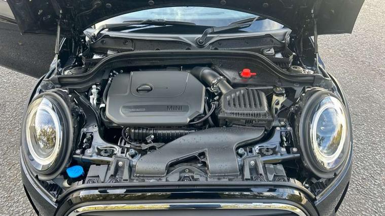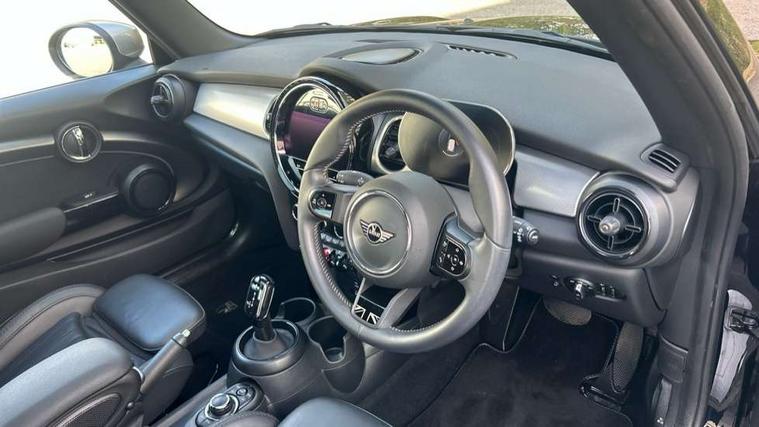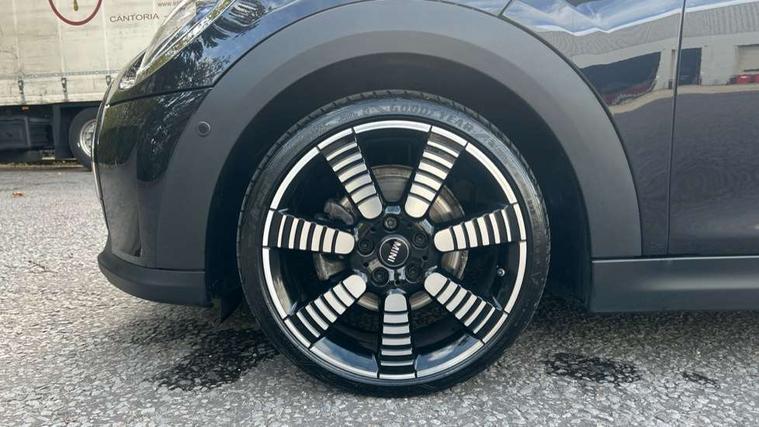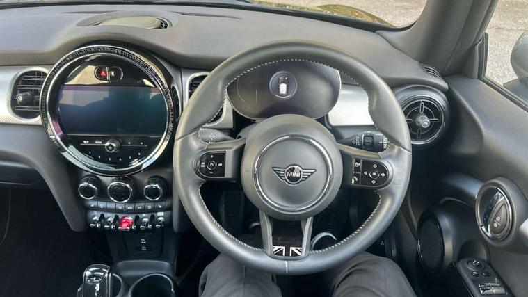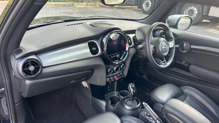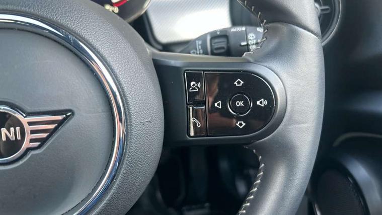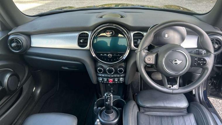 Apple CarPlay, Automatic start/stop function with brake energy recuperation, Compatible mobile phone bluetooth with audio streaming, Cruise control with brake assist, Electro-mechanical speed dependant steering assistance, Flexible car sharing preparation, Instrument cluster, MINI Driving Modes - centre toggle switch to control driving setting (sport, mid and green), Mini E-call, MINI TeleServices, On board computer, Rear park distance control, Service interval indicator, Double Vanos system, Fully variable valve control, High precision injection, Performance Control, Steptronic transmission with double clutch, 8.8" touchscreen with LED ring, FM tuner and DAB digital radio, 3rd brake light, Automatic headlight activation switch, Body colour fuel filler cap, Chrome line exterior - radiator grille bars, tailgate handle, lower front grille grating and rear central fog-light, Dynamic brake lights, Electric front windows, Heated rear window, Heated windscreen washer jets, LED headlight with closed ring and daytime driving lights, Metal door sill strips with MINI imprint, Model logo Cooper on right of tailgate, Rain sensor window wipers, Rear fog lights, Rear LED lights with union jack design, Rear window wiper, Side scuttle panel with integrated indicator, Sun/heat protection glass, White indicator lenses, 12V Accessory socket in centre console, 2 seat bench in 2nd row, 4 lashing eyes in luggage compartment, 60/40 split folding rear seat, Carbon black colour line - Knee roll and door armrest, Chrome interior highlights, Chrome line interior - air vents, gear lever base, door handles and speakers in doors, Cupholders, Front and rear head restraints, Front and rear isofix with front passenger airbag deactivation, Front floor mats in velour, Glove compartment, Height and length steering column adjustment, Interior lighting with 12 different colours across the dashboard, underneath door bezel with illuminated laser-engraved design on central display, Leatherette gearshift lever and handbrake gaiters, LED reading lights, vanity mirror lights, front foot well light and spotlight on front seats, Manual air conditioning, Mechanical seat adjustment - forward/back & backrest for front seats and driver seat height adjust, MINI yours badge on exterior pillar, Multifunction steering wheel, Passenger seat height adjuster, Satellite grey headlining including grab handles and clothes hooks, Single front passenger seat, Storage compartments in doors, Sunvisors with vanity mirrors, Tool kit, Walknappa leather steering wheel with grey seam and MINI Yours badge on Piano Black lower steering wheel spoke, 3 point seatbelts on all four seats, 6 Airbags - front, side, head and seat belt tensioners, Anti-lock braking system (ABS), DSC - Dynamic Stability Control, Front and rear disc brakes, Single tone fanfare horn, Tyre pressure monitoring system, Alarm system with tilt sensor, monitoring doors, bonnet interior and tailgate, Electronic vehicle immobiliser, Start/stop toggle with keyless go,