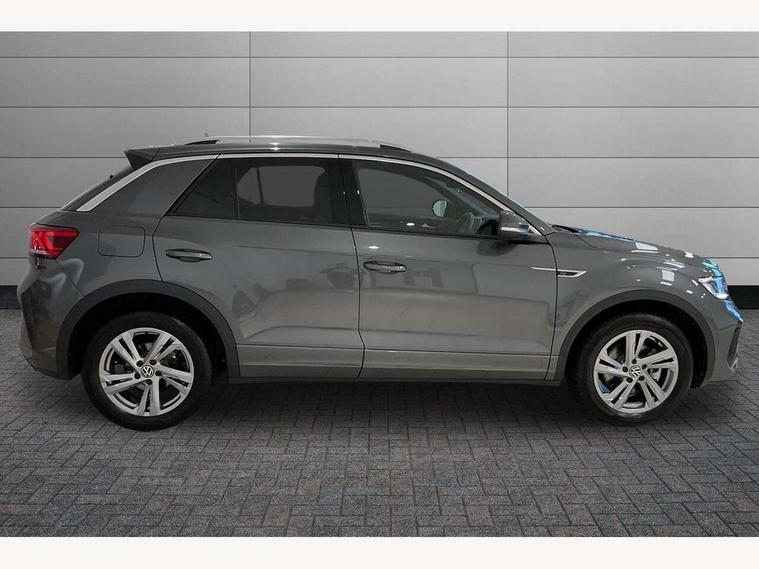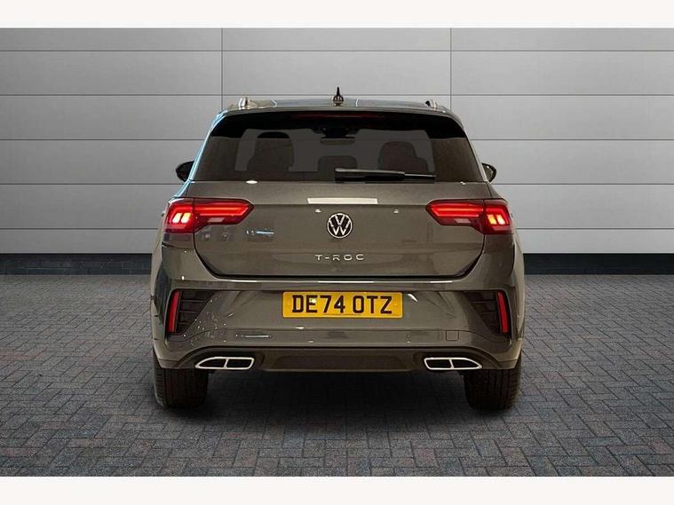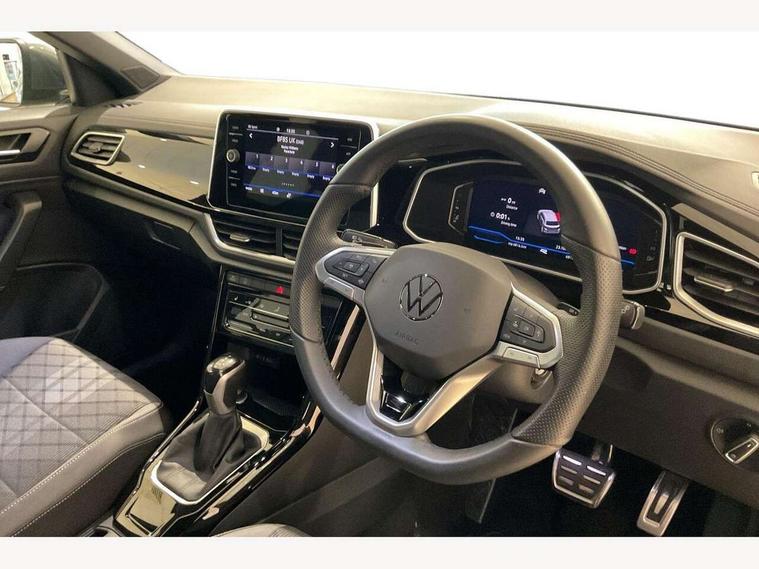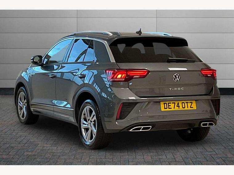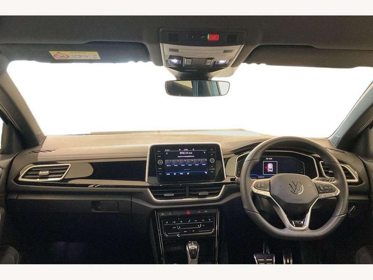 10.25" Digital cockpit pro, Advanced driver attention and drowsiness monitor, Dynamic road sign display, Emergency call service, Lane keeping system Lane Assist, Mobile phone interface, Modified key software - reduce switch off time for key status change to Long no motion, Online services, Park assist including front and rear parking sensors, Service interval indicator, Tailgate/trunk lid release from outside, Think blue trainer driver tips and journey analysis, Warning sound and light for front seatbelts unfastened, Wireless app connect, Battery regeneration during braking, Start/stop function with battery regeneration, DAB Digital radio, Diversity antenna for FM reception, Front and rear 6 speakers, Music playback - MP3, WMA and AAC files, Premium USB cable in choice of either Apple or Android smartphone compatibility, SD card slot, Simultaneous pairing of 2 compatible mobile devices, Title and cover art display, We Connect and We Connect Plus functionality, Auto dimming interior rear view mirror, Automatic hazard lights activation under emergency braking, Automatic headlight control with LED separate daytime running lights with coming/leaving home function, Body coloured exterior mirror housings and door handles, Electrically adjustable and heated door mirrors, Extended roof spoiler, Exterior mirrors aspherical on driver side, convex on front passenger side, External USB type C socket and charging sockets, Front windscreen wiper with intermittent wipe and 4 position delay, Heated rear window, LED 3rd brake light, LED rear combination lamps, LED rear number plate lights, Power windows with comfort operation and circuit breaker, Privacy glass for rear side windows and rear window, R-Line design body coloured bumpers, Rain sensor, Rear exhaust tailpipe, Rear fog light on one side and reversing lights on both sides, Rear side wing doors, Rear wash/wipe with intermittent wipe setting, Remote electrically foldable door mirrors, puddle lights and reverse activated passenger's door mirror, 12V power socket in centre console, 3 rear head restraints, 3 seat bench in 2nd row, 4 load lashing points in luggage compartment, Air care climatronic air conditoning system with active combination filter and 2-zone temperature control, Black roof lining, Chrome plated decorative trims, Chrome plated radiator grille inserts, air vent surrounds and light switch surrounds, Door and side trim panel with leatherette insert, Front + rear carpet mats, Front centre armrest, Front cupholders x 2, Front footwell illumination, Front reading light, Front scuff plates with R Line logo, Front seat back storage pockets, Glove compartment door with light, Instrument lighting, white adjustable panel illumination, Interior ambient lighting and surround lighting, Interior light delay, Isofix child seat preparation, Leather gearshift handle, Load-through provision with cup holder when folded down ('Unsplit rear seat bench, split folding backrest, with centre armrest), Luggage compartment lighting, Single front passenger seat, Stainless steel pedals, Storage compartment in left and right luggage area, Storage compartment in rear doors, Storage compartments in driver and front passenger doors, Sunvisors with illuminated vanity mirrors, Variable boot floor, height adjustable and removable, Driver assistance pack without proactive passenger protection - T-Roc, 3 point height adj front seatbelts + pretensioners, 3 point seatbelts in outer rear with ECE label, ABS, Child locks on rear doors, City emergency braking and pedestrian monitoring, Driver and front passenger airbag with front passenger airbag deactivation, Driver and front passenger safety-optimised head restraints, Drivers seatbelt reminder, Electronic parking brake, Electronic Stability Control (ESC) inc EDL (Electronic Differential Lock) and ASR (Traction Control), Front and rear passengers curtain airbag system including front side airbags, Hill start assist, Predictive pedestrian protection, Rear disc brakes, Two tone horn, Tyre pressure loss indicator, Volkswagen roadside assistance, Piano black decorative inserts in dashboard and front door trim panels, Trims for alloy wheels,