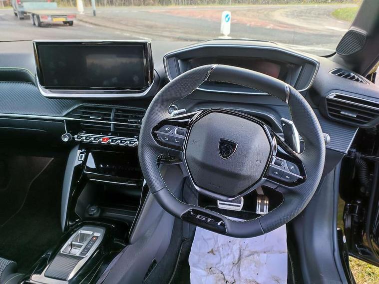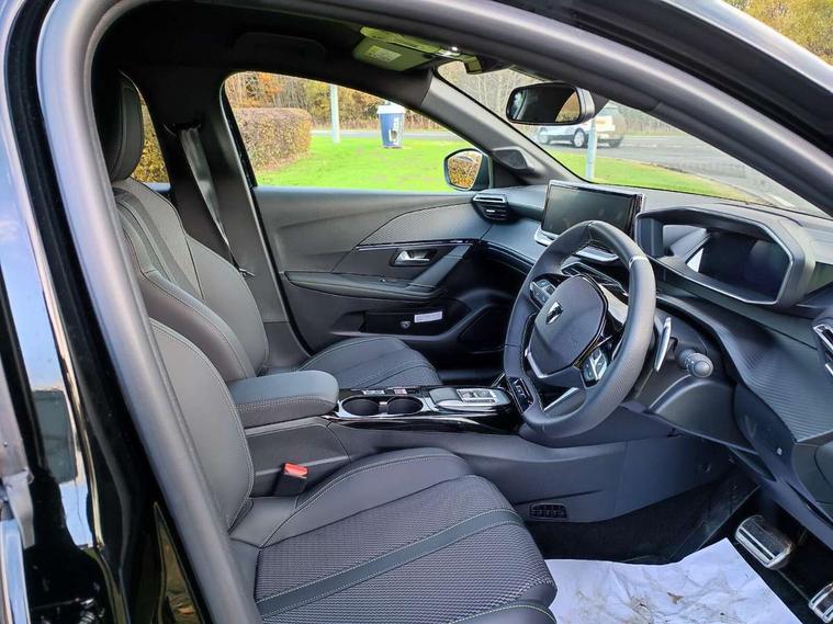 Bluetooth telephone facility, Drive mode select (Eco/Normal/Sport), Driver attention warning, Emergency call service, Exterior temperature indicator with ice warning, Front and rear parking sensors, Gear lever - e-Toggle, Multi function trip computer, PEUGEOT i-Cockpit with 10" configurable 3D colour head up instrument panel, PEUGEOT i-Cockpit with 10" HD capacitive colour touchscreen, PEUGEOT i-Cockpit with compact steering wheel, PEUGEOT SOS and assistance, Push button start, Smart phone docking station, Speed limit recognition and recommendation, Start/stop system, Wireless mirror screen with apple carplay and android auto, 6 Speakers - 2 tweeters and 4 door speakers, DAB Digital radio, USB-A socket (x1) and USB-C socket (x1) - rear, USB-C data and charge socket and USB-C charge socket in front, Voice recognition for radio, navigation and telephony features, 2 X Rear number plate lights, Acoustic windscreen, Antenna - Gloss Black 'fin' design, Automatic hazard light activation upon heavy brake application, Body coloured exterior door handles, Dark tinted rear side and tailgate windows, Diamond black rear spoiler (roof), Door sills protection with PEUGEOT signature lettering, Electric heated and power folding door mirrors with courtesy floor lighting, Electrochrome rear view mirror, Full LED headlights with automatic height adjustment and PEUGEOT smartbeam assist, Gloss black B pillar, Gloss black door mirror shells, Gloss black front bumper grille with body colour accents, Gloss black rear cluster connecting strip, Gloss black wheel arch extensions, Gloss black window weatherstrips, GT model designation badging on C pillar, Headlights left on audible warning, LED 3 claw horizontal rear lighting signature (with daylight function) and LED brake lights, indicators and reversing lights, LED daytime running lights with distinctive 3 claw signature, LED front indicators, LED third brake light, Model designation badges front and rear, One touch electric front/rear windows with pinch protection, Rear bumper with gloss black finish, Rear reversing lights, Rear side wing doors, Rear windscreen wiper triggered automatically in reverse gear, Tailgate with heated rear windscreen and wiper blade, Variable front intermittent wipers, 1/3 to 2/3 split folding rear seats, 12V socket, 3 seat bench in 2nd row, 8 Colour personalisable ambient lighting, Adamite green contrast stitching to front and rear armrest, front centre console, dashboard facia, Aluminium pedals, Automatic mono zone climate control air condition, Boot lighting, Driver and front passenger dynamic seats, Driver and front passenger seat manual adjustment in longitudinal and back rest angle, Driver and front passenger seat mechanical height adjustment, Driver and passenger sun visors, front footwells and central storage with LED lighting, Electric power steering with reach and rake adjustable steering column, Front centre armrest with storage compartment, Front LED interior light, front LED reading spotlights(x2), rear LED reading spotlight(x2), High centre console with 2 cup holders, Luxury carpet mats, Map pockets on the backs of the front seats, Multi function full grain perforated leather steering wheel with adamite green stitch detail and 'GT' emblem, Piano keys gloss black plated toggle switches to access main functions of the vehicle, Roof lining - Mistral black, Seatbelt unfastened on the move audible and visual alert for front and rear seats, Single front passenger seat, Visibility pack - 208, 2x Isofix child seat fitting on outer rear seats, 3 rear 3 point seatbelts, ABS (Anti-lock Braking System) with EBD (Electronic Brakeforce Distribution) and EBA (Emergency Braking Assistance), Active safety brake with night function/cyclists/pedestrians, Child locking functionality on rear doors, Driver and front passenger airbag with passenger airbag deactivation, Driver/front passenger side airbags, Electric parking brake, ESP with Hill Assist, Front and rear curtain airbags, Front and rear disc brakes, Front optimised safety headrests and 3 x rear retractable headrests with height adjustable, Front three point retractable seatbelts with force limiters, Remote plip(x2) for locking, unlocking, includes emergency key blade, Tyre pressure monitoring system, Acoustic vehicle alert system (AVAS), Alarm - Connected, volumetric , perimetric, anti lift sensor, Automatic door locking when moving off, Deadlock, Electronic code immobiliser, General safety regulation, Peugeot Open and Go System, Remote central locking, Carbon effect dashboard facia trim, 17" Yanaka two tone diamond cut alloy wheels wheels includes gloss black inserts, Space saver spare wheel,