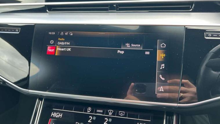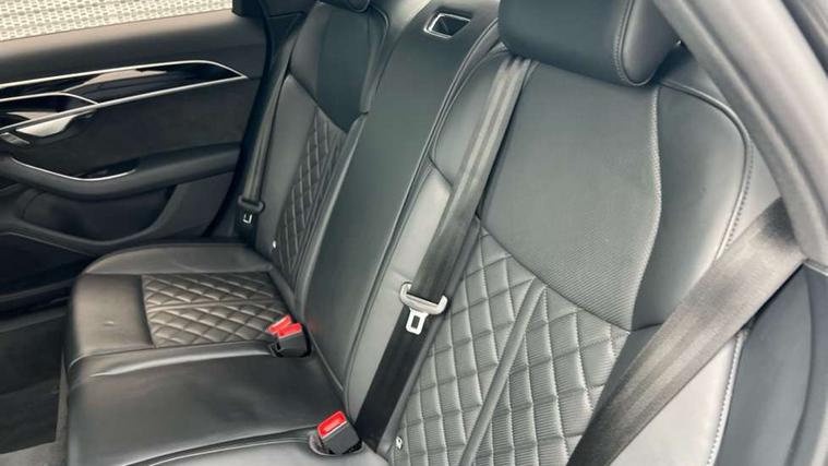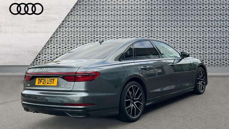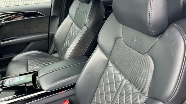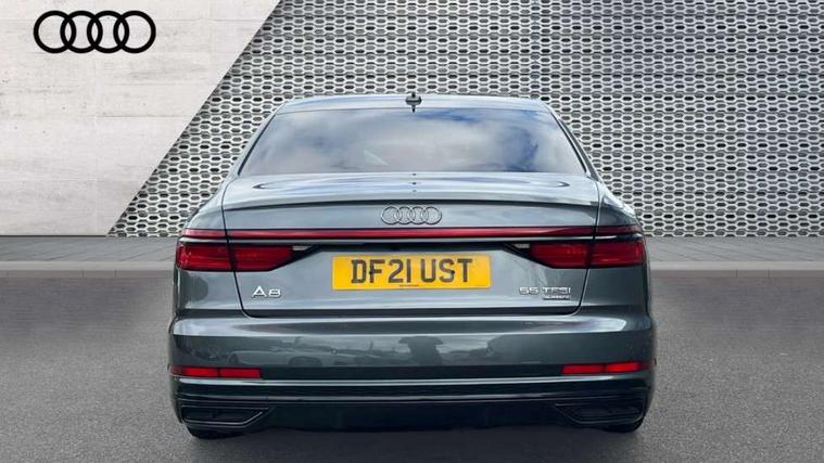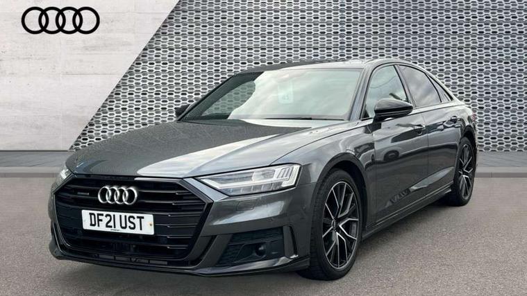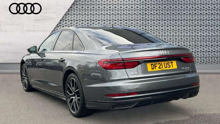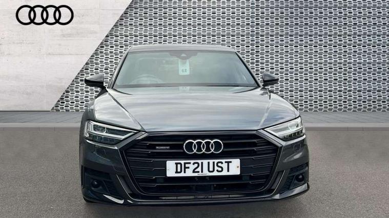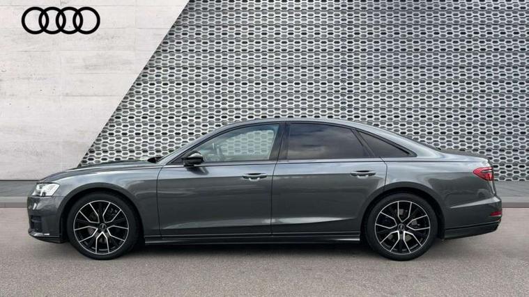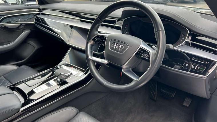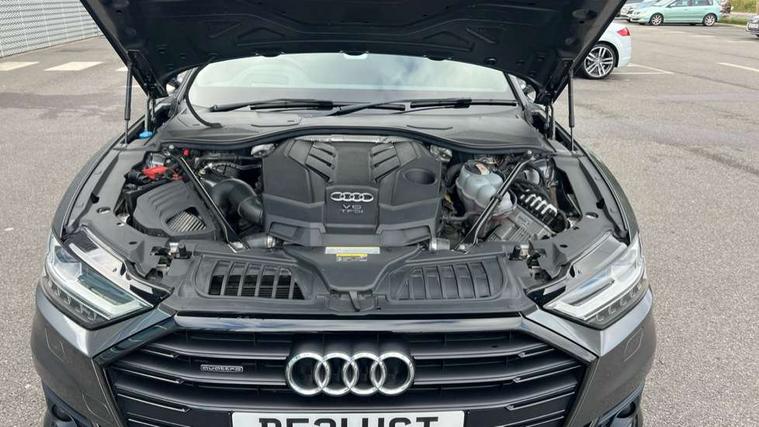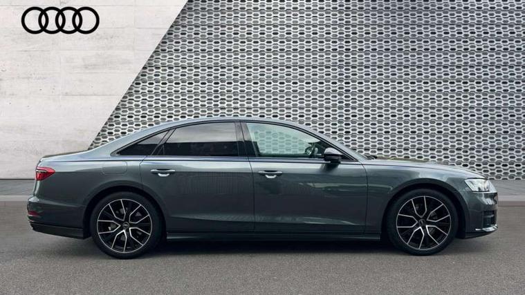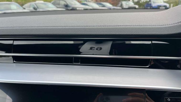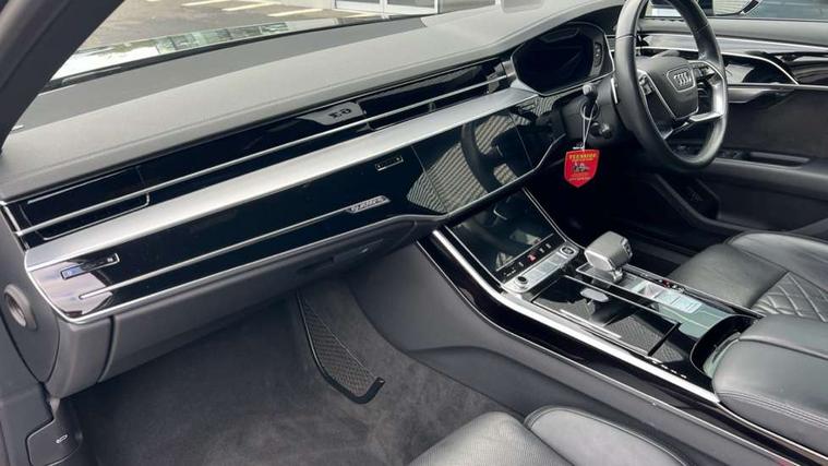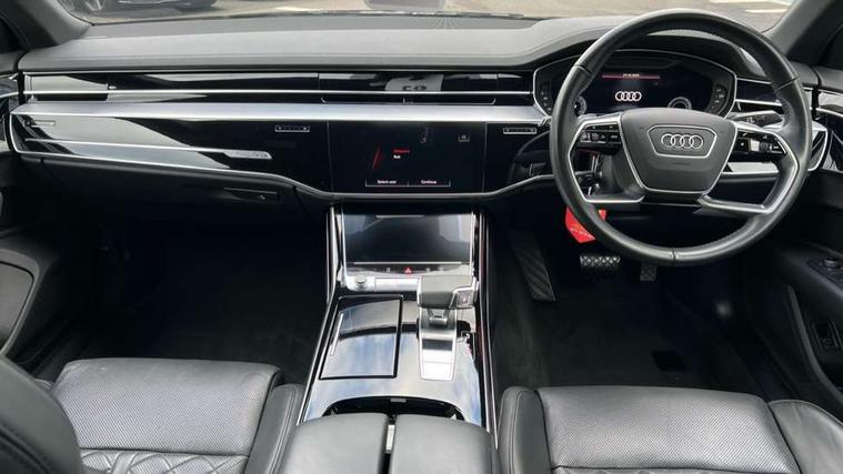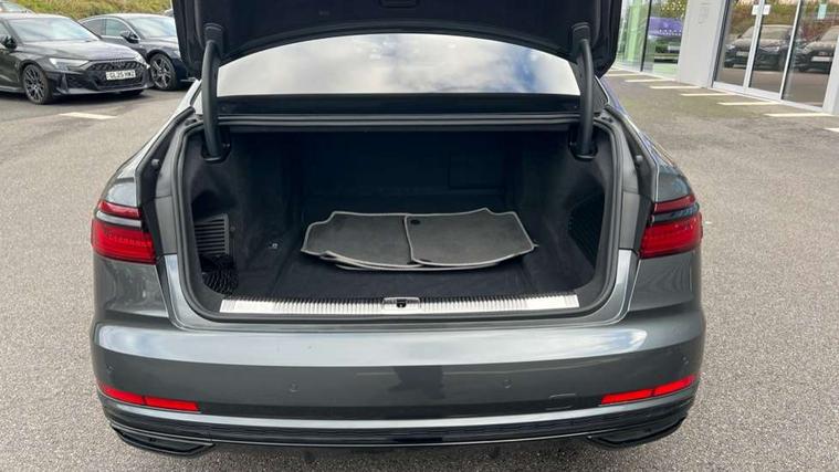 'Lights On' Reminder warning buzzer, Adaptive cruise control with speed limiter, Audi connect safety and service (e-call), Audi drive select, Audi parking system plus with front and rear sensors, Audi phone box with wireless charging, Audi virtual cockpit, Audi wireless smartphone interface, Camera based traffic sign recognition, Colour driver's information system display, Electro - mechanical power assisted steering, Head up Display, Lane departure warning including emergency assist, MMI navigation plus with MMI touch + Twin touch screens with haptic feedback, Operating buttons in black, glass look with haptic feedback including extended aluminium look, Power door closure, Power operated tailgate, Rear view camera, Remote fuel filler release, Service interval indicator, 48V Mild hybrid technology, 8 speed transmission with hill hold assist, Adaptive air suspension, Quattro all wheel drive with self locking centre differential, Audi music interface, Audi sound system, DAB digital radio module, DVD System, Premium MMI radio plus, USB connection, Acoustic double glazing, Audi space frame, Auto dimming rear view mirror, Automatic headlight control system, Body colour bumpers, Body colour door handles, Body colour side protection with aluminium trim strips, Electric front windows, Electric rear windows with isolation switch, Electrically adjustable heated folding + automatically dimming exterior mirrors with memory function and integrated LED indicators, HD matrix healights with LED rear lights + dynamic rear indicators, Heat insulating darkened glass in side and rear windows, Heated rear window, Heated windscreen washer jets, High beam assist, LED brake lights, LED daytime running lights, Privacy glass, Reverse activated kerb-view adjustment on passenger's door mirror, Side skirts, Sports bumpers, 2 zone automatic air conditioning, 3 seat rear bench with centre armrest in 2nd row, 4 way electric lumbar support for driver and front passenger, Centre console with cupholders, Climate controlled seats, Comfort centre armrest, Door armrest with storage, Door pockets with bottle holder, Driver and front passenger side sunvisors with illuminated vanity mirrors, Dust/pollen filters, Electric adj front seatbelt height + memory, Electric front seats with memory function, Front/rear floor mats, Glove compartment cooling, Heated front seats, Height/reach electric steering column with easy exit function, Isofix child seat mounting points on outer rear seats, Leather gearknob, Passenger footwell storage net, Reading lights, Rear headrests, Roof mounted sunglasses holder, Valcona leather upholstery with front sports seats in diamond quilted with S embossed logo, Black exterior styling pack - A8, Connect package plus - A8, High gloss styling pack - A8, LED ambient interior lighting pack - A8, 3 point seatbelts on all rear seats, ABS/EBD, Active front headrest system, ASR traction control, Audi pre sense basic, Audi pre sense front, Driver/Front Passenger airbags, EDL traction control, Electromechanical parking brake, ESP, Extended pedestrian protection measures, Front and rear side airbags with head airbag system, Front brake discs, callipers painted black, Front passenger airbag deactivation, Rear brake discs, callipers painted black, Rear child proof door locks, Seatbelt reminder + electric contact in buckle + advanced safety equipment, Tyre pressure warning light, Warning triangle and first aid kit, Advanced key, Anti theft alarm tow away protection, Anti-theft wheel bolts and wheel loosening detection, Locking wheel bolts, Remote central locking, Dark matt brushed aluminium lower inlays, Piano black finish upper inlays,