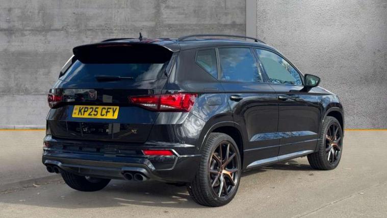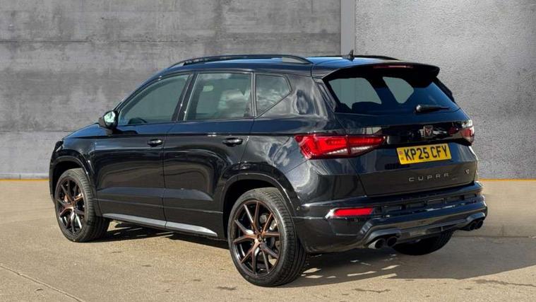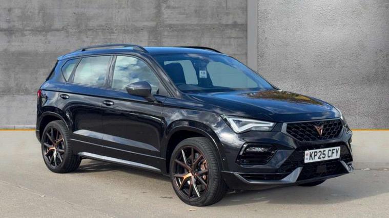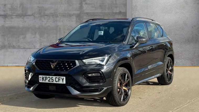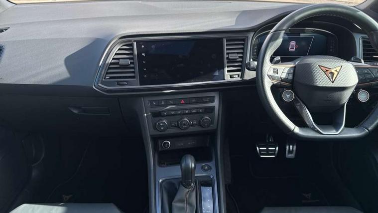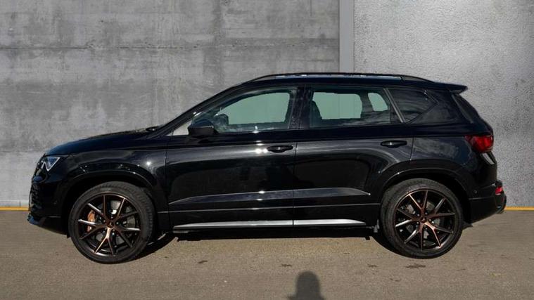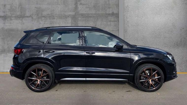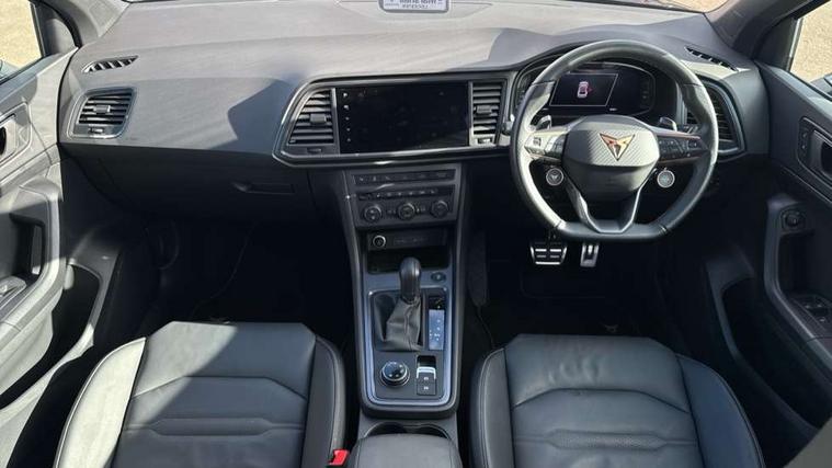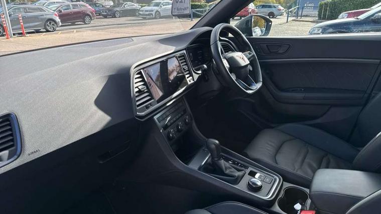 CUPRA drive profile - Normal, sport, CUPRA and individual modes and Hydraulic damper control (DCC), Digital cockpit, E-call, Electric tailgate with virtual pedal, Front and rear view camera, Outside temperature gauge, Progressive power assisted steering, Self parking functionality (includes front and rear parking sensors), Top view camera, Trip computer, wired and wireless full link smartphone integration, Wireless phone charger, CUPRA sport suspension, Steering wheel mounted audio/phone controls, Body colour bumpers with dark aluminium diffusor, Body coloured wheel arch surrounds, Dark tinted rear windows, Daytime running lights, Door mirrors with welcome CUPRA light silhouette, Dynamic headlight range control with self adjusting whilst driving, Electric adjustable/heated/folding door mirrors, Front and rear electric windows, Front grille frame in chrome, Full LED headlamps with lens and LED front fog lamps with cornering function, Gloss black door mirrors, Gloss black roof rails, Gloss black side mouldings, Gloss black side window trim, Illuminated aluminium front door sill, LED rear tail lights with dynamic indicators, Rear fog lights, Rear side wing doors, Rear spoiler, Rear wash/wipe, Specific CUPRA design front bumper, Third brake light, Visible twin black exhaust pipes in both sides, 12v socket in front, 3 seat bench in 2nd row, 60/40 split folding rear seat, Aluminium pedals, Black roof lining, Cupra steering wheel emblem, CUPRA supersports steering wheel including satellite buttons, Dual zone climate control, Electric driver seat with memory function, Front and rear head restraints, Front centre armrest, Front seat back storage pockets, Heated front seats, Heated steering wheel, Height adjustable driver and passenger seat with lumbar adjustment, ISOFIX points in outer rear seats with top tether anchorage points, Leather sport bucket seats, Multicoloured ambient lighting with LED interior illumination, Pedal cluster, Rear armrest and easy back seat release mechanism from boot, Single front passenger seat, Storage compartment in roof console for sunglass, Storage compartment under driver's seat, Convenience pack - Ateca, Interior lighting pack - Ateca, Navigation system plus pack with DAB - Ateca, Safe and driving pack with High beam control - Ateca, 3x3 point rear seatbelts, ABS, Traction control system (TCS), Electronic stability control (ESC) and Electronic differential lock system (XDS), Airbags - Driver and front passenger airbag with deactivation, front side, two curtain and driver's knee airbags, Attention and drowsiness assist, Black brake callipers with CUPRA logo, Electric parking brake with auto hold function, Front and rear seatbelt reminder, Hill hold control, Manual rear child locks, Performance brakes with front brembo calipers, Single tone horn, Tiredness recognition system, Tyre pressure monitoring system, Tyre pressure warning light, Alarm, Keyless entry, Locking wheel bolts, 19" Copper alloy wheels, Tyre repair kit,