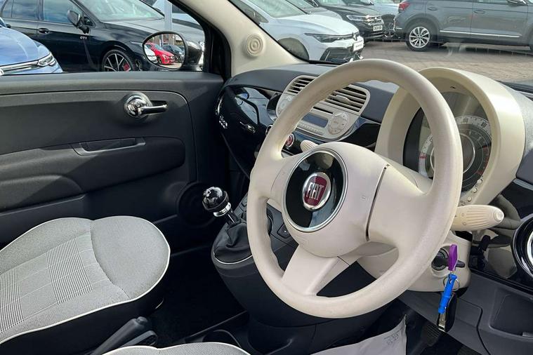 Dualdrive PAS, External temperature gauge, MP3 compatible radio/single CD player, Body colour bumpers, Chrome door handles, Electric adjustable heated door mirrors, Electric front windows, Heat insulated glass, Heated rear windows with wash wipe, 1 passenger grab handle, Air conditioning, Auxilliary 12V power socket, Front headrests, Front passenger seat memory, Height adjustable drivers seat, Height adjustable steering wheel, Isofix child seat preparation, Poolball design gear knob matching to exterior colour, Specific key cover, Split folding rear seat with headrests, Chrome pack - 500, ABS/EBD, Driver and passenger airbags, Drivers knee airbag, ESP + ASR/MSR + HBA + Hill holder, Side airbags, Tyre pressure monitoring system, Window airbags, Locking fuel filler cap, Remote central locking, Space saver spare wheel,