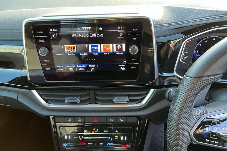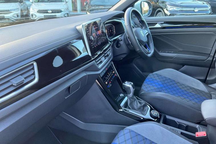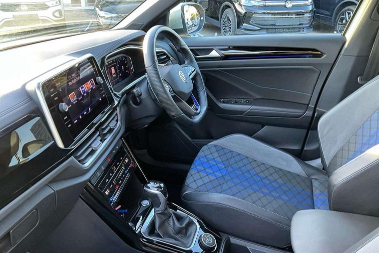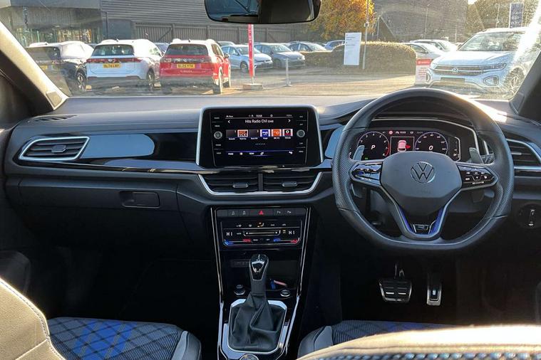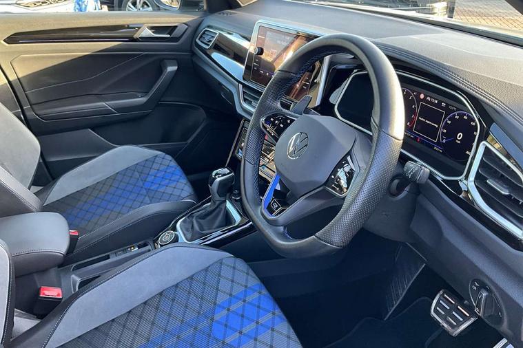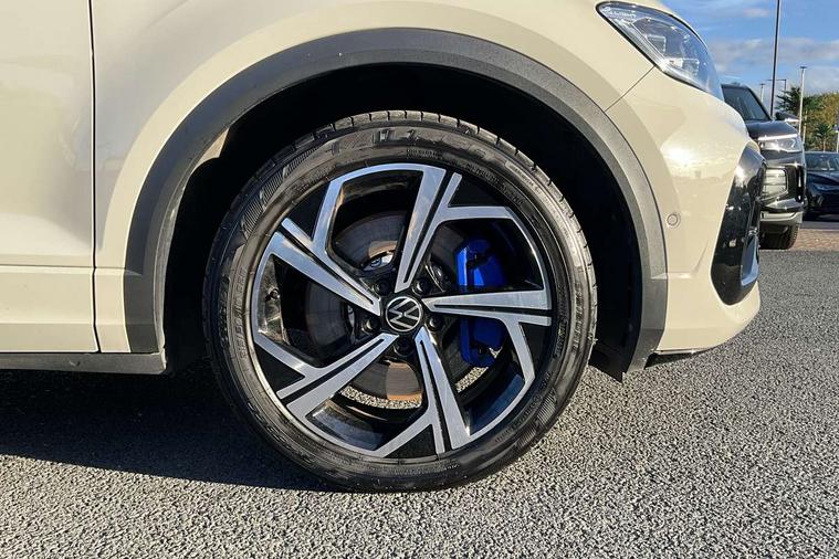 10.25" Digital cockpit pro, Bluetooth mobile phone interface, Driver alert system with fatigue detection, Driver tips and journey analysis, Emergency call service, Lane keeping system Lane Assist, Modified key software - reduce switch off time for key status change to Long no motion, Online services, Park assist including front and rear parking sensors, Service interval indicator, Tailgate/trunk lid release from outside, Think blue trainer driver tips and journey analysis, Warning sound and light for front seatbelts unfastened, Wireless app connect, Battery regeneration during braking, Four wheel drive, Start/stop function with battery regeneration, Diversity antenna for FM reception, Front and rear 6 speakers, Music playback - MP3, WMA and AAC files, Premium USB cable in choice of either Apple or Android smartphone compatibility, SD card slot, Simultaneous pairing of 2 compatible mobile devices, Title and cover art display, We Connect and We Connect Plus functionality, 3rd brake light, Auto dimming interior rear view mirror, Automatic hazard lights activation under emergency braking, Automatic headlight control with LED separate daytime running lights with coming/leaving home function, Extended roof spoiler, Exterior mirrors aspherical on driver side, convex on front passenger side, External USB type C socket and charging sockets, Front windscreen wiper with intermittent wipe and 4 position delay, Heated rear window, LED Plus headlamps, LED rear combination lamps, LED rear number plate lights, LED tail lamp rear comination lamps, Power windows with comfort operation and circuit breaker, Privacy glass for rear side windows and rear window, R-Line design body coloured bumpers, Rain sensor, Rear fog light on one side and reversing lights on both sides, Rear side wing doors, Rear wash/wipe with intermittent wipe setting, Remote electrically foldable door mirrors, puddle lights and reverse activated passenger's door mirror, 12V power socket in centre console, 3 rear head restraints, 3 seat bench in 2nd row, 4 load lashing points in luggage compartment, Air care climatronic air conditoning system with active combination filter and 2-zone temperature control, Ambient lighting - 10 colour (blue), Black roof lining, Chrome plated radiator grille inserts, air vent surrounds and light switch surrounds, Door and side trim panel with leatherette insert, Drawer under drivers seat, Driver/front passenger seat height adjustment, Front + rear carpet mats, Front centre armrest, Front cupholders x 2, Front footwell illumination, Front scuff plates with R logo in door apertures, Front sport seats, Heated leather wrapped multi function sports steering wheel with tiptronic, Instrument lighting, white adjustable panel illumination, Interior light delay, Isofix child seat preparation, Leather gearshift handle, LED interior light with switch off delay/dimmer and 2 front/rear LED reading lights, Load-through provision with cup holder when folded down ('Unsplit rear seat bench, split folding backrest, with centre armrest), Luggage compartment lighting, Lumbar support for driver's and front passengers seat, Non-folding front passenger seat backrest, R-logo stitching in floor mats, Single front passenger seat, Stainless steel pedals, Storage compartment in left and right luggage area, Storage compartment in rear doors, Storage compartments in driver and front passenger doors, Sunvisors with illuminated vanity mirrors, Variable boot floor, height adjustable and removable, Driver assistance pack without proactive passenger protection - T-Roc, R styling pack - T-Roc, 3 point height adj front seatbelts + pretensioners, 3 point seatbelts in outer rear with ECE label, ABS, Child locks on rear doors, Driver and front passenger airbag with front passenger airbag deactivation, Driver and front passenger safety-optimised head restraints, Drivers seatbelt reminder, Electronic parking brake, Electronic Stability Control (ESC) inc EDL (Electronic Differential Lock) and ASR (Traction Control), Front and rear passengers curtain airbag system including front side airbags, Front assist with city emergency braking and pedestrian monitoring, Front seat side impact airbags, Hill descent control, Hill start assist, Predictive pedestrian protection, Rear disc brakes, Single tone horn, Tyre pressure loss indicator, Volkswagen roadside assistance, Alarm with interior protection, Anti-theft alarm system with interior monitoring, backup horn, and towing protection, Keyless entry and start, Remote central locking with SAFELOCK, radio remote control with 2 remote control folding keys, Trims for alloy wheels,