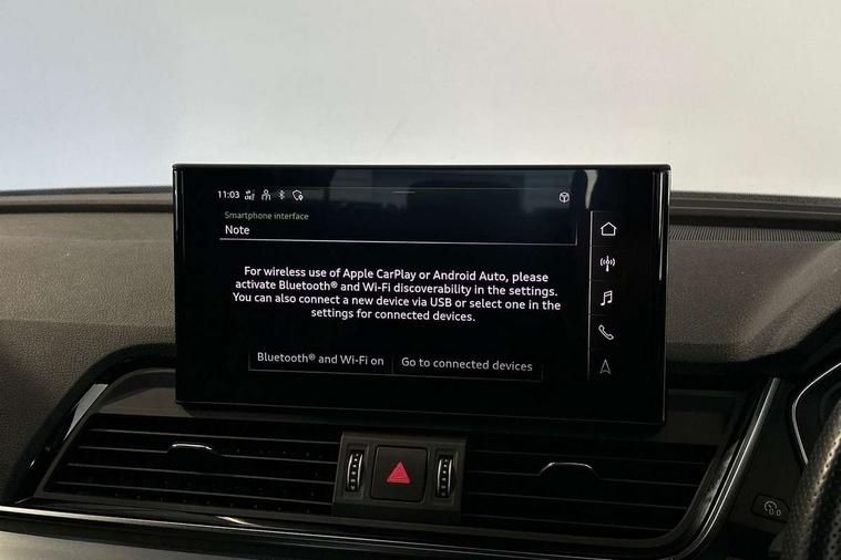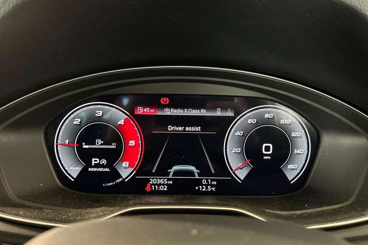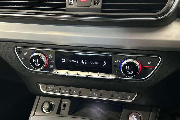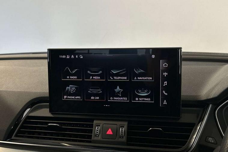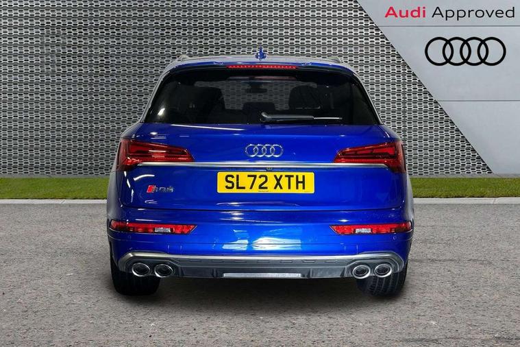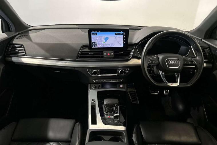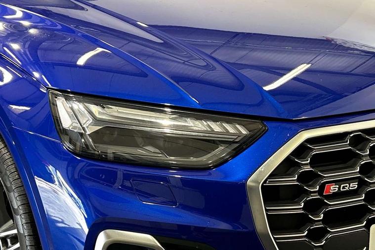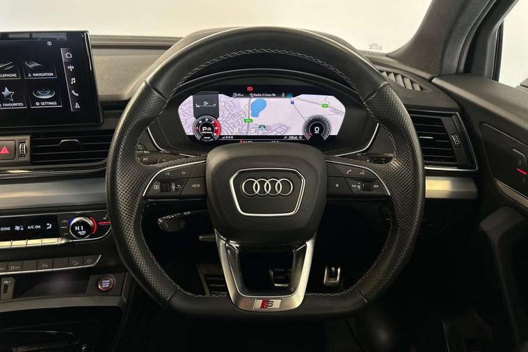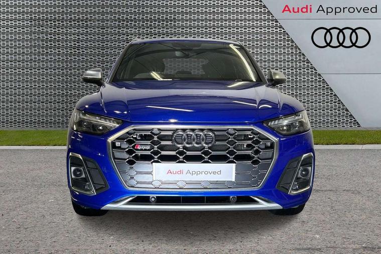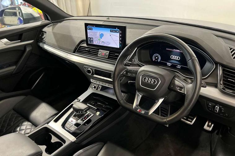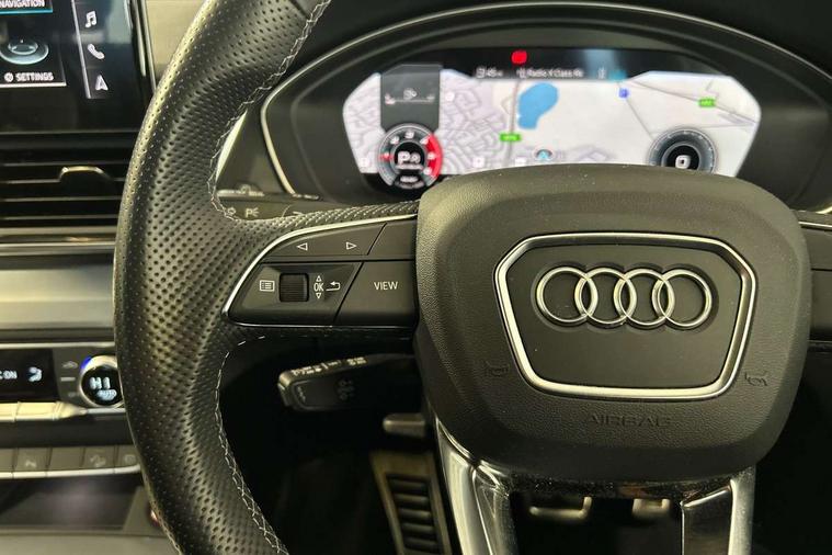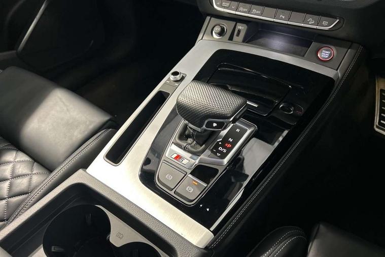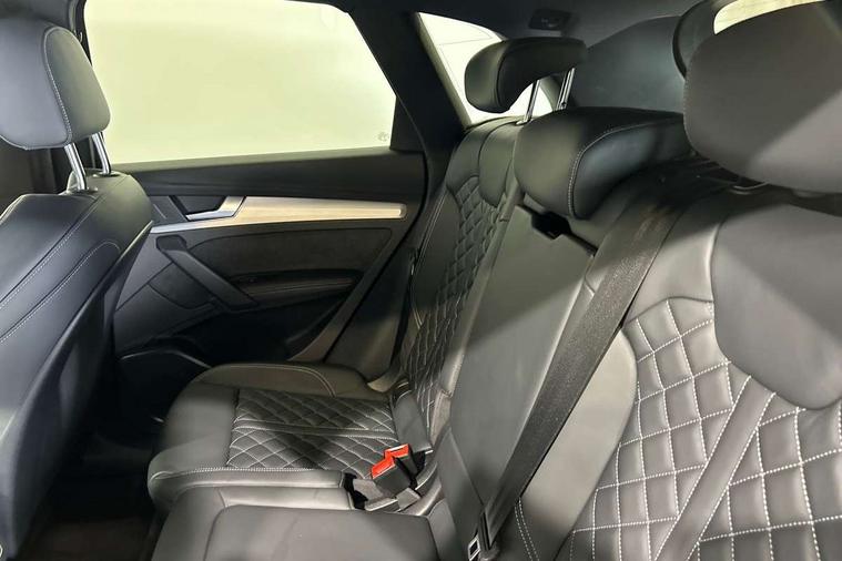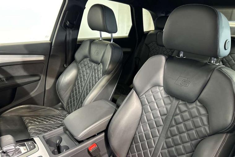 Audi connect safety and service (e-call), Audi connect with Amazon Alexa Integration, Audi drive select, Audi virtual cockpit plus with 12.3" screen and three different layout designs, Audi wireless smartphone interface, Automatic start-stop system with coasting functionality and efficiency programme, Bluetooth interface, Electro - mechanical power assisted steering, MMI navigation plus with 10.1" touch screen, Power tailgate, Reversing camera, Service interval indicator, Voice control system with Audi hotword activation "Hey Audi", 70 litre fuel tank and 24 litre AdBlue tank, Diesel particulate filter, Quattro on demand, S sports suspension, 2 x USB charging port with aux input socket, Audi sound system, DAB Digital radio, Acoustic windscreen, Aluminium roof rails, Audi beam, Audi beam with Audi rings logo, Auto dimming door mirrors, Auto dimming rear view mirror, Automatic headlight adjustment, Automatic headlights and windscreen wipers, Body colour bumpers, Body colour rear diffuser with matt aluminium silver surrounds, Body colour underbody protection, Chrome plated exhaust trims, Daytime running lights, Door sills in Selenite silver, Electric adjustable/heated/folding door mirrors, Front air inlet surrounds in titanium black, Front and rear electric windows, Front radiator grille in honeycomb design, Headlight washers, High gloss black B pillar trims and triangular rear door trim, High level LED brake light, Lower bumpers painted in contrast Manhattan grey, Rear chrome trim strip below lights, Rear privacy glass and rear side windows, Rear side wing doors, Rear wiper, Roof bars, S front and rear bumpers, S Line rear spoiler, S Line side skirts, S specific rear diffuser, 3 rear headrests, 4 way electric lumbar support for driver and front passenger, 40:20:40 split folding 3 rear bench seat in 2nd row with rear centre armrest, Black cloth headlining, Comfort front centre armrest, Contrast stitching on seats, steering wheel and gear lever gaiter, Deluxe 3 zone electronic climate control, Fine Nappa leather upholstery with diamond pattern contrast stitching + front sport seats with S embossed logo, Front/rear floor mats, Fully electrically adjustable seats, Gear lever in black leather, Heated front seats, Height adjustable front head restraints, Height/reach adjustable steering column, Illuminated door sill trims with S logo, ISOFIX child seat mounting and top tether, Luggage compartment cover, Massage function for front seats, Rear seat bench plus, Removable luggage compartment floor, Single front passenger seat, Stainless steel pedals, Sunvisors with vanity mirrors, Extended interior upholstery pack - Q5, High gloss pack - Q5, LED interior light pack - Q5, 3 point seatbelts on all seats, 6 airbags - Driver, front passenger, curtain and side airbags, Electrically operated child locks on rear doors, Electromechanical parking brake, Electronic stabilisation control including ABS, ASR and EDL, Front passenger airbag deactivation, Hill descent control, Hill hold assist, Multi collision brake assist, Pop-up bonnet for pedestrian protection, Pre sense city, Seat belt force limiter, Seatbelt monitoring, Tyre pressure warning, Warning triangle and first aid kit, Anti theft alarm, Anti-theft wheel bolts, Keyless Go access/ignition system, Remote central locking,