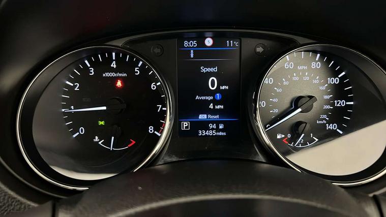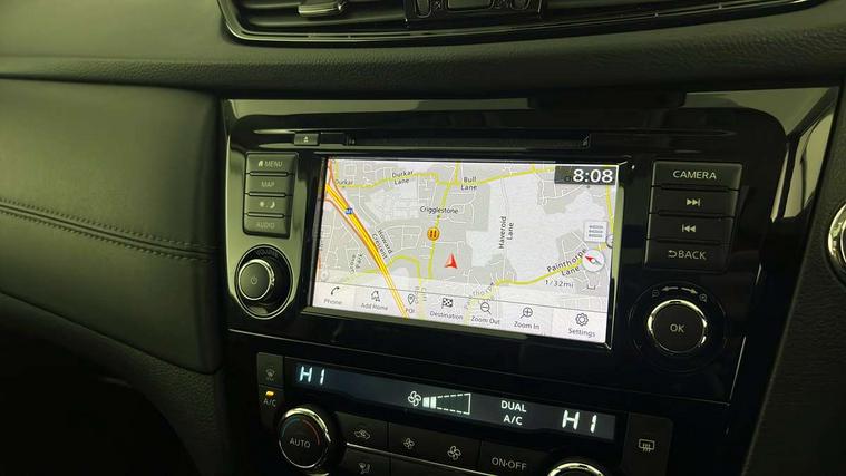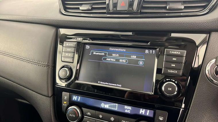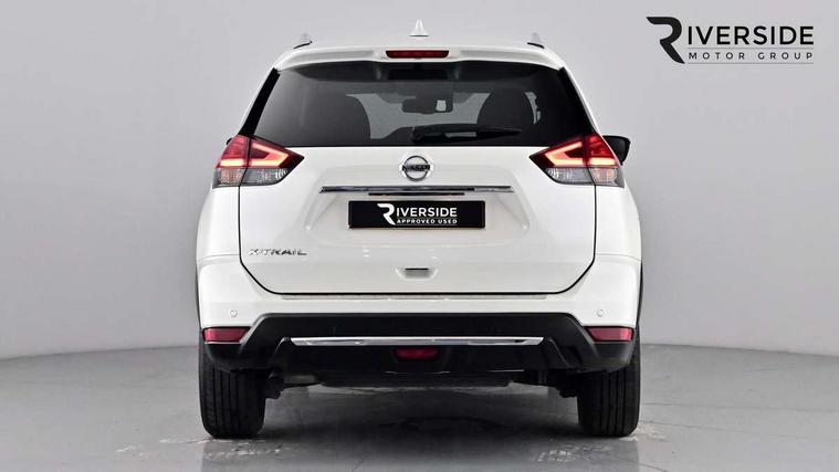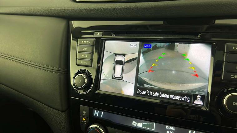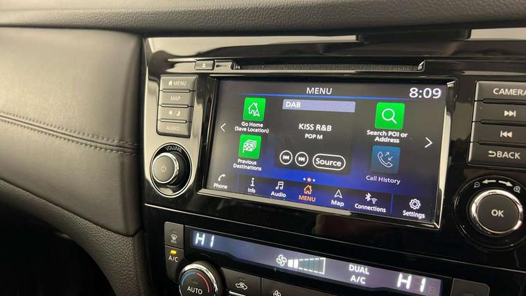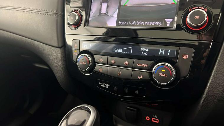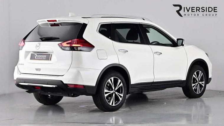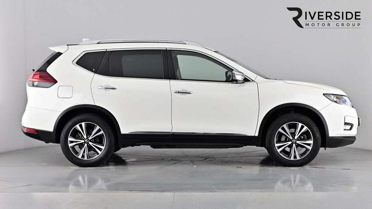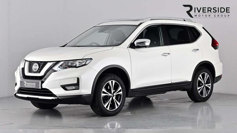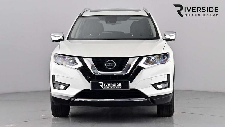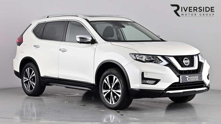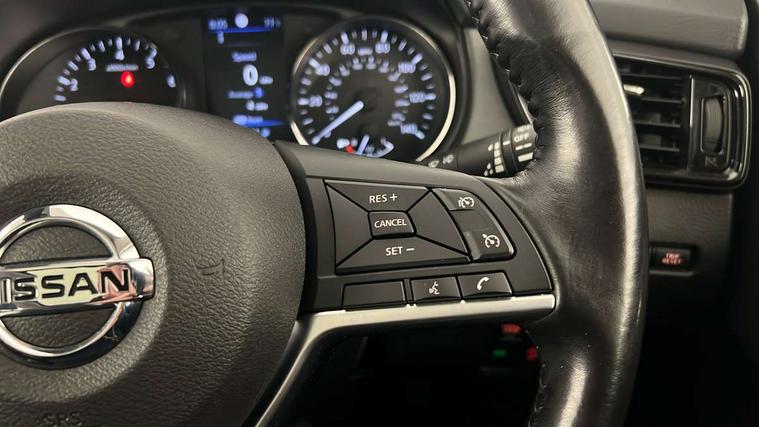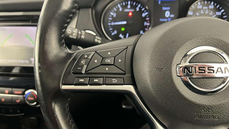 Bluetooth with microphone, Cruise control + speed limiter, Driver attention alert system, Front and rear parking sensors, High definition full colour TFT screen combimeter, Intelligent around view monitor, Lane departure warning system, New NissanConnect 7" touchscreen navigation and entertainment system, One touch automatic opening power tailgate, PAS, Push button start, Smartphone integration with Apple CarPlay and Android auto, Traffic sign recognition, Trip computer, Nissan chassis control (intelligent ride control, intelligent trace control, intelligent engine brake), DAB/AM/FM/CD Audio system with 6 speakers, Rear USB port, Steering wheel mounted audio controls, USB/aux input socket, Anti dazzle rear view mirror, Automatic headlights, Body colour door mirrors, Chrome door handles, Chrome window surround, Electric folding door mirrors, Electric heated mirrors with side turn signal light, Front and rear electric windows, Front fog lights, Halogen headlights, High beam assist, LED daytime running lights, Panoramic sunroof with one touch shade, Rain sensing windscreen wipers, Rear privacy glass, Shark fin antenna, 3 rear headrests, 60:40 rear split folding, reclining and sliding bench, Centre console storage box/armrest, Cloth upholstery, Dual zone automatic air conditioning with pollen filter, Front and rear door pockets with bottle holders, Front row ventilated cupholders, Front/rear armrests, Height adjustable front headrests, Individual rear reading lights, ISOFIX childseat anchorage points (rear), Leather D shaped steering wheel, Leather steering wheel and gear knob, Luggage board system, Manually adjustable driver's seat (side, recline, lifter, lumbar), Manually adjustable passenger (slide recline + lifter), Tilt/telescopic adjustable steering wheel, 3 point seatbelts on all seats, 6 airbags - Driver, front passenger, curtain and side airbags, ABS, Child locks on rear doors, EBD + Brake Assist, Electric parking brake, ESP + traction control, Intelligent emergency braking with pedestrian recognition, Seatbelt warning, Tyre pressure monitoring system, Engine immobiliser, Intelligent Key, Remote control door locking with superlocking, Thatcham alarm, 18" Alloy wheels, Spare wheel,