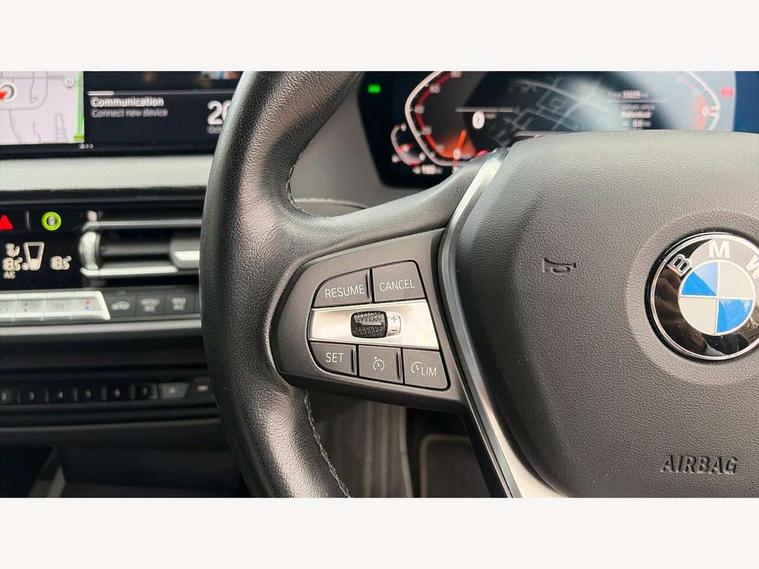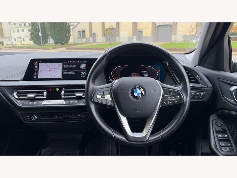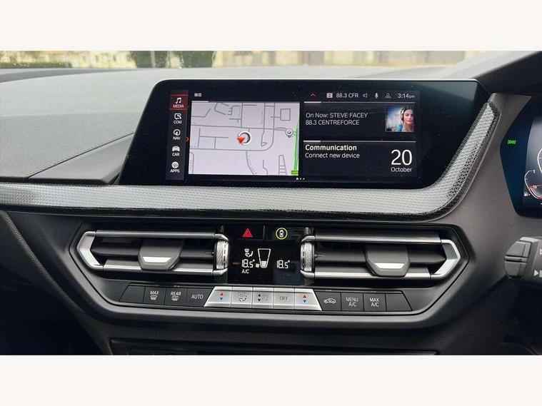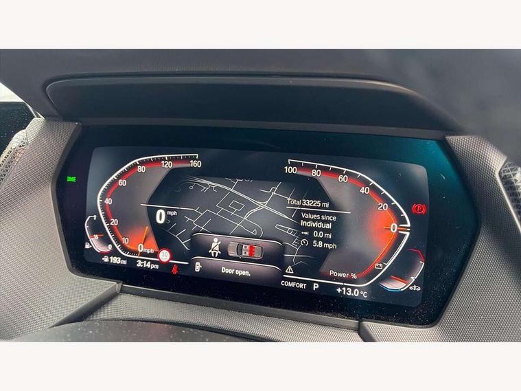 Active guard plus, Attentiveness assist, BMW ConnectedDrive online services, BMW Teleservices, Check Control warning system for monitoring of lights and door/luggage compartment open warning, Cruise control with brake assist, Eco pro mode, Electric power steering with Servotronic steering optimised at all speed ranges, Front axle single joint with specific axle kinematics to minimise drive influences on steering + provide increased rigidity agile driving behaviour, Integrated owners handbook, Lane departure warning system, Oil sensor for level and grade, On board computer, Optimum shift indicator, Personal Profile, Pull away assistant, Rigidly mounted rear subframe - Multi link construction with separate spring / damper configuration and excellent driving characteristics, Speed limit Info including no-overtaking indicator, Speed limiter, Aluminium lightweight construction, Anti roll bar front and rear, Balancer shaft, Double VANOS twin scroll turbocharging system, Drive Performance Control, Electronic differential lock, High precision injection, Petrol Particulate Filter, Suspension with twin tube gas filled shock absorbers with degressive characteristic curve, VALVETRONIC engine management, DAB Digital radio, Auto dimming rear view mirror, Automatic windscreen wipers and automatic headlight, Body colour door handles, Body colour mirror caps, Body colour roof trims, Chrome exhaust twin tailpipes round 90mm in left, Direction indicator side lights in exterior mirrors, Fading support, Follow me home headlights, Front and rear bumper system with replaceable deformation elements, Front and rear electric windows with open and close fingertip control, anti trap facility and comfort closing, Front bumper in Body colour with exclusive Sport air inlets finished in High gloss Black, Front door sill finishers in black plastic with M designation in metallic look, Green tinted heat protection glazing, Heated, electrically adjustable exterior mirror aspheric on driver side, convex on passenger side, High gloss shadowline window frame, Recess cover mirror frames and B/C pillar embelisher trim, High level third brake light, Integrated front windscreen with washer jets, Kidney grille in chrome frame with highgloss black struts, LED daytime running lights, LED eyebrow turn indicators, LED front fog lights, LED Headlights, Lightweight engineering, Manual headlight beam throw control, Manual headlight levelling, Matt black air guide grilles, Matt black wheel arch trim, Model designation on electric bootlid, Nearside reverse light in rear light cluster, Preparation for high beam assistant, Rear bumper in Body colour with exclusive Sport design elements finished in High gloss Black, Rear fog lights, Rear side wing doors, Rear window wiper, Shark fin antenna, Trailer stabilisation logic, Visible VIN plate, Welcome lighting, 12V power socket in front centre console with blanking plug, 3 rear seat head restraints, 3 seat bench in 2nd row, 3 spoke sports leather steering wheel in black leather with black stitching and decorative finisher in pearl chrome, Black boot net with lashing eyes, Cargo function on 2nd seat row, Child seat ISOFIX attachment for two outer rear seats and front passenger seat with anchorage points, Conditioned based service, Folding rear clothes hook, Four grab handles integrated in roof lining, Front and rear door pockets with bottle holders, Front and rear side armrest integrated into door trim, Front armrest, Front sports seats, Glove compartment, Height adjustable front head restraints, Luggage compartment for bag hooks on left and right, foldable luggage compartment liner and four lashing eyelets, Manual adjust steering wheel, Multi-function controls for steering wheel, Single front passenger seat, Storage compartment in centre console, Sun visors with vanity mirrors and insert tab, Two front centre console cupholders, Two zone automatic air conditioning, Velour floor mats, BMW live cockpit professional pack- 1 Series, Connected pack professional - 1 Series, Interior lights pack - 1 Series, 2 tone horn, 3 point seatbelts on all seats, front pyrotechnic belt tensioners, stopper and belt force limiters, rear coded belt buckles, Airbags - Front driver/passenger, front and rear curtain head protection, front side, manual deactivation of front passenger airbag, Anti lock braking system (ABS) with brake assist, BMW emergency call, Brake drying, Braking readiness, Child proof locking system in rear door, City braking function, Comfort modes, Cornering brake control, Crash sensor activating central locking release, hazard warning lights, fuel cut off, interior lighting + activation of safety battery terminal clamp, Driver and front passenger seat belt security check, Dynamic stability control + (DSC+), Dynamic Traction Control - DTC, Electrically operated hand brake including automatic hold function, Front and rear disc brakes, Seatbelt warning, Side impact protection, Tyre pressure monitoring system, Warning triangle and first aid kit, Central locking switch for all doors, fuel filler cap and luggage compartment, Deadlocking function system to all doors, Drive away locking system on all doors and luggage compartment with de-activated in iDrive settings, Locking wheel bolts, Remote central locking with two Integrate key, one button for opening and closing all lock, open and close window, button for open luggage compartment, Start/stop button illuminated in centre console with keyless engine start and auto start stop deactivation button, Thatcham Cat.1 alarm and immobiliser, Wheel slip limitation close to the actuator (ARB), Contrast stitching on instrument panel, Illuminated Berlin interior trim in front, Electrically powered 12V compressor, Reduced rolling resistance tyres,