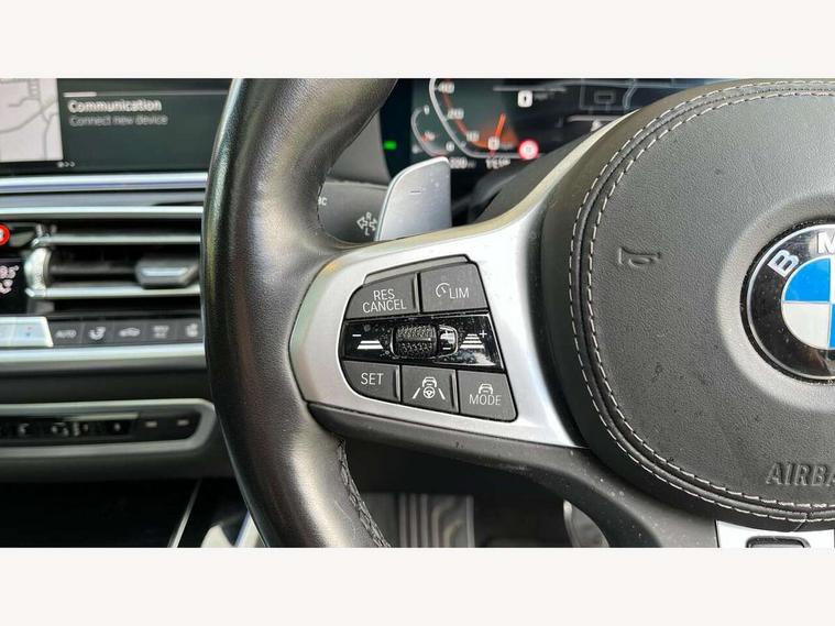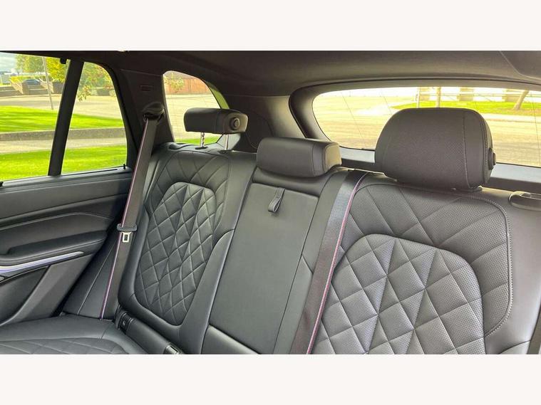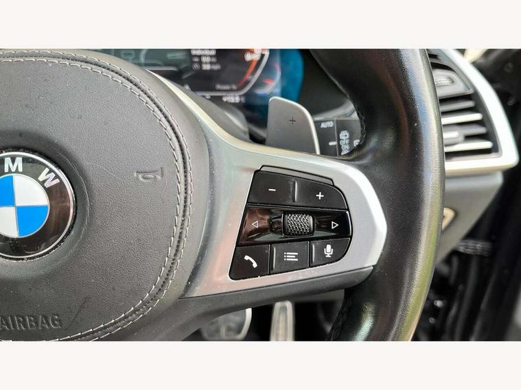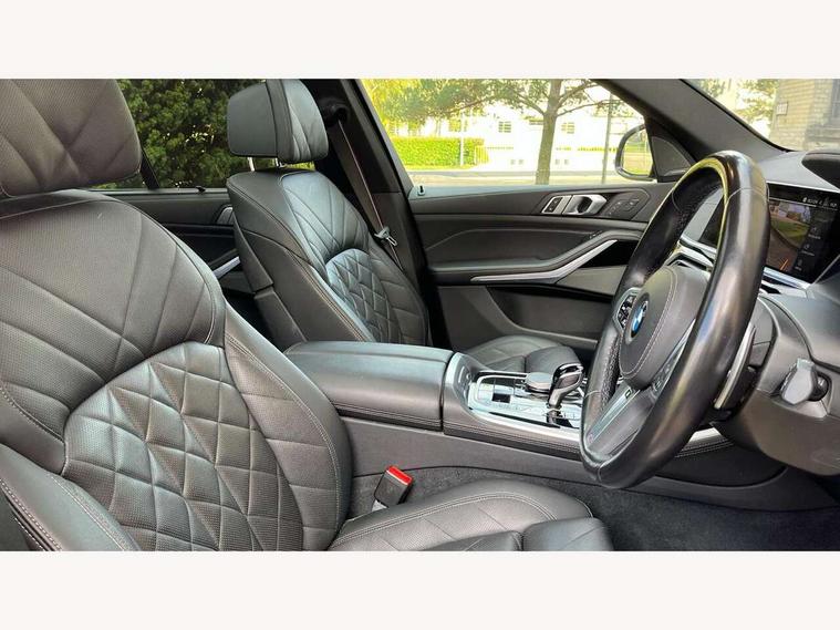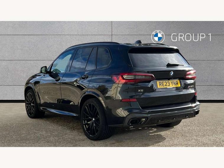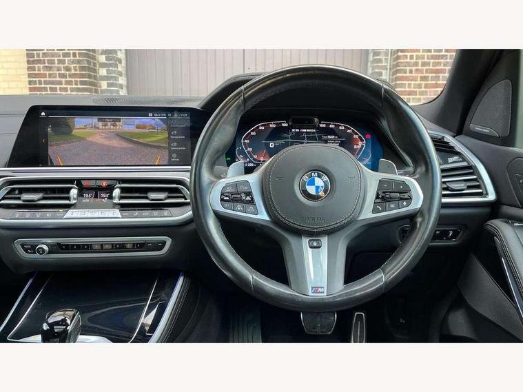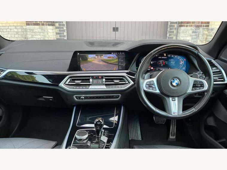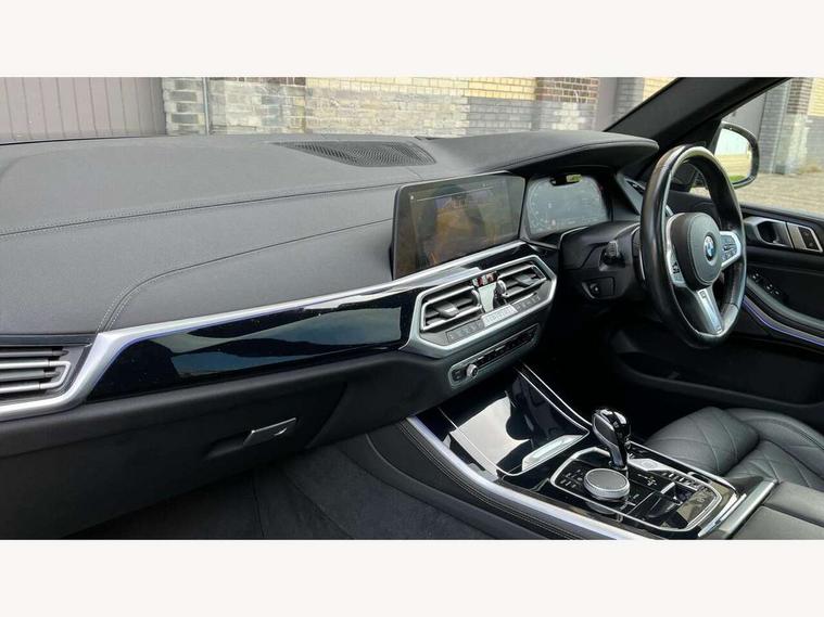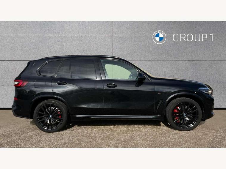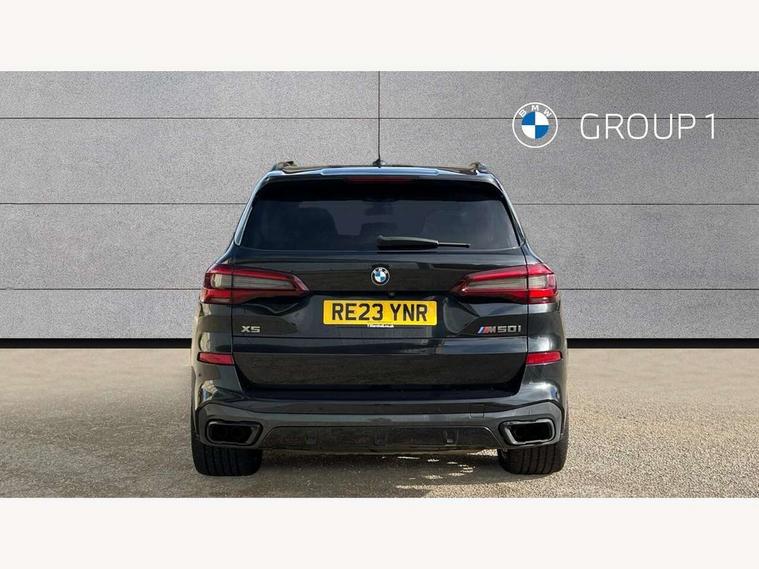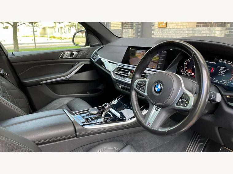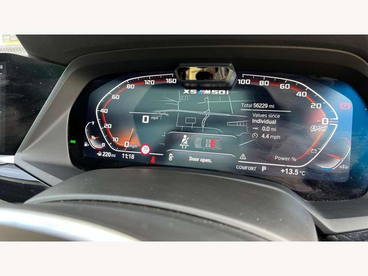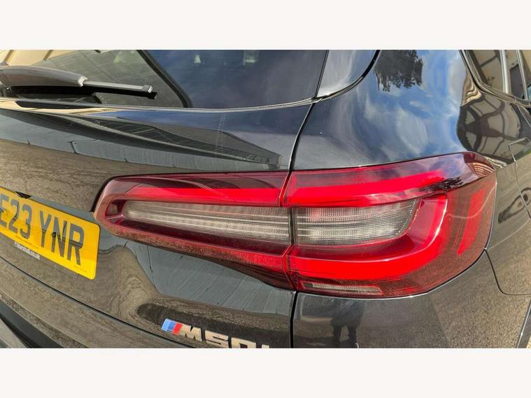 20GB hard disc drive (HDD) memory, Active guard plus, Attentiveness assist, Automatic tailgate with top hinged section open and manual bottom hinged section, BMW ConnectedDrive online services, BMW digital live cockpit professional - 12.3" digital instrument panel and 12.3" CID, with touch/voice command, BMW legal emergency call, BMW Teleservices, Brake force display, Brake pad wear indicator warning light, Enhanced bluetooth with wireless charging, Front/rear park distance control, iDrive controller with shortcut buttons, Lights on warning, Oil sensor for level and grade, On board computer inc. average speed, fuel consumption, liquid crystal Info display, journey computer, outside temperature display, personal profile, Service interval indicator, Wi-Fi hotspot, Double VANOS, Double wishbone front axle, Drive performance control with ECO PRO comfort + sport mode, Eight speed steptronic sport automatic transmission and gearshift paddles on the steering wheel, High precision injection, M Sport differential, Petrol Particulate Filter, Safety battery terminal clamp, Twin scroll turbocharger with Valvetronic, DAB Tuner enables digital radio reception, Favourite buttons, USB connection, USB type A 1.5A in cupholder, USB Type C 3A in centre armrest, Adaptive air flap control bar in high-gloss black, Automatically dimming rear view mirror, BMW Individual high gloss black shadow line roof rails, BMW Individual high gloss shadow line, Body colour bumpers, Body colour door handles, Cerium grey kidney grille, Cerium grey M badge on left and right side panels, Cerium grey M50i badge on right tailgate, Cerium grey side gill, Dynamic brake lights with LED technology, Exhaust tailpipes - single, left and right in Cerium Grey, Follow me home headlight function, Front and rear electric windows with open and close fingertip control, anti trap facility and comfort closing, Heated windscreen washer jets, High beam assistant, High gloss black outer and central air intakes on front bumper with pearlescent chrome finish, High gloss black Side elements, LED daytime running lights, LED rear lights, M aerodynamic body styling, M Sport exhaust system, Rain sensor with automatic headlight activation and windscreen wiper control, Rear side wing doors, Satin aluminium side window graphic, Sun protection glazing, Third brake light in rear spoiler, Variable intermittent rear wash/wipe, Welcome light carpet, X5 on left tailgate, xDrive designation on right tailgate, 12V - Power sockets with 2x centre console and 1x luggage compartment, 3 seat bench in 2nd row, 40:20:40 split folding rear seats, Ambient interior lighting with 6 pre-designed selectable lights including dynamic function, Centre and rear interior light, Child seat ISOFIX attachment with rear outer seats includes top tether, Compartment in front of cupholder, Electric front seat adjustment with driver and front passenger memory function, Electrical steering column with adjustable height and length with activation and control on the steering column, Foldable rear centre armrest with 2 cupholders and storage compartment, Front and rear cupholders x 2, Front and rear door pockets, Front and rear door sill finishers with illuminated M50i designation, Front and rear side armrest integrated into door trim, Front footwell lights, Front reading lights, Light inside glove compartment, Lockable glove compartment, Luggage compartment floor panel with integral storage tray, Luggage compartment lighting, M leather steering wheel, M specific key, M specific pedals, M specific steering wheel, Make-up mirror lights, Multifunction controls for leather steering wheel, Multifunctional hooks, Rear head restraints, Seat back with flap pocket, Securing rings in luggage compartment, Single front passenger seat, Storage bins on all doors, Storage tray and compartment with cover in centre console, Sunvisors with illuminated vanity mirrors, Toolkit located in luggage compartment, Velour floormats, Connected Package Professional - X5, Expanded exterior mirror pack - X5/X5 M, Non-smokers pack - X5, Active protection, Airbags - driver/front passenger, rear and side, first and second row seats head airbags, front passenger seat airbag deactivation + knee airbag, Anti-lock braking system (ABS), Automatic Stability Control (ASC), Brake drying, Brake energy regeneration, Brake fade compensation, Braking pre-tensioning, Cornering brake control (CBC), Crash sensor activating central locking release, hazard warning lights, fuel cut off, interior lighting + activation of safety battery terminal clamp, Deformation zones - front and rear with door reinforcements and bumpers up to 2.5 mph, DSC - Dynamic Stability Control, Dynamic brake control, Dynamic Traction Control - DTC, Electromechanical parking brake with automatic drive away release and auto hold function, Electronic brake force distribution, Front and rear seatbelts with seatbelt stopper, seatbelt tensioner for front and outer rear seats and belt force limiter, Front head restraints with anti-whiplash, Height adjustable front seatbelts, Hill start assistant, Integrated brake system, M sport seatbelt, Mechanical child proof lock on rear doors, Passive protection for pedestrians, Seat occupancy detection for driver and passenger side, Side impact protection, Three 3 point inertia reel seatbelts, Two tone horn, Tyre pressure monitoring system, Ventilated front and rear disc brakes, Warning triangle and first aid kit, Closing system with central locking, Driver and front passenger door centre lock switch, Locking wheel bolts, Thatcham 1 alarm system with remote control and engine immobiliser, Start/stop toggle diamond shaped trim finisher in pearl chrome, Tyre repair kit,