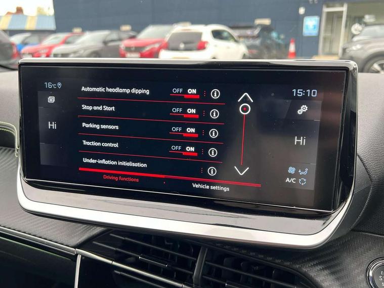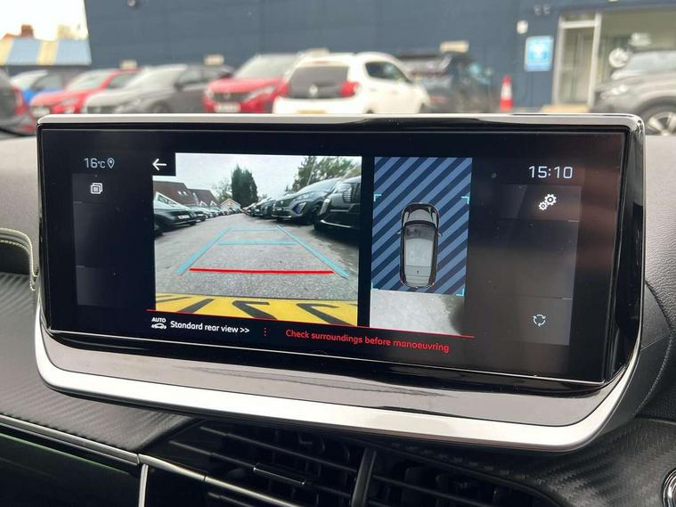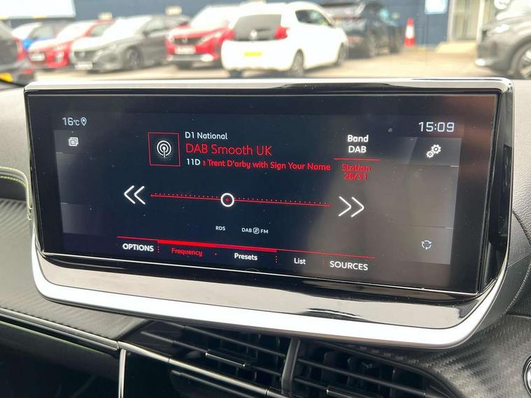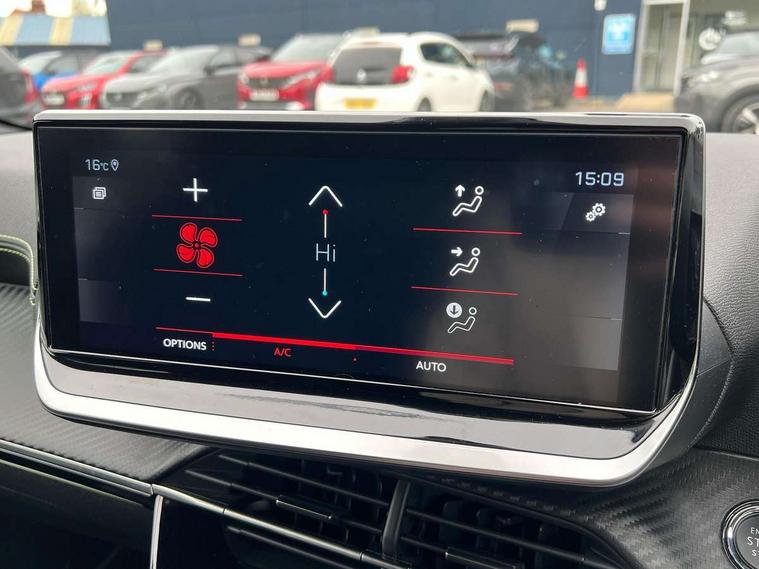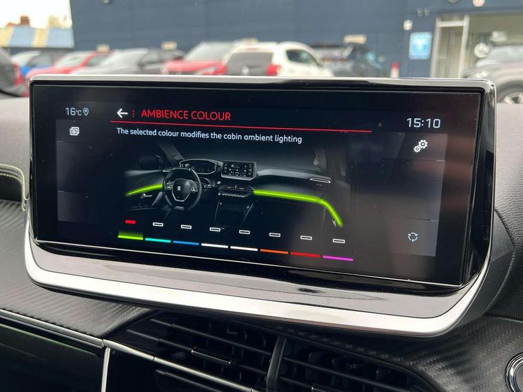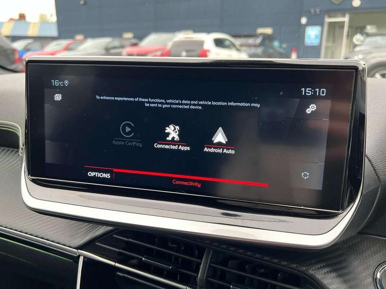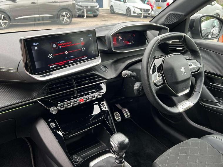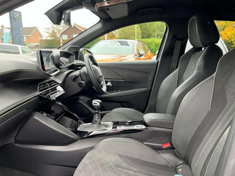 10" Capacitive colour touchscreen with connected 3D navigation, Blind spot monitoring, Bluetooth telephone facility, Driver attention warning, Exterior temperature indicator with ice warning, Lane keep assist, Mirror screen with mirror link, apple carplay and android auto, Multi function trip computer, PEUGEOT i-Cockpit with compact steering wheel, PEUGEOT i-Cockpit with configurable 3D headup instrument panel, PEUGEOT SOS and assistance, Push button start, Smart phone docking station, Speed limit recognition and recommendation, Start/stop system, Visio park assist 180 with colour reversing camera + front and rear parking sensor, 2 front USB socket with USB-C, 2x USB sockets in rear, 6 speakers radio with mp3 compatible, DAB Digital radio, Voice recognition for radio, navigation and telephony features, 2 X Rear number plate lights, Automatic hazard light activation upon heavy brake application, Automatic lights, Automatic windscreen wipers, Body coloured exterior door handles, Dark tinted rear side and tailgate windows, Diamond black rear spoiler (roof), Diamond Black roof, Electric front windows + one touch + anti-pinch, Electric rear windows with one touch/anti-pinch, Electrically adjustable, heated and power folding door mirrors, Follow me home headlights, Frameless electrochrome interior rear view mirror, Full LED headlights with smartbeam assist, Gloss black finish on B pillar, Gloss black rear cluster connecting strip, Gloss black wheel arch extensions, Gloss black window surround, GT model designation badging on C pillar, GT model designation badging on tailgate, Headlights left on audible warning, LED daytime running lights with 3 claw headlight with distinctive tooth design, LED side indicator lights integrated into door mirrors, LED third brake light, Model designation badges front and rear, Nera black door mirror shells, Peugeot scuff plates, Radiator grille - Dark chrome chequered and gloss black edge trim, Rear bumper with gloss black finish, Rear full LED 3D peugeot signature claw effect lights with daylight function, Rear lower bumper diffuser effect trim in gloss black, Rear reversing lights, Rear side wing doors, Rear windscreen wiper triggered automatically in reverse gear, Roof mounted aerial with fin design, Roof spoiler, Single exhaust tailpipe, Tailgate with heated rear windscreen and wiper blade, Variable front intermittent wipers, 1/3 to 2/3 split folding rear seats, 12V socket, 3 seat bench in 2nd row, 8 Colour personalisable ambient lighting, Aluminium pedals and foot rest, Automatic air conditioning, Driver and front passenger seat manual adjustment in longitudinal and back rest angle, Driver and front passenger seat mechanical height adjustment, Driver and front passenger sport seats, Electric power steering with reach and rake adjustable steering column, Front and rear carpet mats in black with lime green stitch detail, Front centre armrest with storage compartment, Front LED interior light with 2 reading spotlights and rear interior light with timer, Gear shift indicator, High centre console with 2 cup holders, ISOFIX child seat mounting points on passenger seat, Lime green contrast stitching to armrest, front centre console, door panels and dashboard facia, Map pockets on the backs of the front seats, Mistral full grain perforated leather steering wheel with aikinite stitch detail and satin chrome 'GT' emblem, Piano keys gloss black plated toggle switches to access main functions of the vehicle, Piano keys gloss black plated toggle switches to access touchscreen functions, Rear centre headrest, Roof lining - Mistral black, Satin chrome gear lever, Seatbelt unfastened on the move audible and visual alert for front and rear seats, Single front passenger seat, Drive assist pack - 208, 3 rear 3 point seatbelts, ABS (Anti-lock Braking System) with EBD (Electronic Brakeforce Distribution) and EBA (Emergency Braking Assistance), Active safety brake with night function/cyclists/pedestrians, Adaptive driver and front passenger airbags with passenger airbag deactivation function, Child locking functionality on rear doors, Driver/front passenger side airbags, Electric parking brake, ESP with Hill Assist, Front and rear curtain airbags, Front and rear disc brakes, Front optimised safety headrests and 3 x rear retractable headrests with height adjustable, Front three point retractable seatbelts with force limiters, Tyre pressure sensor, Acoustic vehicle alert system (AVAS), Automatic door locking when moving off, Deadlock, Electronic code immobiliser, Peugeot Open and Go System, Remote central locking, Thatcham cat. 1 alarm with anti lift sensor, Carbon effect Dashboard, front and rear door panel finish, 17" Bronx two-tone alloy wheels, Space saver spare wheel,