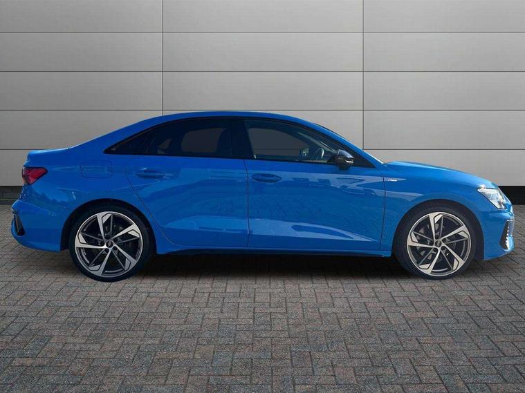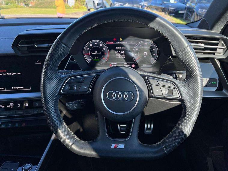 Audi connect emergency call and service, Audi drive select (Auto, Comfort, Dynamic, Efficiency and Individual), Audi smartphone interface, Audi virtual cockpit plus - 12.3" dynamic digital instrument cluster, Automatic start/stop system with recuperation, Bluetooth interface, Collision avoidance assistant, Electromechanical power speed sensitive steering, Lane departure warning system, MMI Navigation Plus with high resolution 10.1" colour touch screen display, Service indicator, Voice control system with natural language interaction, Sports suspension, 2x USB Type C ports (for charging and data transfer), 6 passive loudspeakers, CD player, DAB Digital radio, 3rd brake light, Acoustic glass windscreen, Audi matrix LED headlights, LED rear lights, dynamic front and rear indicators and headlight cleaning system, Auto dimming frameless rear view mirror, Electrically adj heated/folding + automatically dimming exterior mirrors + automatic kerb side function for passenger side exterior mirror, Front electric windows, Illuminated door sills with aluminium inserts at the front with S logo, Integrated LED indicators in door mirrors, LED daytime running lights, Light and rain sensors, Model and engine designation badges at rear, Privacy glass - dark tinted rear window, rear door and side windows, Rear boot, Rear electric windows, Rear side wing doors, S roof spoiler, 12V socket and storage compartment in front centre console, 3 seat bench in 2nd row, 4 way electrically adjustable lumbar support for driver and front passenger, 40/20/40 split folding rear seat bench with cupholder, Black cloth headlining, Dual zone electronic climate control, Electrically adjustable front seats, Front and rear centre armrest in leather, Front and rear headrests, Front/rear floor mats, Heated front seats, Height and reach adjustable steering wheel, Illuminated vanity mirror, Interior lighting - glove compartment light and right hand side, Luggage compartment floor covering, Manual boot compartment lid, Single front passenger seat, Stainless steel pedals and front footrest in black, Aluminium interior elements pack - A3, Black styling pack - A3/S3, Dinamica microfibre/mono.pur 550 artificial leather pack - A3 Saloon, Extended ambient lighting pack - A3/S3 Saloon, LED interior lighting pack - A3 Saloon, 3x3 point rear seat belts, Driver and front passenger airbag with passenger airbag deactivation, Electronic Stabilisation Control (ESC) including ABS, ASR and EDL, First aid kit with warning triangle and 2 safety vests, Front side airbags with head airbags and interaction airbag, Hill hold assist, Pre-sense front with pedestrian and cyclist detection, Seatbelt monitoring, Tyre pressure loss indicator, Anti theft alarm, Anti-theft wheel bolts, Electronically operated child locks, Immobiliser, Remote control central locking, Aluminium air vent surrounds, Aluminium trim elements, Dark spectrum aluminium inlays, accent surfaces in the dashboard and centre console in platinum grey silk effect paint finish, 19" 5 arm trapezoid design alloy wheels in matt grey with diamond cut finish,