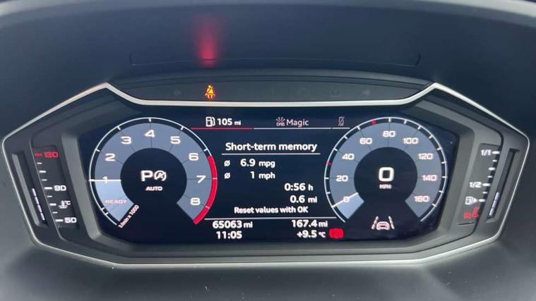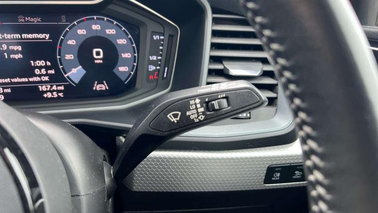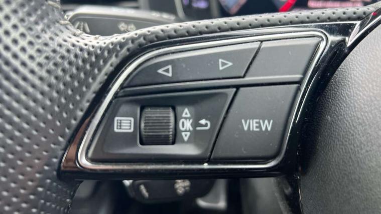 10.25" Digital instrument cluster display screen, Audi connect safety emergency and service including E-call, Audi drive select, Audi smartphone interface, Automatic start/stop system, Bluetooth interface, Driver's information system, Electromechanical power steering, Lane departure warning system, Service interval indicator, Speed limiter, Voice control system, Washer fluid level indicator, Sports suspension, 1 x SDXC card reader, 1 x USB type C and 1 USB type A charging points, Audi music interface, Bluetooth audio streaming, DAB Digital radio, MMI radio plus with 8.8" colour MMI display screen and MMI touch, Auto dimming rear view mirror, Body colour side sill mouldings, Body coloured bumpers, Body coloured door mirrors, Door sills with aluminium inlays and S Line logo, Electric front and rear windows, Front side air inlets in grained matt black and C frame in titanium black, Heat insulating glass windscreen and side windows, Heated rear windscreen, LED headlights with LED rear lights + dynamic rear indicators, Matt aluminium silver tailpipe trim, Matt black radiator grille frame, Matt platinum grey in front spoiler clip and rear diffuser clip, Rain and light sensors, Rear fog lights, Rear wiper, S line badges on front wings, S line exterior bumpers, S line roof spoiler, Side air inlet frames titanium black, Side front spoiler lips in grained matt black, 12V socket in centre console with two cup holders, 3 rear seats, Black cloth headlining, Driver and passenger seat with manual height adjust with forward and backwards adjustment, Front and rear black floor mats with contrast stitching in fine silver, Front head restraints, Height and reach adjustable steering wheel, ISOFIX child seat mounting in front passenger and rear outer seats, Leather gear knob with aluminium trim, Leatherette handbrake grip, Luggage compartment light with front and rear reading lights, Lumbar adjustment for front seats, Rear head restraints, Split folding rear seats, Stainless steel pedals, 3x3 point rear seatbelts, Audi pre-sense front with pedestrain and cyclist recognition, Brake assist function, Driver and front passenger airbag with front side and head airbags, Electronic Stability Control including ABS, EBD, ASR and EDL, Front and rear seatbelt reminder, Front passenger airbag deactivation switch, Hill hold assist, Seatbelt height adjustment for front seats, Seatbelt monitoring, Tyre pressure warning light, Warning triangle and first aid kit, Anti theft alarm, Anti theft wheel bolts and loose wheel warning, Immobiliser, Remote central locking with 2 remote folding keys, Aluminium trim for control switches, air vents and digital instrument cluster, Silver grey inlays polygon structure in diamond paint finish, Structured grey accent areas including air vents, door handle recesses and centre console in quartz paint finish,