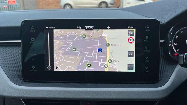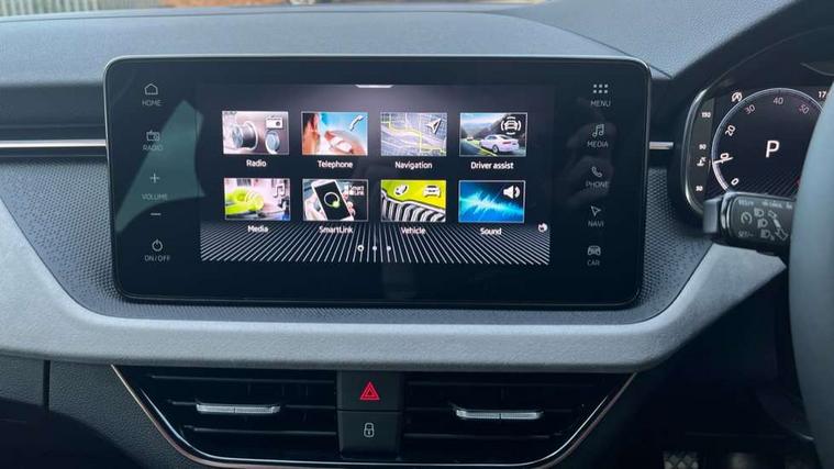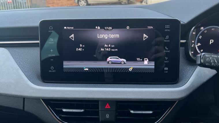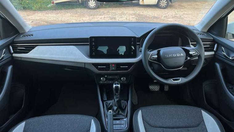 Advanced driver attention and drowsiness monitor, Bluetooth, e-Call (emergency call), Front assist system, PAS, Rear parking sensors, Rear view camera, Speed limiter, Tailgate, Traffic sign recognition, Virtual Cockpit - 10.25" digital display, Voice control system, Wireless smartlink, 4 USB C ports, 8 Speakers, 9.2" Skoda navigation display, DAB radio, Auto dimming rear view mirror, Automatic headlight control with manual coming and leaving home feature, Automatic intermittent wipers, Body colour bumpers, Body colour door mirrors and handles, Chrome moulding around grille, Chrome window frames, Front and rear electric windows, Heated rear window, LED 3rd brake light, LED daytime running lights, LED high beam, LED low beam, Light sensors, Privacy glass, Rear LED fog light, Rear side wing doors, Rear wiper, Tinted windows, Unique dark chrome design logo on alloy wheels, 12V socket in luggage compartment, 3 seat bench in 2nd row, Ambient lighting in white/red, Black / Copper armrest stitching, Cargo elements, Chrome inner door handles, Copper hotstamping, Door inserts in accent black, Driver and passenger sun visors with vanity mirror, Dual zone climate control, Front and rear roof lights, Front centre armrest, Front head restraints, Glasses storage in roof liner, Height adjustable driver seat, Height adjustable passenger seat, Ice scraper, Illuminated glove compartment, Inner circulation control with pollen filter, ISOFIX for front passenger seat, Isofix preparation for back seats, Leather gearknob and handbrake lever, Lodge cloth upholstery, Luggage net under rear parcel shelf, Manual lumbar support for front seats, Net package and top tether hooks in boot space, Pocket on the back of both front seats, incl. mobile phone pockets, Rear centre armrest, Single front passenger seat, Skoda lettering on steering wheel, Textile floor mats, Third rear headrest, Ticket holder, Top tether for front passenger seat, Umbrella in driver's door, Convenience pack without rear camera - Scala, 3x3 point rear seatbelts, ABS, Child locks, Curtain airbags and front side airbags, Disc brakes, Driver and front passenger airbags, ESP, Hill hold control, Manual leather parking brake, One tone horn, Passenger airbag switch off function, Seatbelt reminder for driver and front passenger, Tyre pressure monitoring system, Anti theft alarm system with interior monitoring, backup horn and towing protection, Anti-theft wheel bolts, Remote central locking with 2 remote folding keys, SAFE function for remote central locking, Decorative inserts,