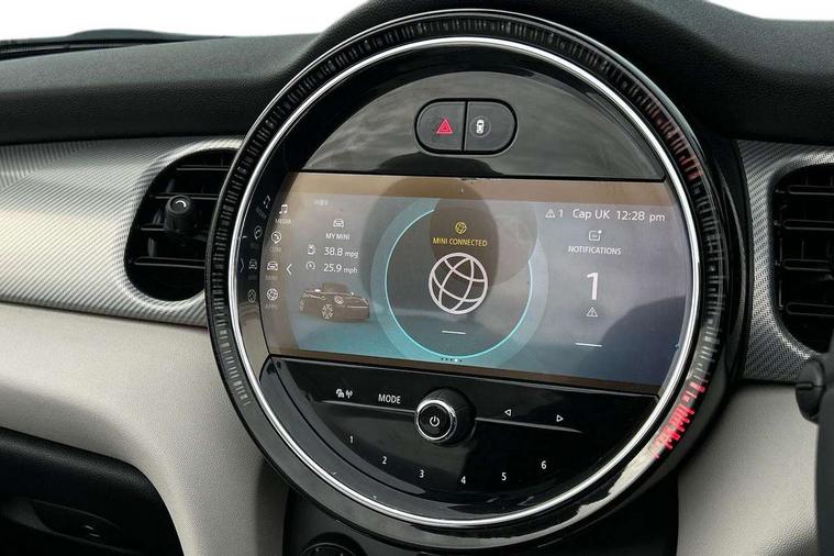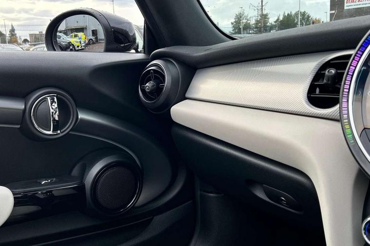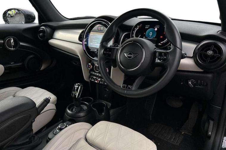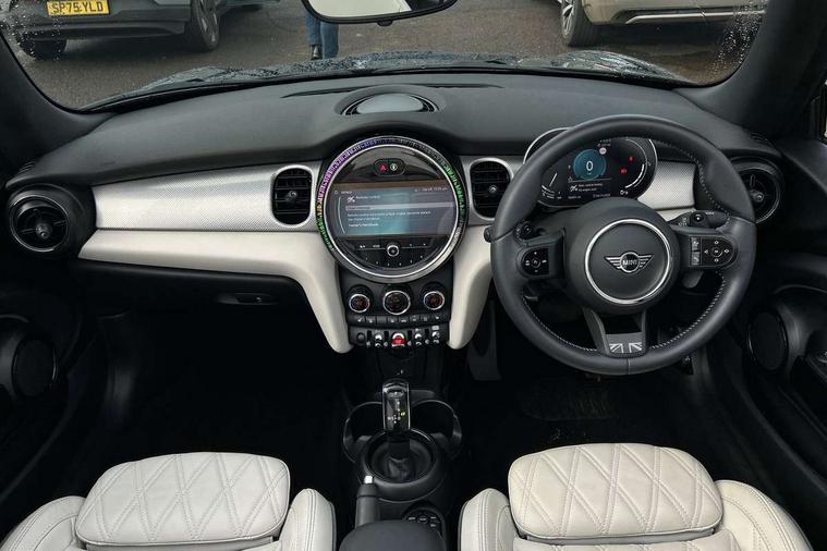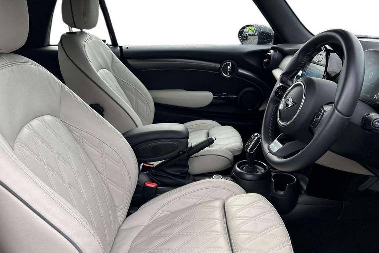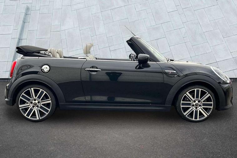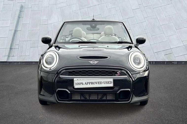 Automatic start/stop function with brake energy recuperation, Compatible mobile phone bluetooth with audio streaming, Electro-mechanical speed dependant steering assistance, Instrument cluster, MINI Driving Modes - centre toggle switch to control driving setting (sport, mid and green), Mini E-call, MINI TeleServices, On board computer, Rear park distance control, Service interval indicator, Double Vanos system, Fully variable valve control, High precision injection, Performance Control, Steptronic sport transmission with double clutch and steering wheel paddles, FM tuner and DAB digital radio, Automatic headlight activation switch, Bonnet scoop, Chrome plated fuel cap, Dynamic brake lights, Electric windows, Fully electric black softtop with integrated sunroof functionality, Heated rear window, Heated windscreen washer jets, Metal door sill strips with Cooper S imprint, Model logo Cooper S on right of tailgate, Radiator grille bars, tailgate handle, lower front grille grating, rear central fog light in chrome, Rain sensor window wipers, Rear fog lights, Rear LED lights with union jack design, Side scuttle panel with integrated indicator, Sun/heat protection glass, Two central exhaust tailpipes with chrome finisher, White indicator lenses, 12V Accessory socket in centre console, 4 lashing eyes in luggage compartment, 50/50 split folding rear seats, Air vents, gear lever base, speakers in doors, door handles in chrome, Chrome interior highlights, Cupholders, Easy Load boot handles, Front and rear head restraints, Front and rear isofix with front passenger airbag deactivation, Front seatback storage pockets, Glove compartment, Height and length steering column adjustment, Interior lighting with 12 basic colours selectable via toggle switch in roof, Leather gearshift lever and handbrake gaiters, LED reading lights, vanity mirror lights, front foot well light and spotlight on front seats, Mechanical seat adjustment, driver seat height adjust, forward/back and front seats backrest, Mini logo projection on floor from drivers exterior mirror, MINI Yours fine walk nappa leather steering wheel with contrast stitching in silver and MINI Yours badge, Multifunction steering wheel, Storage compartments in doors, Sunvisors with vanity mirrors, Convertible pack with comfort access - Mini Convertible, 3 point seatbelts on all four seats, 6 Airbags - front, side and seat belt tensioners, Active rollover protection, Anti-lock braking system (ABS), DSC - Dynamic Stability Control, Front and rear disc brakes, Hill start assist, Two tone horn, Tyre pressure monitoring system, Alarm system with tilt sensor, monitoring doors, bonnet interior and tailgate, Electronic vehicle immobiliser, Keyless Go, Chrome line interior, Tool kit,