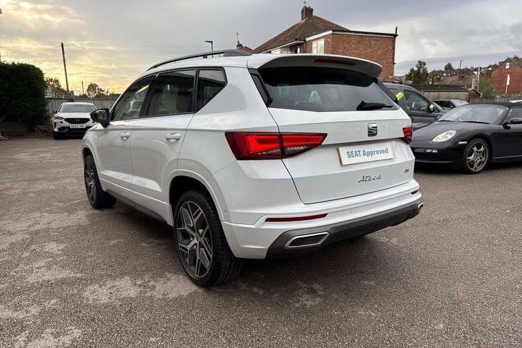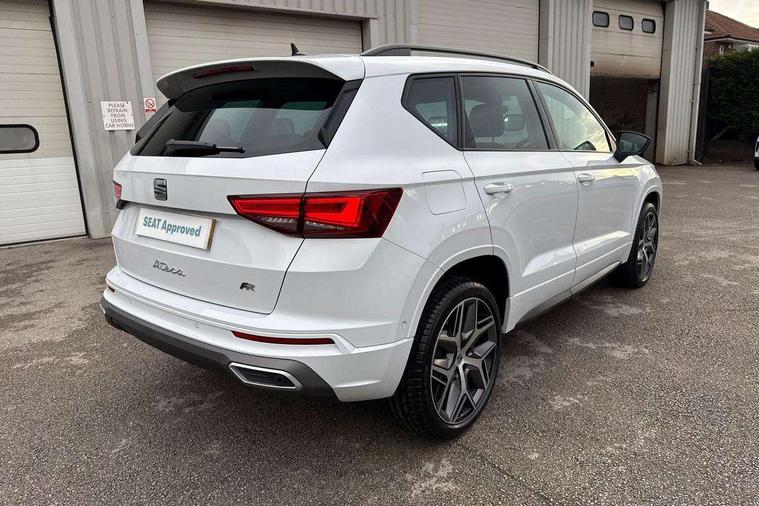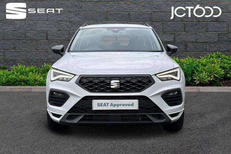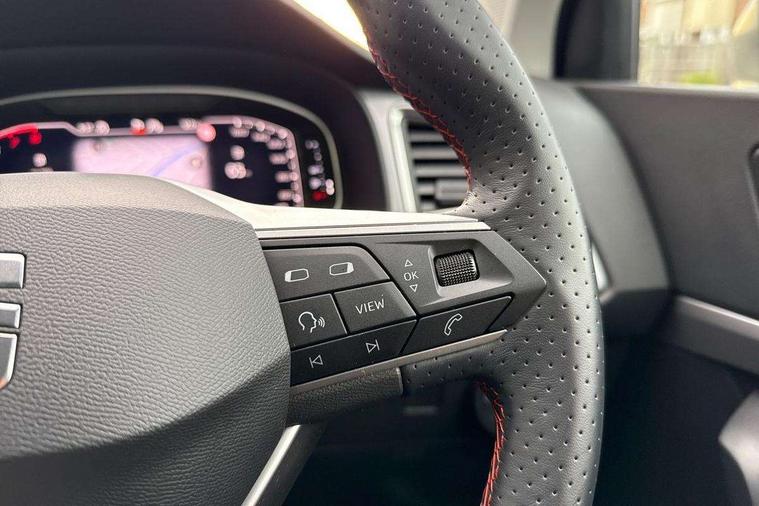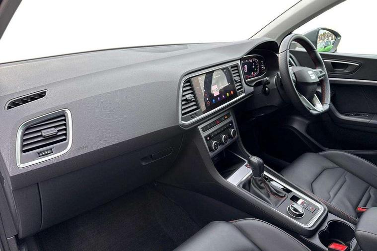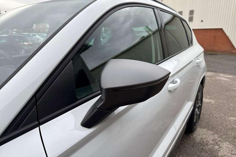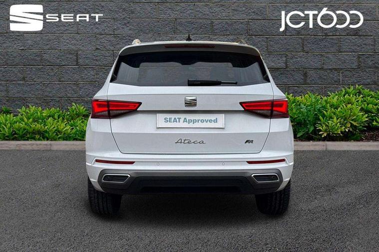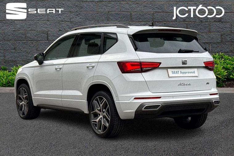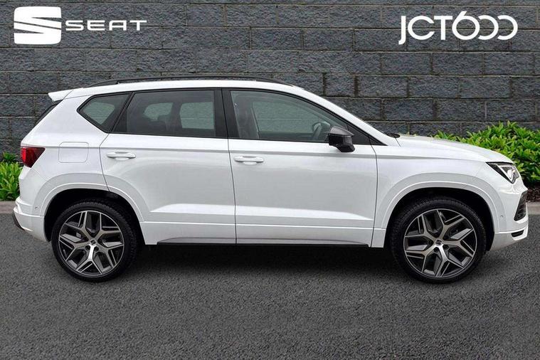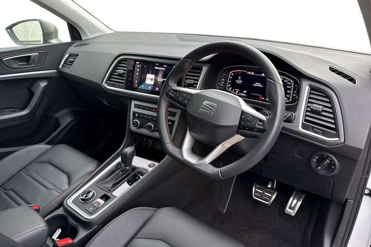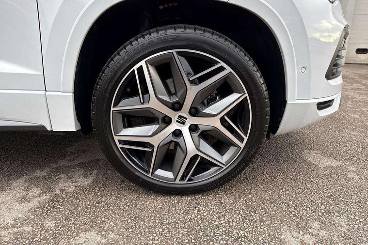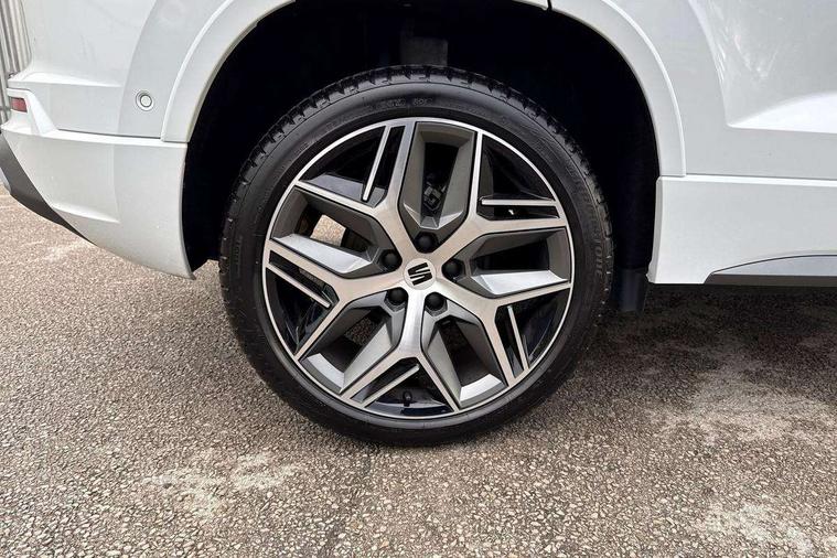 10" Digital cockpit, Cruise control system with speed limiter, E-call, Outside temperature gauge, Progressive power assisted steering, SEAT drive profile with driving experience button - Normal, Sport, Eco and Individual mode, gearshift, steering and throttle response, Self parking functionality (includes front and rear parking sensors), Start/stop system, Tailgate, Trip computer, wired and wireless full link smartphone integration, Wireless phone charger, Steering wheel mounted audio/phone controls, Black roof rails, Black side window trim, Body colour bumpers, Body coloured wheel arch surrounds, Chrome front grille frame, Dark tinted rear windows, Daytime running lights, Door mirrors with welcome light silhouette, Dynamic headlight range control with self adjusting whilst driving, Electric adjustable/heated/folding door mirrors, Front and rear electric windows, Full LED headlamps with lens and LED front fog lamps with cornering function, Illuminated aluminium front door sill, LED 3rd brake light, LED rear tail lights with dynamic indicators, Rear exhaust tailpipe, Rear fog lights, Rear side wing doors, Rear wash/wipe, Roof spoiler, Variable front intermittent wipers, 12v socket in front, 3 seat bench in 2nd row, 60/40 split folding rear seat, Aluminium pedals, Dual zone climate control, Electric adjustable driver seat with memory function, Front and rear head restraints, Front centre armrest, Front seat back storage pockets, Heated front seats, Height adjustable passenger seats with lumbar adjustment, ISOFIX points in outer rear seats with top tether anchorage points, Leather sports steering wheel and gear knob, Leather upholstery with front comfort seats, Manual lumbar support on driver seat, Rear armrest and easy back seat release mechanism from boot, Single front passenger seat, Steering wheel mounted gearshift paddles, Convenience pack - Ateca, Interior lighting pack - Ateca, Navigation system pack with DAB - Ateca, Safety and driving pack with attention and drowsiness assist - Ateca, 3x3 point rear seatbelts, ABS, Traction control system (TCS), Electronic stability control (ESC) and Electronic differential lock system (XDS), Airbags - Driver and front passenger airbag with deactivation, front side, two curtain and driver's knee airbags, Electric parking brake with auto hold function, Front and rear seatbelt reminder, Front assist with autonomous emergency braking, Hill hold control, Manual rear child locks, Single tone horn, Tiredness recognition system, Tyre pressure monitoring system, Alarm, Keyless entry, Locking wheel bolts, Remote central locking, Chrome interior detailing, 19" Exclusive machined alloy wheels with decorative inserts 36/7 in cosmo grey,