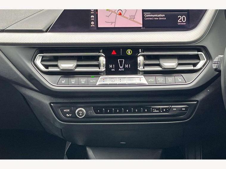 Active guard plus, Attentiveness assist, BMW Online services, BMW Teleservices, Check Control warning system for monitoring of lights and door/luggage compartment open warning, Connected eDrive Services, Eco pro mode, Electric power steering with Servotronic steering optimised at all speed ranges, Integrated owners handbook, Oil sensor for level and grade, On board computer, Optimum shift indicator, Personal Profile, Pull away assistant, Speed limiter, Aluminium lightweight construction, Anti roll bar front and rear, Balancer shaft, Diesel particulate filter, Drive Performance Control, Electronic differential lock, Bluetooth audio streaming, DAB Digital radio, Auto dimming rear view mirror, Automatic headlight beam throw control, Body colour door handles, Body colour mirror caps, Chrome 'M' logo side designation, Chrome exhaust twin tailpipes round 90mm in left and right split, Chrome kidney grille frame with Satin Aluminium struts, Direction indicator side lights in exterior mirrors, Electric folding and anti dazzle exterior mirrors, Fading support, Follow me home headlights, Front and rear electric windows with open and close fingertip control, anti trap facility and comfort closing, Front door sill finishers in black plastic with BMW designation, Green tinted heat protection glazing, Heated, electrically adjustable exterior mirror aspheric on driver side, convex on passenger side, High gloss shadow line exterior trim, High gloss shadowline window frame, Recess cover mirror frames and B/C pillar embelisher trim, High level third brake light, LED daytime running lights, LED eyebrow turn indicators, LED front fog lights, Lightweight engineering, Matt black air guide grilles, Model designation on right side of tailgate, Nearside reverse light in rear light cluster, Preparation for high beam assistant, Rain sensor including auto headlights activation, Rear fog lights, Rear window wiper, Shark fin antenna, Visible VIN plate, Welcome lighting, Windscreen wipers with integrated washing jets, 12V power socket in centre console, 2 cupholders in front centre console, 3 rear seat head restraints, 3 spoke M sports design leather steering wheel finished in nappa leather with specific M badge, Anthracite headlining, Anthracite Velour floor mats, Child seat ISOFIX attachment for two outer rear seats and front passenger seat with anchorage points, Conditioned based service, Dakota leather upholstery with perforation and contrast stitching, Driver and front passenger seat heating, Driver side folding compartment in instrument panel, Folding rear clothes hook, Folding rear seats, Four grab handles integrated in roof lining, Front and rear door pockets, Front and rear side armrest integrated into door trim, Front armrest foldable with integrated storage compartment, Front sports seats with electric side bolster adjustment, Glove compartment, Height adjustable front head restraints, Manual adjust steering wheel, Multi-function controls for steering wheel, Rear seat backrest with manual 60:40 split folding with 3 top tether clips integrated on rear of seat panels, Storage compartment in centre console, Sun visors with vanity mirrors and insert tab, Two zone automatic air conditioning, Connected pack professional - 1 Series, Extended Lighting pack - 1 Series, Extended storage pack - 1 Series, Interior lights pack - 1 Series, Luggage compartment pack - 1 Series, M Sport exterior styling aerodynamics pack - 1 Series, 2 tone horn, 3 point seatbelts on all seats, front pyrotechnic belt tensioners, stopper and belt force limiters, rear coded belt buckles, Airbags - Front driver and passenger, front and rear head, front side, curtain head protection, Anti lock braking system (ABS) with brake assist, BMW emergency call, Brake drying, Braking readiness, Crash sensor activating central locking release, hazard warning lights, fuel cut off, interior lighting + activation of safety battery terminal clamp, Driver and front passenger seat belt security check, Dynamic stability control + (DSC+), Dynamic Traction Control - DTC, Electrically operated hand brake, Front and rear disc brakes, Front passenger manual airbag deactivation, Rear child proof door locks, Seatbelt warning, Side impact protection, Tyre pressure monitoring system, Warning triangle and first aid kit, Automatic drive away locking facility, Central locking switch for all doors, fuel filler cap and luggage compartment, Deadlocking function system to all doors, Incorrect fuel protection system, Locking wheel bolts, Remote control with integrated key with High-gloss Black inlay and M designation and 1 button for open/ close lock, window, open luggage compartment, Start/stop button with comfort go keyless engine start and auto start stop deactivation button, Thatcham Cat.1 alarm and immobiliser, Contrast stitching on instrument panel, Reduced rolling resistance tyres,