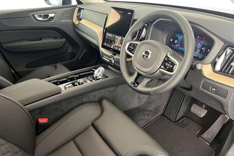11.2" centre console touch screen, 12.3" Progressive Driver Display, 360 degree surround view parking camera with side proximity sensors, Adaptive cruise control, Adjustable steering wheel force, Android auto (Wired), Apple carplay (wired), Bluetooth handsfree system, Driver alert control with lane keeping aid, Emergency services call system, Front and rear park assist, Google Automotive Services, Intelligent speed assistance, Oncoming Lane Mitigation, PAS, Power operated tailgate with handsfree opening and closing, Service interval indicator, Speed limiter, Speed sensitive steering, Trip computer, Volvo cars services with app, Volvo on call with App, Wireless/Inductive Mobile Phone Charging, 8 speed automatic transmission with start/stop + manual change functions, DAB Digital radio, Premium Sound by Harman Kardon, dirac unison, dolby pro logic II surround sound, 13 speakers/600W output and fresh air subwoofer, Steering wheel remote infotainment controls, Adaptive brake lights with high level LED brake lights, Auto dimming interior + exterior mirrors, Automatic headlight levelling system, Automatic LED Headlights + Active high beam incorporating daytime running lights, Electric adjustable/heated/auto power folding door mirrors, Electric front+rear windows, Front aluminium tread plates, Heated front windscreen, High gloss black door mirrors and window surround, High gloss black front and rear bumper decoratives, High gloss black mesh front grille with high gloss black surround, Home safe and approach lighting, Integrated roof rails in high gloss black, Puddle lights, Rain sensor with automatic windscreen wiper activation, Rear side wing doors, Rear wiper, Roof antenna, Roof spoiler, Tinted windscreen, Visible VIN plate, 12V socket in front tunnel console and luggage compartment, 3 seat bench in 2nd row, 3 Spoke tailored steering wheel with chrome trim, 4 Zone electronic climate control, A-pillar parking ticket holder, Air purifier particulate matter (PM) 2.5 filter, B Pillar ventilation, Bright metal luggage scuff plate, Centre console cupholders and storage, Charcoal floor mats, Front and rear courtesy lights, Front and rear door pocket illumination, Front cupholder illumination, Front footwell illumination, Front reading lights, Front seat cushion extensions, Glovebox compartment with illumination, Head restraints for all seats, Heated front seats, Heated steering wheel, Height/reach adjustable steering column, Illuminated luggage compartment, Illuminated vanity mirrors + ticket holder, Inner door release handle illumination, ISOFIX attachment on outer rear seats, Load cover, Load protection net, Multi directional lumbar support, Power driver seat with memory + exterior mirrors memory, Power height adjustable passenger seat, Power passenger seat with memory, Quilted nordico leather upholstery, Rear armrest with cupholder, Rear footwell and front and rear side step illumination, Rear reading lights, Rear seat concealed storage, Single front passenger seat, Tailgate illumination and ambient door lighting, Underfloor stowage compartment, Versatile split folding rear seat - 60/40, Driver assist pack without Adaptive cruise control - XC60, 5 three point seatbelts, City safety with steering support with Pedestrian + cyclist + front collision warning with full auto brake and rear auto brake, Drivers knee airbag, Dual stage driver/passenger airbags, Electronic parking brake with auto hold, First aid kit, Front seats SIPS airbags, Hill descent control - Off-road drive mode, Hill start assist, IC (Inflatable Curtains) - Full Length, Passenger airbag cut-off device, Power child locks on rear doors, Road sign information display, Run off Road Mitigation, Run off Road Protection, Seatbelt reminder and pretensioners, SIPS (Side Impact Protection System), Slippery road and hazard light alert, Stability and Traction Control with Spin control, Engine Drag Control and Corner Traction Control, Tyre pressure monitoring system, Vehicle deceleration control with Anti-lock Brake System, Electronic Brake Distribution and Emergency Brake Assist, Warning triangle, WHIPS whiplash protection system - front, Anti-theft alarm including immobiliser/volume sensor + level sensor, Key integrated remote control central locking + fuel flap with deadlocking system and auto open/close power windows, Keyless Drive (includes Keyless Entry and Keyless Start), Locking wheel nuts, Private locking for tailgate, Summer tyres,