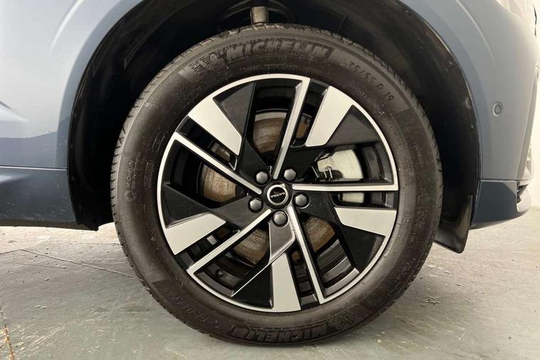 11.2" centre console touch screen, 12.3" Progressive Driver Display, 360 degree surround view parking camera with side proximity sensors, Adaptive cruise control, Adjustable steering wheel force, Android auto (Wired), Apple carplay (wired), Bluetooth handsfree system, Drive mode settings, Driver alert control with lane keeping aid, Emergency services call system, Front and rear park assist, Google Automotive Services, Intelligent speed assistance, Oncoming Lane Mitigation, PAS, Power operated tailgate with handsfree opening and closing, Service interval indicator, Speed limiter, Speed sensitive steering, Trip computer, Volvo cars services with app, Volvo on call with App, Wireless/Inductive Mobile Phone Charging, 2 phase on board charger 6.4kW (home charging limited to 3.7kW), 6m 3 phase 16amp Type 2 / mode 3 charge cable, 8 speed automatic transmission with start/stop + manual change functions, Electric rear axle drive, Recharging port located in nearside front wing, DAB Digital radio, Low speed exterior sound speaker, Premium Sound by Harman Kardon, dirac unison, dolby pro logic II surround sound, 13 speakers/600W output and fresh air subwoofer, Steering wheel remote infotainment controls, Adaptive brake lights with high level LED brake lights, Auto dimming interior + exterior mirrors, Automatic headlight levelling system, Automatic LED Headlights + Active high beam incorporating daytime running lights, Electric adjustable/heated/auto power folding door mirrors, Electric front+rear windows, Front aluminium tread plates, Heated front windscreen, High gloss black door mirrors and window surround, High gloss black front and rear bumper decoratives, High gloss black mesh front grille with high gloss black surround, Home safe and approach lighting, Integrated roof rails in high gloss black, Puddle lights, Rain sensor with automatic windscreen wiper activation, Rear side wing doors, Rear wiper, Roof antenna, Roof spoiler, Tinted windscreen, Visible VIN plate, 12V socket in front tunnel console and luggage compartment, 2 zone electronic climate control with Clean zone air quality system and pollen filter, 3 seat bench in 2nd row, 3 Spoke tailored steering wheel with chrome trim, A-pillar parking ticket holder, Air purifier particulate matter (PM) 2.5 filter, B Pillar ventilation, Bright metal luggage scuff plate, Centre console cupholders and storage, Charcoal floor mats, Front and rear courtesy lights, Front and rear door pocket illumination, Front cupholder illumination, Front footwell illumination, Front reading lights, Front seat cushion extensions, Glovebox compartment with illumination, Head restraints for all seats, Heated front seats, Heated steering wheel, Height/reach adjustable steering column, Illuminated luggage compartment, Illuminated vanity mirrors + ticket holder, Inner door release handle illumination, ISOFIX attachment on outer rear seats, Load cover, Load protection net, Multi directional lumbar support, Power driver seat with memory + exterior mirrors memory, Power height adjustable passenger seat, Power passenger seat with memory, Quilted nordico leather upholstery, Rear armrest with cupholder, Rear footwell and front and rear side step illumination, Rear reading lights, Rear seat concealed storage, Single front passenger seat, Tailgate illumination and ambient door lighting, Underfloor stowage compartment, Versatile split folding rear seat - 60/40, Driver assist pack without Adaptive cruise control - XC60, 5 three point seatbelts, City safety with steering support with Pedestrian + cyclist + front collision warning with full auto brake and rear auto brake, Drivers knee airbag, Dual stage driver/passenger airbags, Electronic parking brake with auto hold, First aid kit, Front seats SIPS airbags, Hill descent control - Off-road drive mode, Hill start assist, IC (Inflatable Curtains) - Full Length, Passenger airbag cut-off device, Power child locks on rear doors, Road sign information display, Run off Road Mitigation, Run off Road Protection, Seatbelt reminder and pretensioners, SIPS (Side Impact Protection System), Slippery road and hazard light alert, Stability and Traction Control with Spin control, Engine Drag Control and Corner Traction Control, Tyre pressure monitoring system, Vehicle deceleration control with Anti-lock Brake System, Electronic Brake Distribution and Emergency Brake Assist, Warning triangle, WHIPS whiplash protection system - front, Anti-theft alarm including immobiliser/volume sensor + level sensor, Key integrated remote control central locking + fuel flap with deadlocking system and auto open/close power windows, Keyless Drive (includes Keyless Entry and Keyless Start), Locking wheel nuts, Private locking for tailgate, Summer tyres, Tyre sealant kit + 12v compressor,