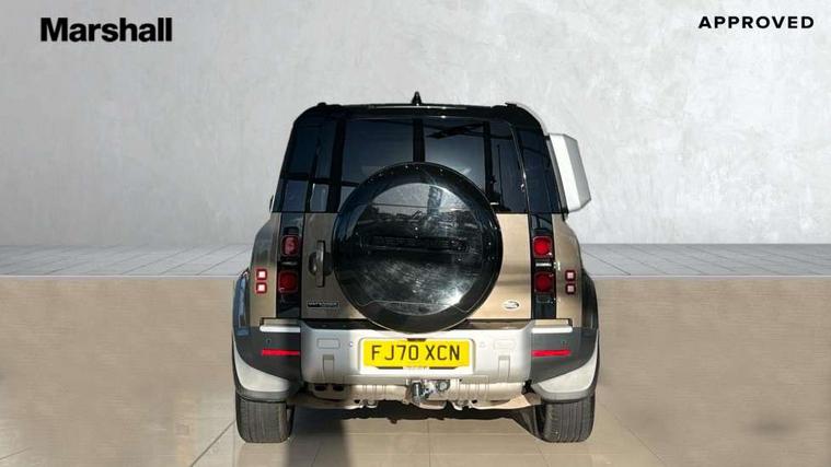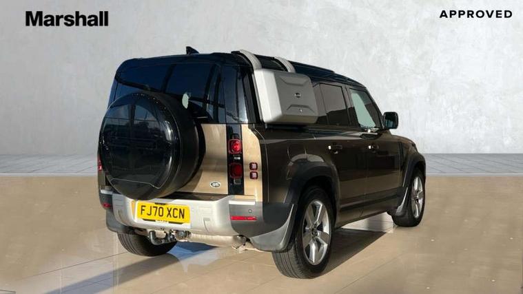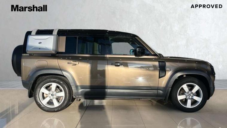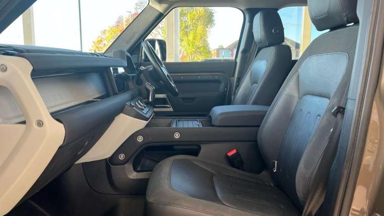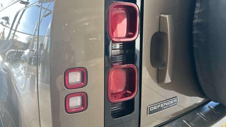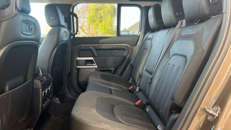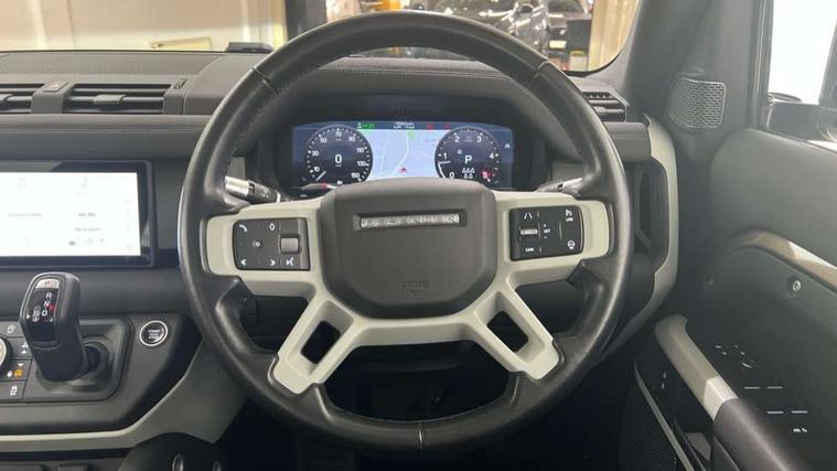 10" touch screen, 360 degree parking aid, 3D Surround Camera with 360 View, 180 Rear View, Front Traffic Detection, Forward Vehicle Guidance, Tow Hitch Assist and clear sight Ground View, Android Auto, Apple CarPlay, Blind spot assist, Bluetooth system, Clear exit monitor, Click and go integrated base unit, Connected navigation pro, Cruise control + speed limiter, Driver condition monitor, Interactive driver display, Lane keep assist, Less CE Device Charging, PAS, Pivi Pro connected navigation system with upgraded Infotainment, Rear traffic monitor, Traffic sign recognition with adaptive speed limiter, Trip computer, Wade Sensing, Adaptive dynamics, Configurable Terrain Response, Electronic air suspension, Terrain Response 2, DAB Radio (Digital Audio Broadcasting), Meridian 400w sound audio system with 11 speakers and subwoofer, Automatic headlight levelling, Automatic headlights, Black contrast roof, ClearSight interior rear view mirror, Front fog lights, Heated windscreen, LED tail lights, Matrix LED headlights with signature DRL, Metal tread plates with First Edition branding, Metallic paint, Power fold, auto-dimming, heated door mirrors with memory and approach lights, Privacy glass, Puddle lights, Rain sensing windscreen wipers, Signature graphic (with interior storage), Sliding panoramic roof, 12 way heated electric memory front seats with 2 way manual headrests, 60:40 folding load through rear seats with manual slide and recline and centre armrest, Air quality sensor, Cabin air ionisation, Cabin lighting, Carpet mats, Domestic plug socket, Electric reach + rake adjustable steering column, Front centre console refrigerator compartment, Front passenger isofix child seat attachment, Grained Leather and Robust Woven Textile upholstery, Heated steering wheel, Leather gearshift, Leather wrapped steering wheel with PU DAB, Loadspace cover, Manual third row seats, Morzine headlining, Multifunction steering wheel, Rear headrests, Rear ISOFIX, Sunvisors with illuminated vanity mirrors, Three-zone Climate Control with Rear Cooling Assist, Twin front cupholders with cover, Black exterior pack - Defender, Non-smoker package, Online pack with data plan - Defender, 7 three point seatbelts, ABS, Cross car beam in Light Grey Powder Coat, Driver and passenger airbags, Emergency braking, ESP + traction control, TPMS (Tyre pressure monitoring system), Alarm, Immobiliser, Intrusion sensor, Keyless entry and go, Locking wheel nuts, Remote locking,