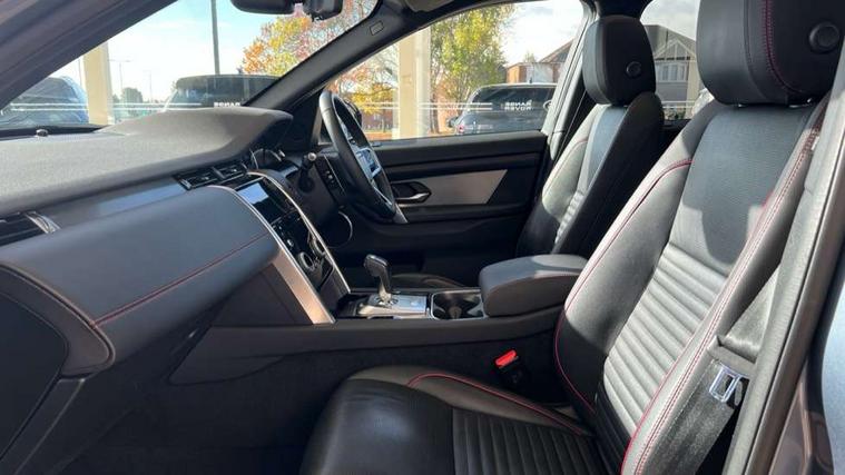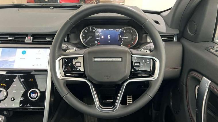 10" touch screen, Adaptive cruise control, Android Auto, Apple CarPlay, Driver condition monitor, eCall emergency call system, Front and rear parking aid, InControl remote premium, Lane keep assist, Locking fuel flap, PAS, Pivi Pro connected navigation system with upgraded Infotainment, Powered tailgate/boot lid, Push button start, Rear collision monitor, Service interval indicator, Traffic sign recognition with adaptive speed limiter, Trip computer, Wade Sensing, All terrain progress control, Coil suspension system, Diesel particulate filter, Dynamic stability control, Terrain Response 2, Bluetooth connectivity including audio streaming, Digital Audio Broadcast radio-DAB, Steering wheel mounted audio controls, 3rd brake light, Automatic headlights, ClearSight interior rear view mirror, Electric front/rear windows, Electric heated/power fold door mirrors with approach lights and auto dimming driver side, Fixed panoramic sunroof with powered sunblind, Front and rear recovery eyes, Heated rear window, Heated windscreen including heated washer jets, No badges, R Dynamic badge, Rain sensing windscreen wipers, Rear fog lights, Rear side wing doors, Rear wing door, Rear wiper, 2 seat bench in 3rd row, 3 seat bench in 2nd row, Bright metal pedals, Centre console with armrest, Footwell lights, Front and rear grab handles, Front passenger isofix child seat attachment, Front passenger seat, Loadspace cover, Loadspace light, Manual third row seats, Overhead lighting console, Overhead stowage for sunglasses, Rear headrests, Satin chrome gearshift paddles, Sunvisors with illuminated vanity mirrors, Tilt/reach adjustable steering wheel, Black exterior pack - Discovery sport, Online pack with data plan - Discovery, 3 point seatbelts on all seats, ABS, Brake hold function, Child locks on rear doors, Collision mitigation braking system, Cornering brake control (CBC), Driver/Front Passenger airbags, Drivers knee airbag, Electronic brake force distribution, Electronic parking brake, Emergency brake assist, ESP + traction control, Hill descent control, Hill launch assist, Pedestrian airbag system, Rear seat ISOFIX, Roll stability control, Side and curtain airbags for front and 2nd row seats, Trailer stability control, Tyre pressure monitoring system, Battery Back Up System (BBUS) with tilt sensor, Global lock and unlock switch on driver door, Intrusion sensor, Keyless entry, Locking wheel nuts, Centre stack rails in noble chrome,