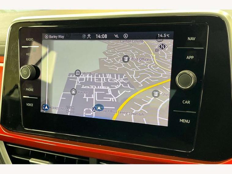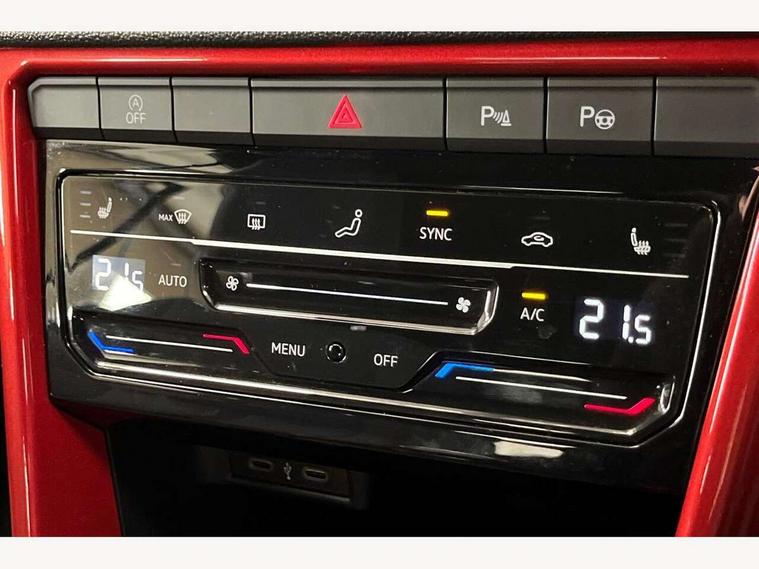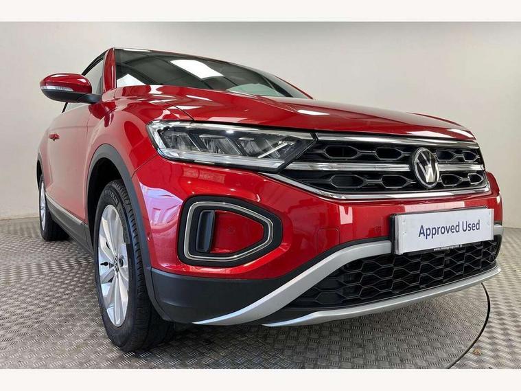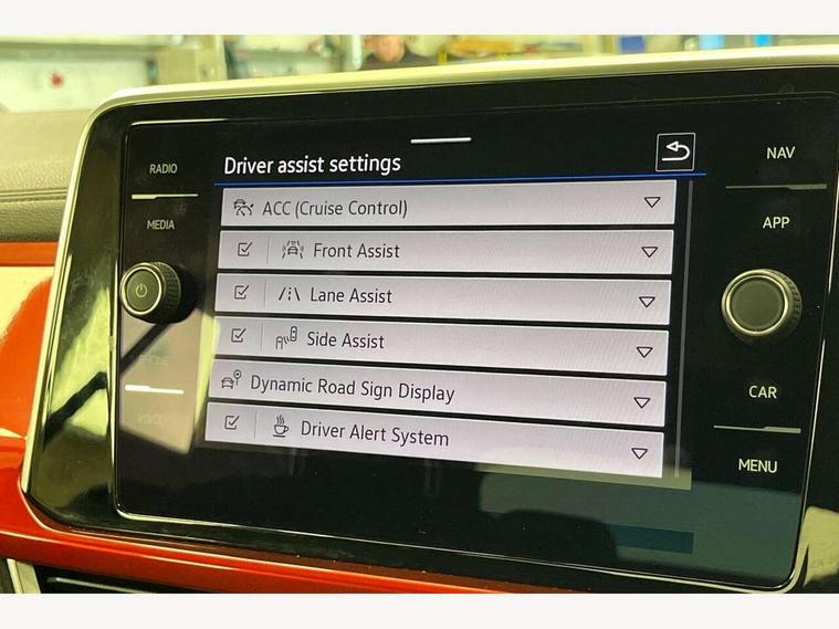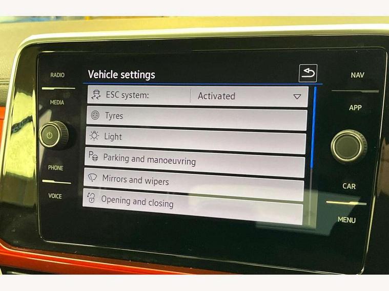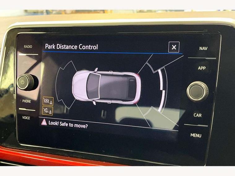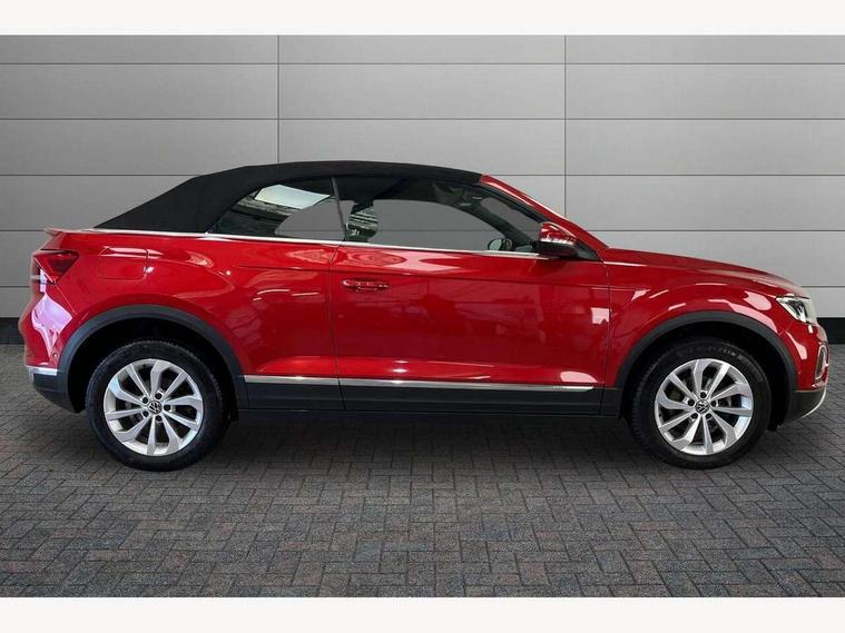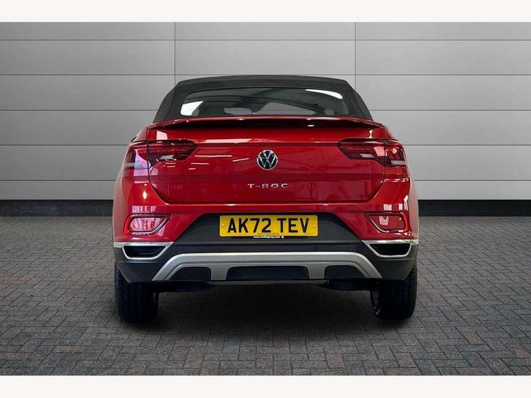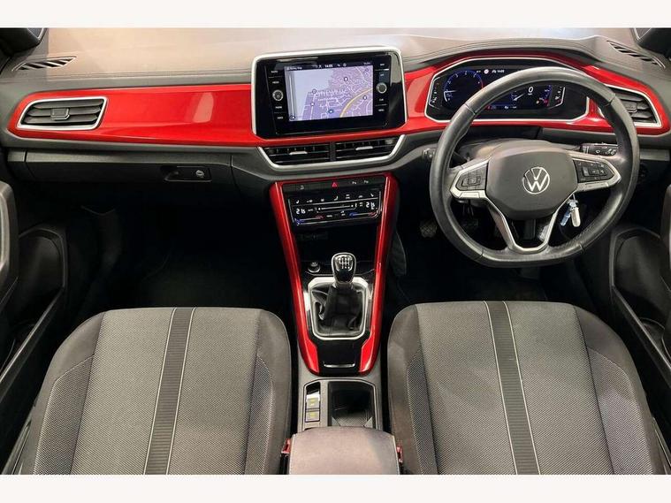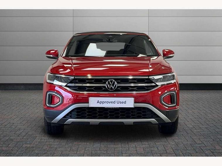Adaptive cruise control and speed limiter, Bluetooth mobile phone interface, Brake pad wear indicator, Car information display, Driver alert system with fatigue detection, Driver tips and journey analysis, Emergency call service, Modified key software - reduce switch off time for key status change to Long no motion, Multifunction computer with visual gear change recommendation for fuel consumption, Multifunction front facing camera, Park assist including front and rear parking sensors, Speedo and rev counter, electronic odometer, trip, service interval display and exterior temperature gauge, Start/stop system with brake energy recovery, Tailgate/trunk lid release from outside, Warning sound and light for front seatbelts unfastened, Diversity antenna for FM reception, Music playback - MP3, WMA and AAC files, SMS functionality - read, compose and send SMS messages using touch-screen display, Title and cover art display, USB-C Interface and USB charging socket, We Connect and We Connect Plus functionality, Ambient lighting with logo projection, Auto dimming interior rear view mirror, Automatic hazard lights activation under emergency braking, Automatic headlight control with LED separate daytime running lights with coming/leaving home function, Black roof, Body colour door handles, Body colour rear spoiler, Body coloured bumpers and radiator grille with chrome trim and front fog lamps with chrome bezel, Chrome effect left and right trapezoid exhaust tailpipe fascia surround, Dark red rear combination lamps in LED technology, Dusk sensor, Exterior mirrors aspherical on driver side, convex on front passenger side, Headlight range control, Heat insulating glass windscreen, High level 3rd brake light, LED Headlights, LED rear number plate lights, Power operated canvas convertible top, Power windows with comfort operation and circuit breaker, Rain sensor, Rear boot, Rear exhaust tailpipe, Rear fog light on one side and reversing lights on both sides, Remote electrically foldable door mirrors, puddle lights and reverse activated passenger door mirror, Volkswagen roundel, Windscreen wiper with intermittent wipe light, Without exterior ambient lighting, 12V socket in centre console storage area, 2 LED front reading lights, 2 seat bench in 2nd row, 50:50 Split folding rear seat backrests with fixed rear seat bench, Air care climatronic air conditoning system with active combination filter and 2-zone temperature control, Black door lower parts with chrome trim, Chrome plated surround to light, mirror and window switch, Door and side trim panel with leatherette insert, Easy entry backrest release, Front and rear carpet mats with black stitching, Front centre armrest, Front cupholders x 2, Front door pockets, Front seat back storage pockets, Heated multi function steering wheel, Height/reach adjust steering wheel, Instrument lighting, white adjustable panel illumination, Interior light delay, Interior light in footwell, Interior lighting with switch off delay and contact switches on all doors, Interior white ambient lighting and surround lighting, Isofix child seat preparation, Lockable glove compartment with light, Luggage compartment lighting, Rear head restraints, Single front passenger seat, Sun visors with illuminated vanity mirrors, Driver assistance pack without proactive passenger protection - T-Roc cabriolet, 2 x 3-point seatbelts/outer rear seats with ECE label, Driver and front passenger airbag with front passenger airbag deactivation, Driver and front passenger safety-optimised head restraints, Drivers seatbelt reminder, Electronic parking brake, Electronic Stability Control (ESC) including ABS, ASR and EDL, Front and rear disc brakes, Front assist with autonomous emergency braking, Pedestrian monitoring, Predictive pedestrian protection, Rigid safety cell with front and rear crumple zones, Side airbag/thorax airbag system, for front passengers, Single tone horn, Three point height adjust front seatbelts + pretensioners, Tyre pressure loss indicator, Volkswagen roadside assistance, Anti-theft alarm system with interior protection and central locking system with SAFELOCK, radio remote control and 2 remote control folding keys, Electronic engine immobiliser, Trims for alloy wheels,