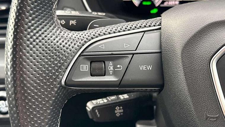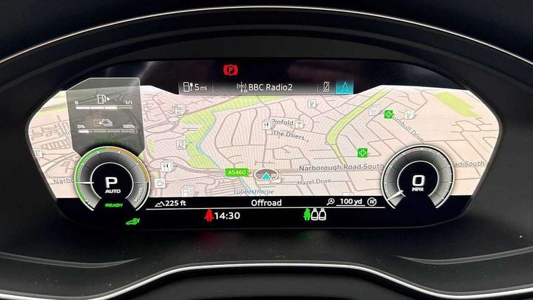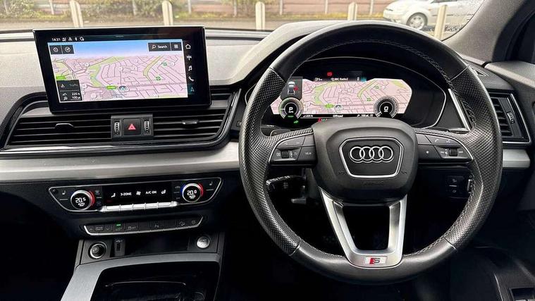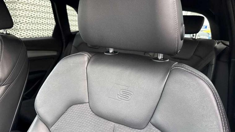 Audi connect safety and service (e-call), Audi connect with Amazon Alexa Integration, Audi drive select, Audi virtual cockpit plus with 12.3" screen and three different layout designs, Audi wireless smartphone interface, Automatic start-stop system with coasting functionality and efficiency programme, Bluetooth interface, Electro - mechanical power assisted steering, MMI navigation plus with 10.1" touch screen, Power tailgate, Reversing camera, Service interval indicator, Voice control system with Audi hotword activation "Hey Audi", 3 pin 10 amp domestic charging cable, 7.4 kW onboard charger, Dynamic suspension, Quattro on demand, Type 2 mode 3 22kW 32 amp charging cable, Type 2 socket for AC charging, 2 x USB charging port with aux input socket, DAB Digital radio, 3rd brake light, Acoustic windscreen, Aluminium roof rails, Audi matrix LED headlights with dynamic front and rear indicators, Auto dimming door mirrors, Auto dimming rear view mirror, Automatic headlights and windscreen wipers, Body colour bumpers, Body colour door mirrors, Body colour rear diffuser with matt aluminium silver surrounds, Body colour underbody protection, Chrome plated exhaust trims, Daytime running lights, Door sills in Selenite silver, Electric adjustable/heated/folding door mirrors, Front air inlet surrounds in aluminium, Front and rear electric windows, Front radiator grille in honeycomb design, Headlight washers, Lower bumpers painted in contrast Manhattan grey, Rear chrome trim strip below lights, Rear privacy glass and rear side windows, Rear side wing doors, Rear wiper, Roof bars, S Line badges on the front wings, S Line front and rear bumpers, S Line rear spoiler, S Line side skirts, 3 rear headrests, 40:20:40 split folding 3 rear bench seat in 2nd row with rear centre armrest, Black cloth headlining, Comfort front centre armrest, Contrast stitching on seats, steering wheel and gear lever gaiter, Deluxe 3 zone electronic climate control, Front/rear floor mats, Gear lever in black leather, Heated front seats, Height adjustable front head restraints, Height/reach adjustable steering column, Illuminated door sill trims with S logo, ISOFIX child seat mounting and top tether, Manual seat adjustment with 4-way electric lumbar support, Rear seat bench plus, Single front passenger seat, Sunvisors with vanity mirrors, Trunk roller cover, High gloss pack - Q5, LED interior light pack - Q5, 3 point seatbelts on all seats, 6 airbags - Driver, front passenger, curtain and side airbags, Electrically operated child locks on rear doors, Electromechanical parking brake, Electronic stabilisation control including ABS, ASR and EDL, Front passenger airbag deactivation, Hill descent control, Hill hold assist, Multi collision brake assist, Pop-up bonnet for pedestrian protection, Pre sense city, Seat belt force limiter, Seatbelt monitoring, Tyre pressure warning, Warning triangle and first aid kit, Anti theft alarm, Anti-theft wheel bolts, Keyless Go access/ignition system, Remote central locking, Matt brushed aluminium inlays, Tool kit, Tyre repair kit,