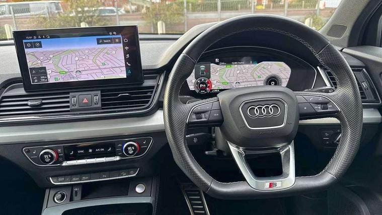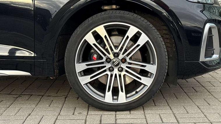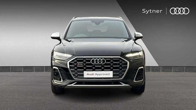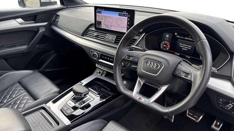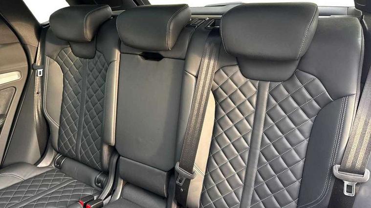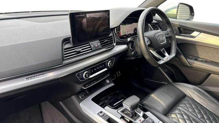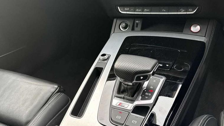 Acoustic front and rear parking sensor, Audi connect safety and service (e-call), Audi drive select, Audi phone box with wireless charging, Audi virtual cockpit plus with 12.3" screen and three different layout designs, Audi wireless smartphone interface, Automatic start-stop system with coasting functionality and efficiency programme, Bluetooth interface, Electro - mechanical power assisted steering, MMI navigation plus with 10.1" touch screen, Power tailgate, Reversing camera, Service interval indicator, Voice control system with Audi hotword activation "Hey Audi", 70 litre fuel tank and 24 litre AdBlue tank, Diesel particulate filter, Quattro on demand, S sports suspension, Audi sound system, DAB Digital radio, Acoustic windscreen, Aluminium roof rails, Audi beam, Auto dimming rear view mirror, Automatic headlight adjustment, Automatic headlights and windscreen wipers, Body colour bumpers, Body colour rear diffuser with matt aluminium silver surrounds, Body colour underbody protection, Chrome plated exhaust trims, Door sills in Selenite silver, Electric adjustable/heated/folding door mirrors, Front air inlet surrounds in aluminium, Front and rear electric windows, Front radiator grille in honeycomb design, Headlight washers, Lower bumpers painted in contrast Manhattan grey, Rear chrome trim strip below lights, Rear privacy glass and rear side windows, Rear spoiler, Rear wiper, Roof bars, S front and rear bumpers, S Line side skirts, S specific rear diffuser, 2 x USB charging port with aux input socket, 3 rear headrests, 4 way electric lumbar support for driver and front passenger, 40:20:40 split folding rear seat with rear centre armrest, Black cloth headlining, Contrast stitching on seats, steering wheel and gear lever gaiter, Deluxe 3 zone electronic climate control, Fine Nappa leather upholstery with diamond pattern contrast stitching + front sport seats with S embossed logo, Front centre armrest, Front/rear floor mats, Fully electrically adjustable seats, Gear lever in black leather, Heated front seats, Height adjustable front head restraints, Height/reach adjustable steering column, Illuminated door sill trims with S logo, ISOFIX child seat mounting and top tether, Luggage compartment cover, Massage function for front seats, Rear seat bench plus, Removable luggage compartment floor, Stainless steel pedals, Sunvisors with vanity mirrors, Extended interior upholstery pack - Q5, High gloss pack - Q5, LED interior light pack - Q5, 3 point seatbelts on all seats, 6 airbags - Driver, front passenger, curtain and side airbags, Electrically operated child locks on rear doors, Electromechanical parking brake, Electronic stabilisation control including ABS, ASR and EDL, Front passenger airbag deactivation, Hill descent control, Hill hold assist, Multi collision brake assist, Pop-up bonnet for pedestrian protection, Pre sense city, Seat belt force limiter, Seatbelt monitoring, Tyre pressure warning, Warning triangle and first aid kit, Anti theft alarm, Anti-theft wheel bolts, Keyless Go access/ignition system,