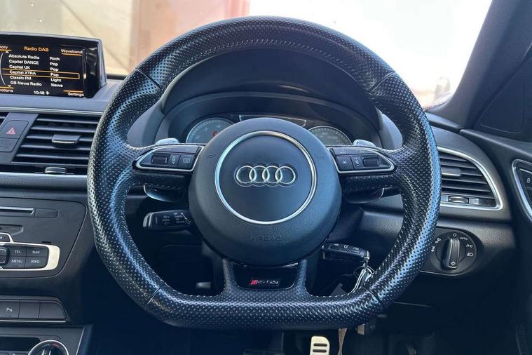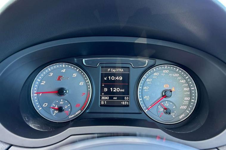 Audi drive select, Colour driver's information system display, Electro-mechanical PAS, Low washer fluid indicator, On board computer, Remote electric boot opening/closing, Service interval indicator, Voice control system, Audi music interface, DAB digital radio module, Acoustic windscreen, Body coloured bumpers, Chrome exhaust tailpipe, Coming home function, Door mirror integrated indicators, Front and rear electric windows, Heated windscreen washer jets, LED daytime running lights, LED headlights with headlight washers, Light and rain sensor for auto activation of lights and windscreen wipers, Loading sill protector in stainless steel, Privacy glass, Rear wiper, RS design body styling, Sunband for windscreen, Towbar preparation, 12V power in rear centre console, 2 cupholders, 3 spoke flat bottomed multifunction steering wheel, Aluminium door sill trims, Aluminium pedals, Dual zone climate control, Electric front lumbar adjustment, Front and rear headrests, Front and rear interior lights with delay, Front and rear velour floor mats, Front centre armrest with storage compartment and angle adjustment, Front sports seats, Gearshift paddles on steering wheel, Heated front seats, Height adjustable front seats, Height/reach adjust steering wheel, Illuminated glovebox, ISOFIX on front passenger and rear outer seats, Jack and tool kit, Luggage compartment lighting, Perforated leather gearknob, Perforated leather steering wheel, Retractable luggage cover, Reversible boot floor, Split fold rear seat, 3x3 point rear seatbelts, ABS+Electronic Brake force Distribution, Curtain airbags, Driver and passenger airbags, Driver and passenger side airbags, EDL + ASR, Electrically operated child locks on rear doors, Electromechanical parking brake, Electronic stability control, First aid kit, Front passenger airbag deactivation, High performance braking system, Hydraulic Brake Assist (HBA), Seatbelt warning light, Tyre pressure monitoring system, Warning triangle, Locking wheel bolts, Remote central locking, Thatcham category 1 alarm + immobiliser, Tyre mobility system,